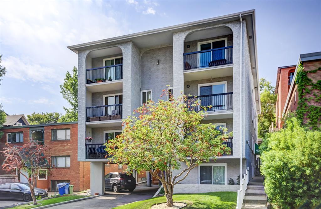 *** OPEN HOUSE, SATURDAY JUNE 3, 2-4PM *** Perfect for Investors, condo living and/or first time home buyers! This 2 bedroom + 1.5 bath apartment is located on a quiet tree-lined street in the heart of Lower Mount Royal. With over 900 sq.ft. of living space all principle rooms are spacious and bright. The Master bedroom comes with a 2 piece ensuite bath and a private covered balcony. The 2nd bedroom can easily accommodate large furniture for your room mate or guests. The eat in kitchen comes with plenty of cabinets and counter space. This opens into the spacious living room which features a custom built in shelving unit and desk providing a great workspace. Sliding doors open to the 2nd balcony that's also covered and private. Down the hall is a full bath for your guests and laundry room. All windows and sliding doors have been upgraded and the condo fees are super low! The condo board is very hands on with the operation of the building. Only 2 blocks to Trendy 17th Ave where you'll find some of Calgary's best boutiques, cafe's, fine dining, live music and more. Otherwise it's an easy walk to downtown and the LRT. (id:22211)