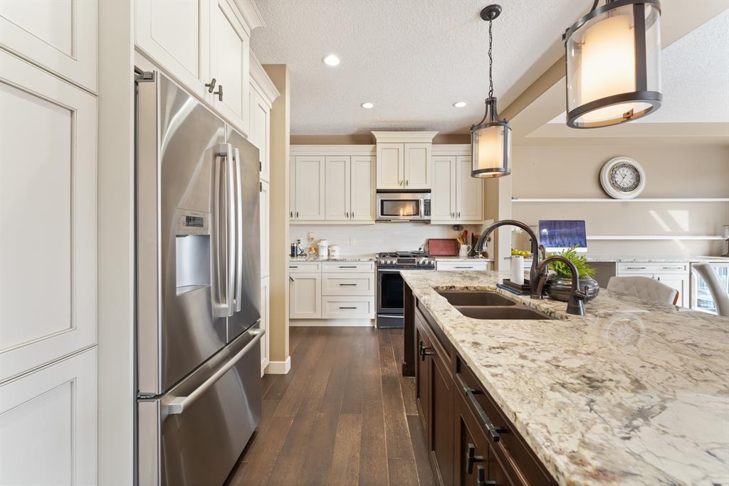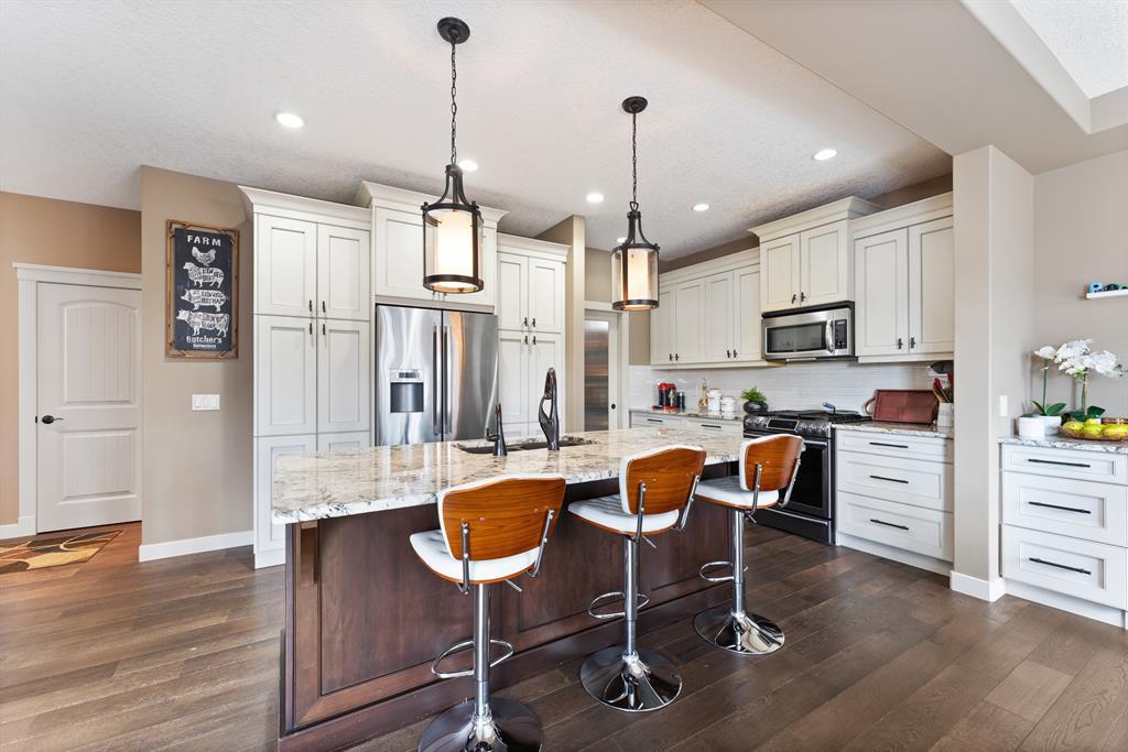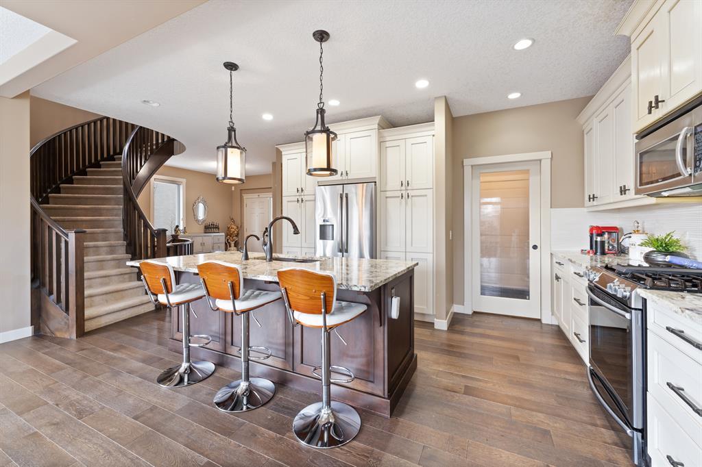 Looking for a luxurious yet affordable home that boasts high-end materials and finishes? Look no further than this stunning Aspen residence. As you step inside, you'll be greeted by a magnificent curved staircase and gorgeous satin hardwood floors. The kitchen features custom cherry wood paneling with an antiqued white finish, a large contrasting espresso island, and top-of-the-line appliances from Samsung and Bosch. The cabinetry comes complete with a granite top workstation and beverage center, which extends seamlessly into the dining room. The living room boasts a beautiful fireplace with a stone and wood surround and a show-stopping Restoration Hardware light fixture. The developed basement includes a fourth bedroom and a media room wired for a projector, with 9ft ceilings. Upstairs, you'll find a laundry room (Brand new washer still in warranty), a bonus room, spacious bedrooms, and luxurious bathrooms with honed limestone countertops. The beautifully landscaped property features front and rear concrete patios and is bordered by 17 trees up to 20ft tall, providing privacy and tranquility. Don't miss out on the opportunity to make this exquisite house your dream home! (id:22211)
