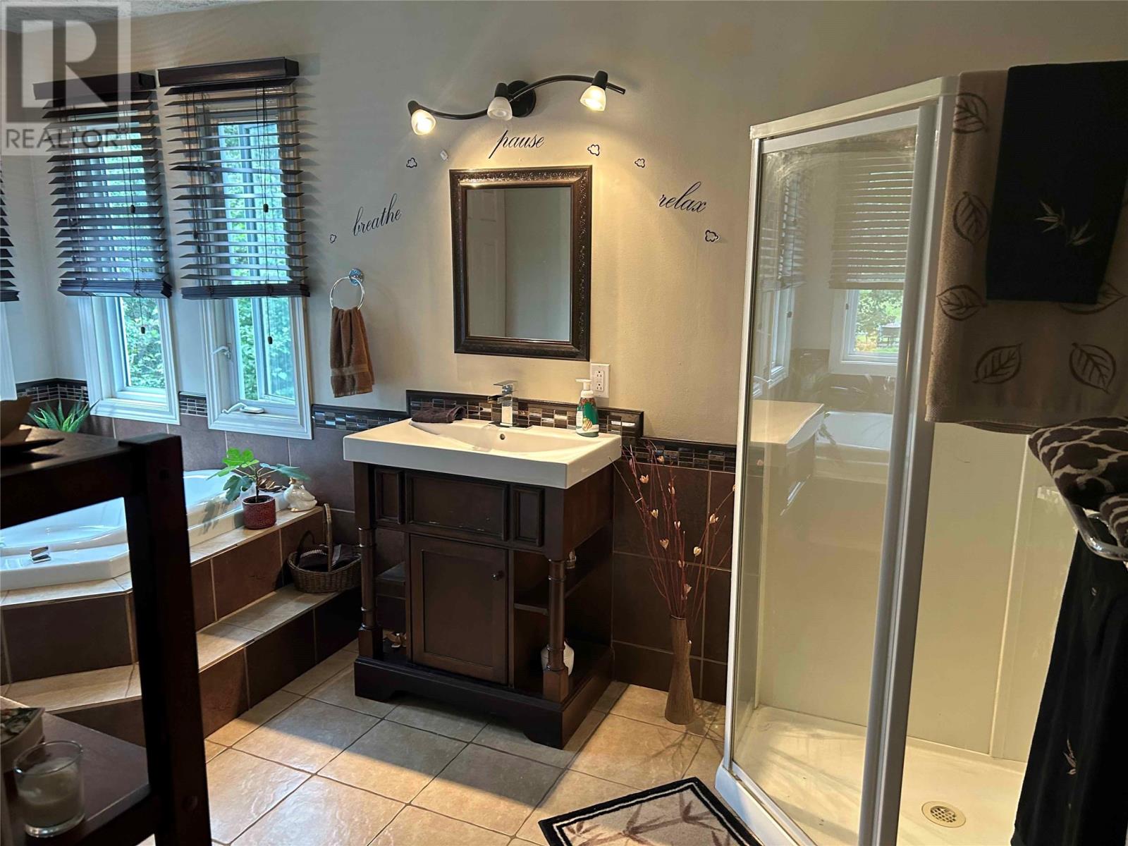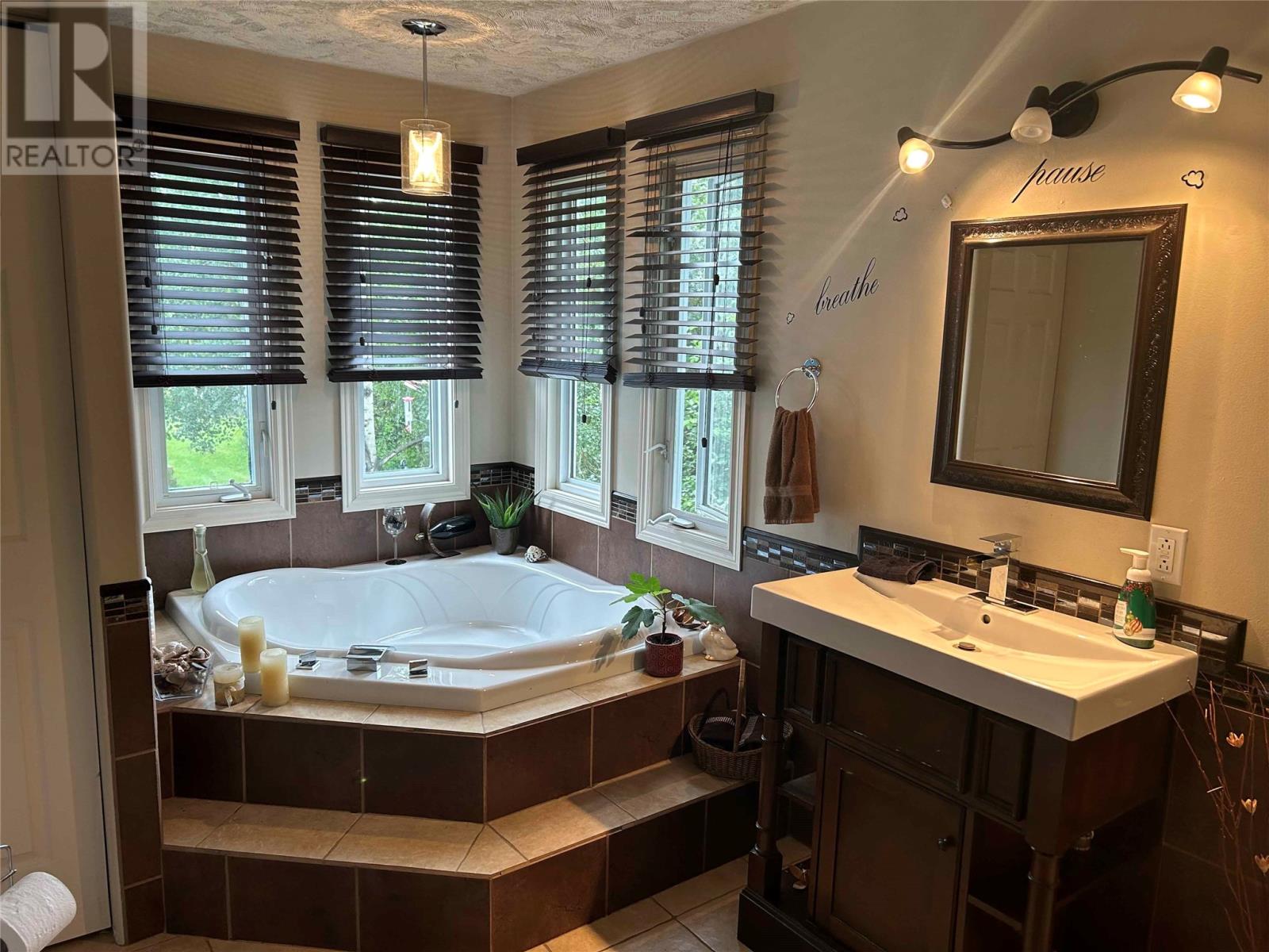 Hot new listing at 115 Road to the Isles, Campbellton. Check out this beautiful home today. Main floor consists of a huge eat-in kitchen area with lot of cabinets and counter space. Fridge, stove and dishwasher included. A few steps up to a formal dining area and off that a few steps up to a huge primary bedroom with a large ensuite and walk-in closet. Deck off the primary bedroom and steps leading down to the back deck, patio, pool and backyard. Large living room with a fireplace, and a few steps up there's a large bedroom and another bathroom. Downstairs has a large rec room with a wet bar and storage area. Another bedroom, bathroom and utility room and craft room. Attached garage, large double deck patio with a pool. 3 sheds. Lot approximately 70x500. Gazebo, large front lawn. View of the ocean. Can you believe the price is only $299,000. Don't miss this one. (id:22211)