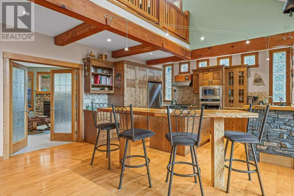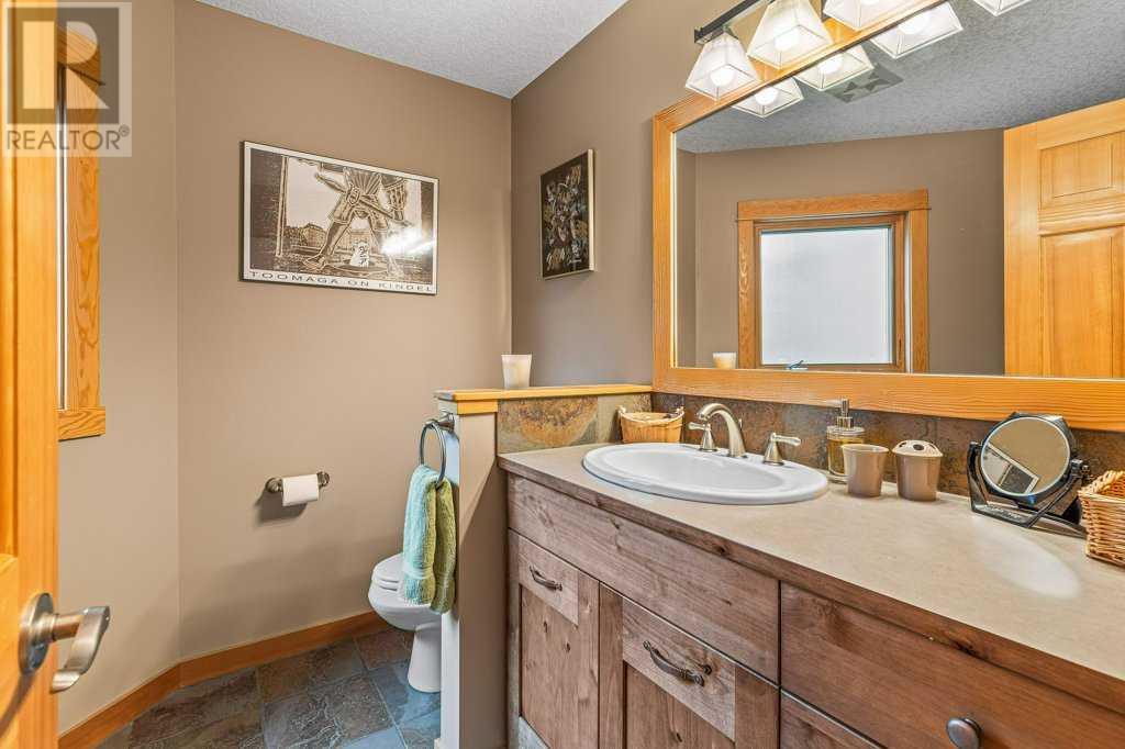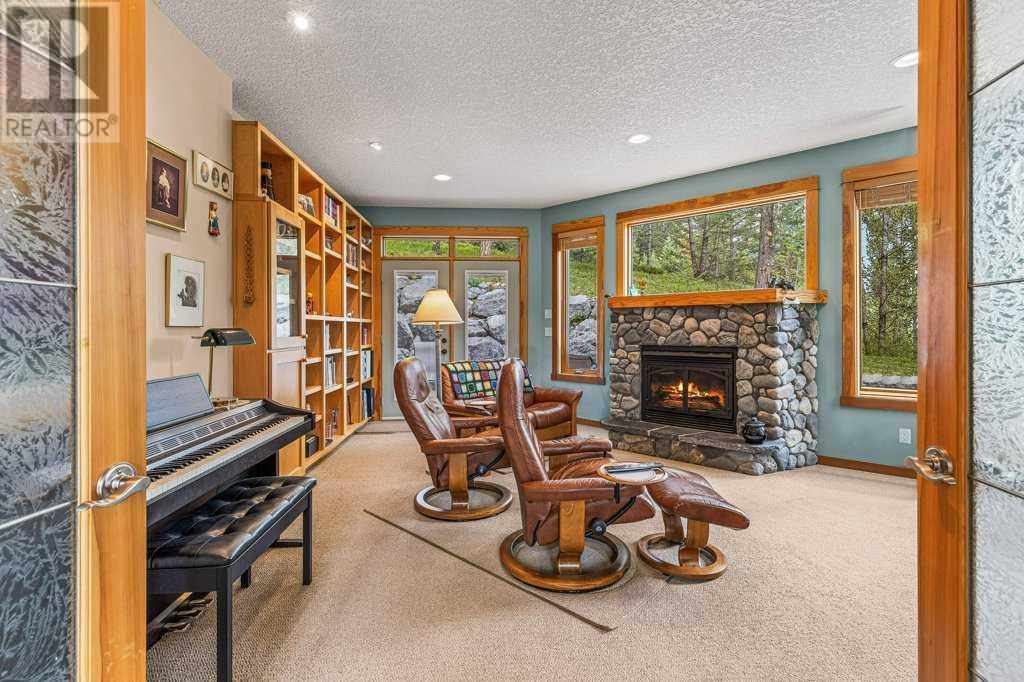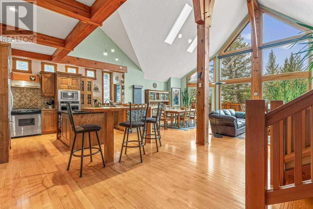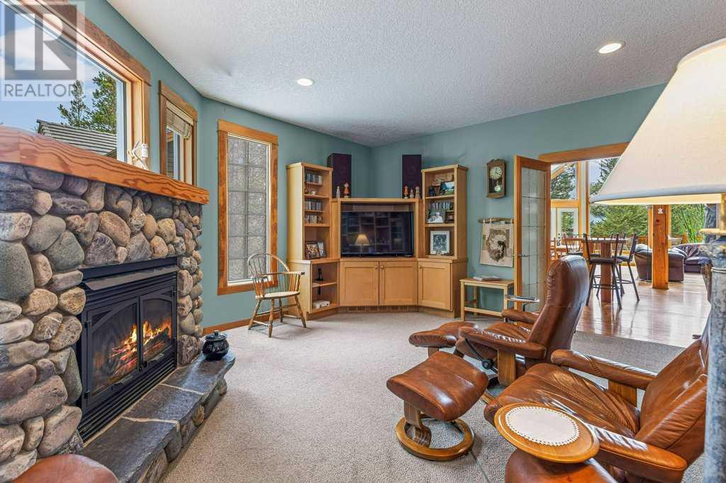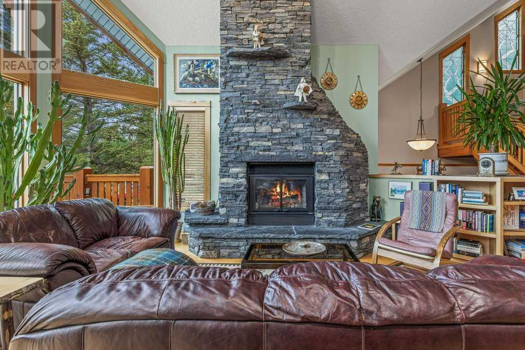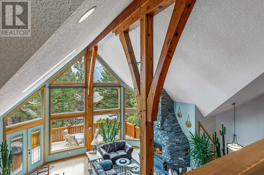 Welcome to your breathtaking dream home in Silvertip! This remarkable 3830 sq ft Koronko custom built home offers a perfect blend of comfort, luxury, and awe-inspiring surroundings. With 4 bedrooms, 4 baths, a TV room, and office in the loft, this home caters to your every need. Step inside and be greeted by a warm and inviting ambiance that exudes elegance and charm. The gourmet kitchen is ideal for entertaining family and friends. The great room features stunning timber posts and beams, a magnificent wood-burning stone fireplace and expansive windows that showcase the majestic mountain peaks, creating a captivating backdrop for all your gatherings. Retreat to the master suite, your personal sanctuary, to escape and rejuvenate. The luxurious ensuite including a spa-like bathtub and separate shower create the perfect setting for pampering and relaxation. The private backyard, backing onto reserve land, provides a sense of peace and harmony. This home has plenty of storage, a roughed-in sauna, and oversized double car garage. (id:22211)