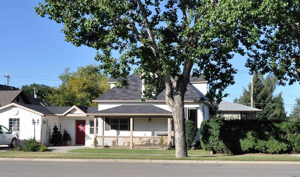 PRICE REDUCED! Originally built in 1904, this 1.5 story historic home was extensively renovated in 2004. (See Complete Reno Synopsis in Documents).Among other improvements:New windows and new porch added in 2004, House connected to garage which has been remade into a large main floor studio space, currently used as a bedroom.The kitchen was remodeled into open plan with oak wood details and a tiled counter top. Double sinks and updated appliances installed. The laundry appliances belong to the tenant.The house is on three lots on a single title, with 27.6m frontage x 22.6m or 90.5 x 74.34 ft depth, There is some fencing and a storage shed in back that needs a new roof. Foundation is a combination of some concrete footings and other unknown original materials.Currently rented for $1200/mo., the tenant is very responsible with a young family and would love to stay.The house is a short walk from downtown Claresholm and about 500 meters from the hospital at the south end of Town. Claresholm is very senior friendly, has all amenities including all levels of schools, child care, 24 hour emergency care at the hospital. IGA, 7/11, Tim Hortons, and Pizza Hut all nearby. There is an industrial park and airport west of the town. (id:22211)