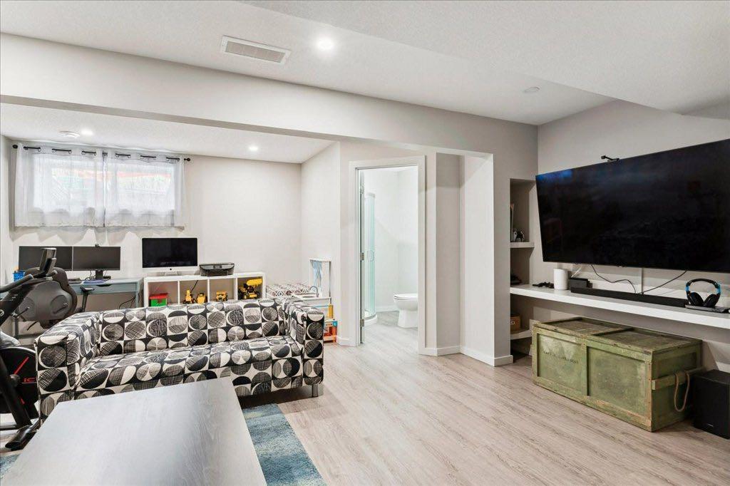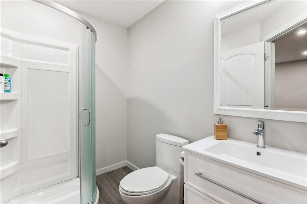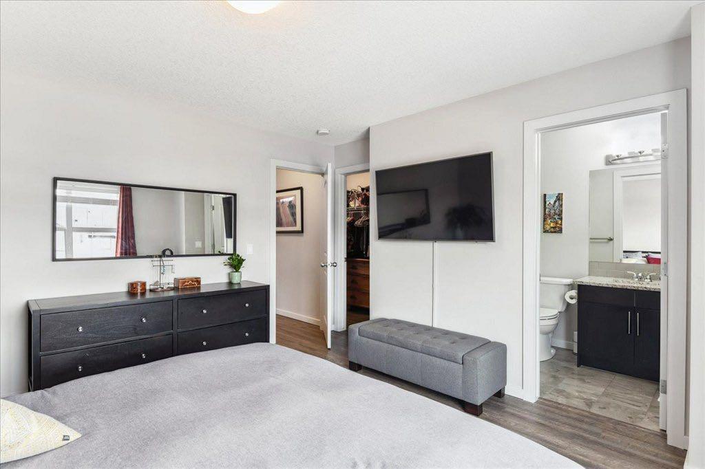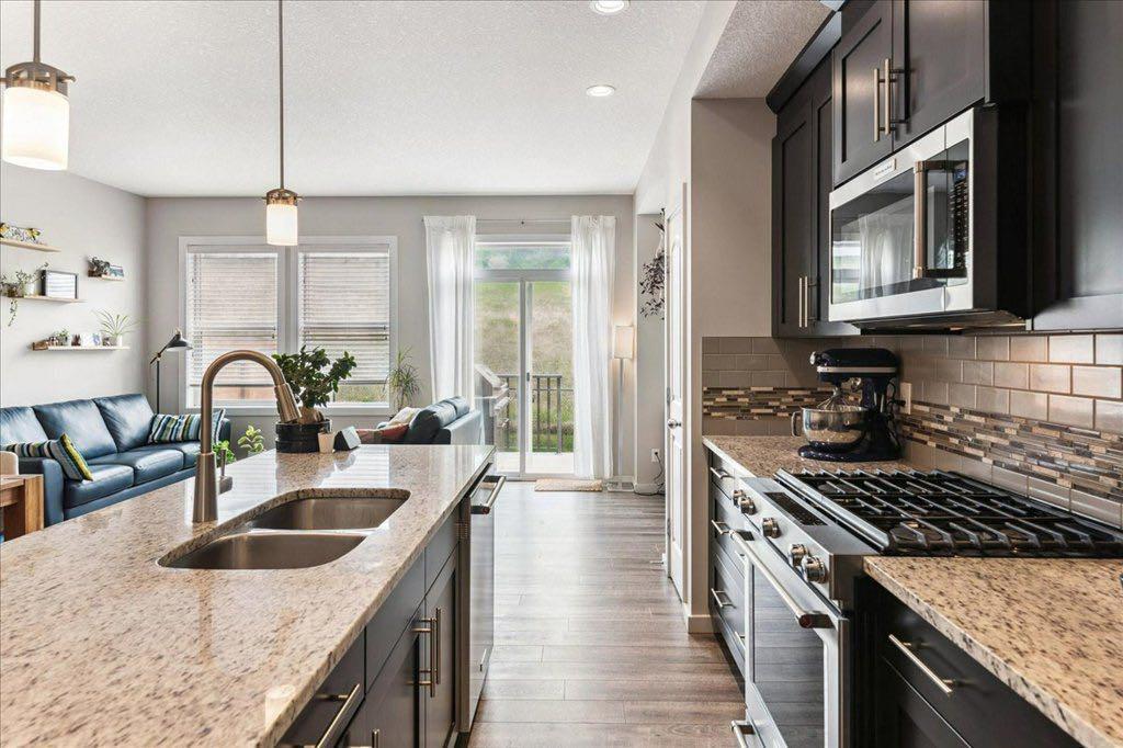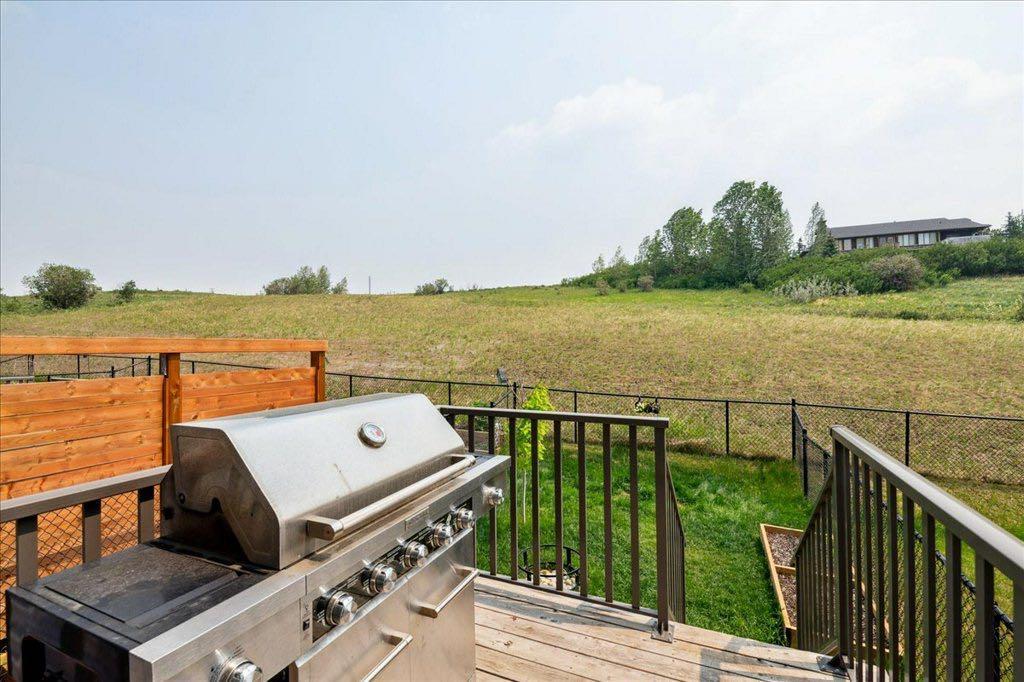OPEN HOUSE SUNDAY JULY 2nd 1:30 - 3:30 PRICE JUST REDUCED $10,000 !! Immaculately kept home situated on a quiet cul de sac and backing onto green space! PLEASE CLICK ON 3D ICON ABOVE FOR VIRTUAL TOUR! Total development of 1700 square feet! Built by STEPPER Custom Homes, the quality of craftsmanship is immediately evident! This home is SMART HOME READY which includes : August Smart Lock, NEST Thermostat and most light switches have been changed to tp-link Smart Switches ( controllable through your smart phone or using Amazon Alexa or Google assistance ). Have to walk the dog - no problem! There's an "off leash" park literally 200 feet from your front door! Also, we're close to enviornmental reserve pathways, the Bow River pathways and within walking distance to local retail outlets and restaurants. Upon entering you'll notice high ceilings, elegant luxury wide plank flooring and metal spindle railing. The gourmet kitchen has it all. Granite counters, stainless steel appliances, recessed lighting, pantry, eating bar, maple stained cabinets and gas stove. The wide open main floor has plenty of space for large family gatherings! The upper floor has 3 bedrooms and an upper floor laundry. The primary bedroom has both a large walk in closet and ensuite bathroom. The ensuite features granite counters and an extra wide shower. The main bath and the laundry are in the hallway and the spare bedrooms are privately located at the rear of the upper floor. The basement is developed and has a huge recreation room, a 4th bathroom and plenty of storage space. The garage is insulated and drywalled and offers more storage space. The driveway is long and allows you to park another vehicle on the property. The front yard has low maintenace landscaping and the back yard is fenced, has a deck with BBQ outlet and grass for the kids to play safe in. This can all be yours today! (id:22211)