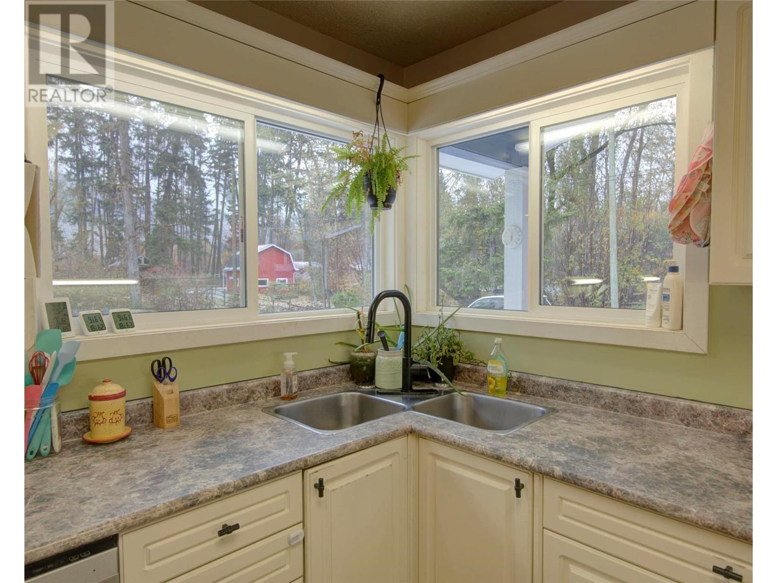 OPEN HOUSE: Sunday, Dec. 3 at 10 AM - 12 PM. Wonderful rancher home with a double garage on 3.61 acres of usable land 10 minutes from Vernon. The property is lined with trees for privacy. As you drive down the paved driveway, you'll wind past the shop (34’x24’) and barn (23’x16’) and drive over a bridge that crosses the creek running through the property. Above the creek, you'll find a smaller yard surrounded by flower beds. On the far side of the home, is a fenced-in garden with raised beds and rainwater storage. Behind the home feels like an enchanted field surrounded by trees. Inside, the home has 3 bedrooms and an office that could be used as a 4th bedroom. The large primary bedroom has an ensuite and walk-in closet. The kitchen, dining room, and living room are all large areas that overlook the creek - filled with lots of natural light. On the backside of the house is a family room that has a wood fireplace that is perfect for the cooler days or you can open the French doors onto the back deck where you’ll find the built-in charcoal grill & hot tub hookup. (id:22211)