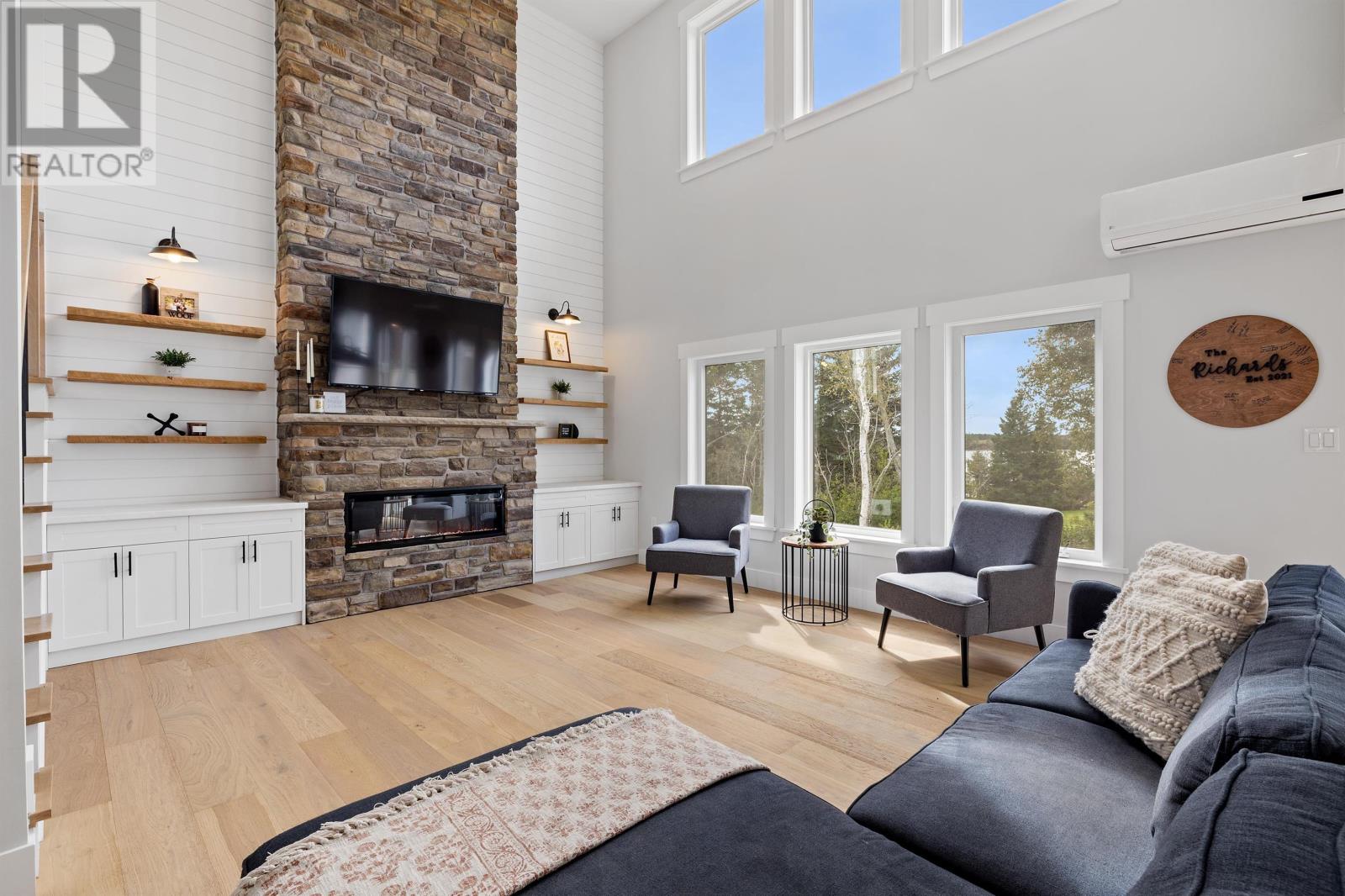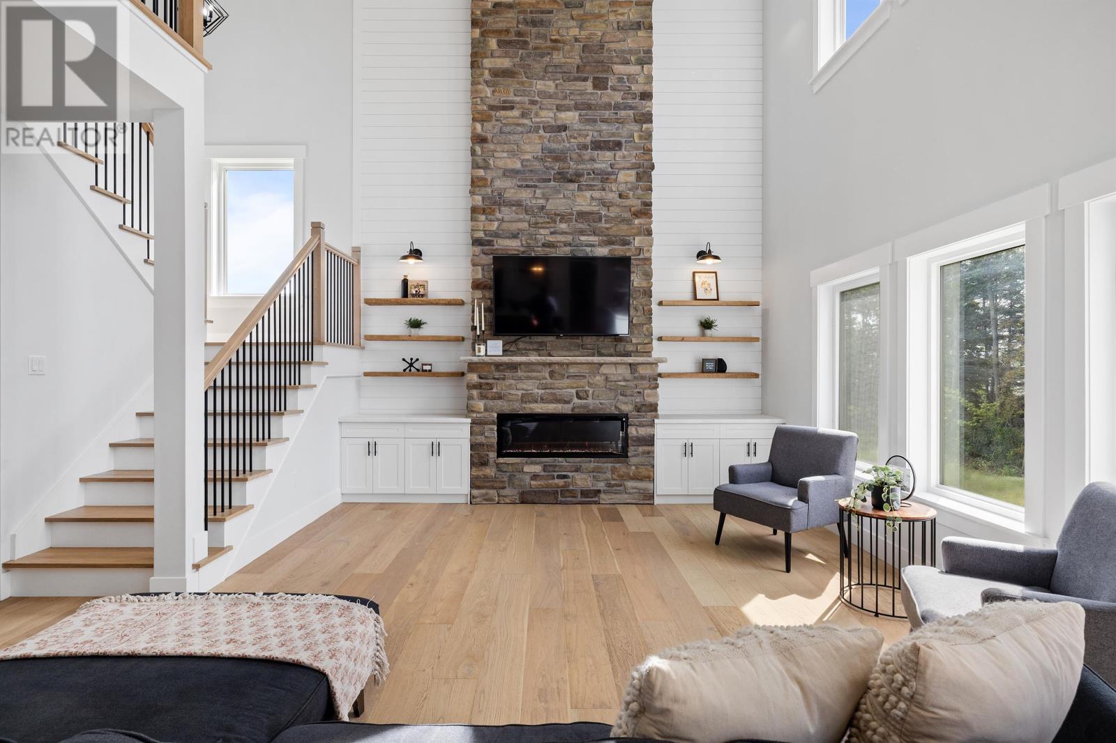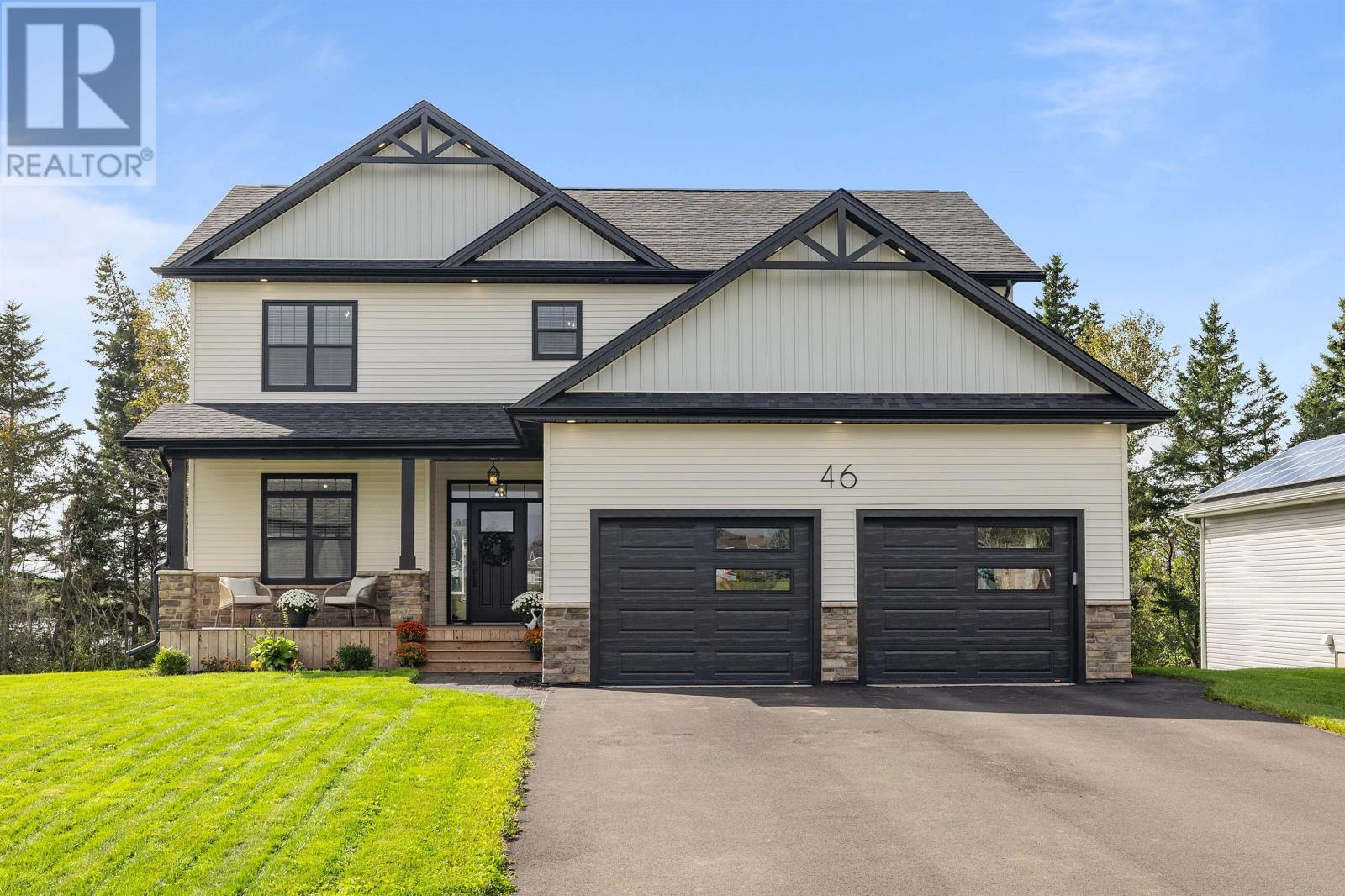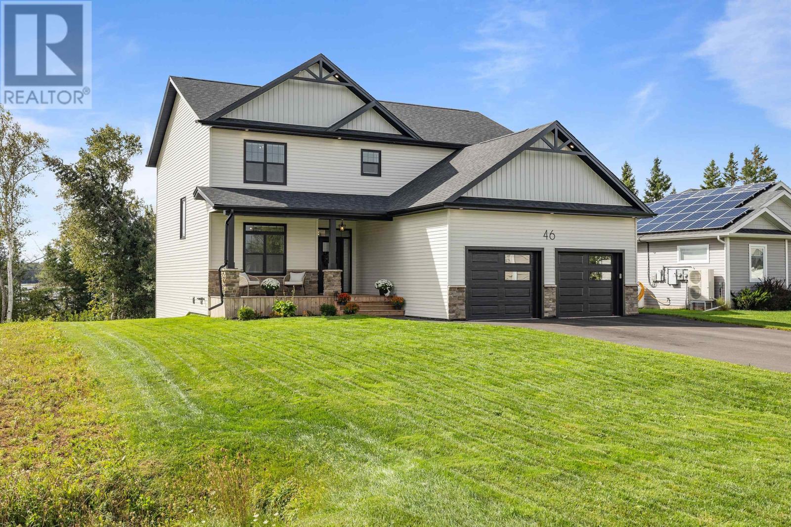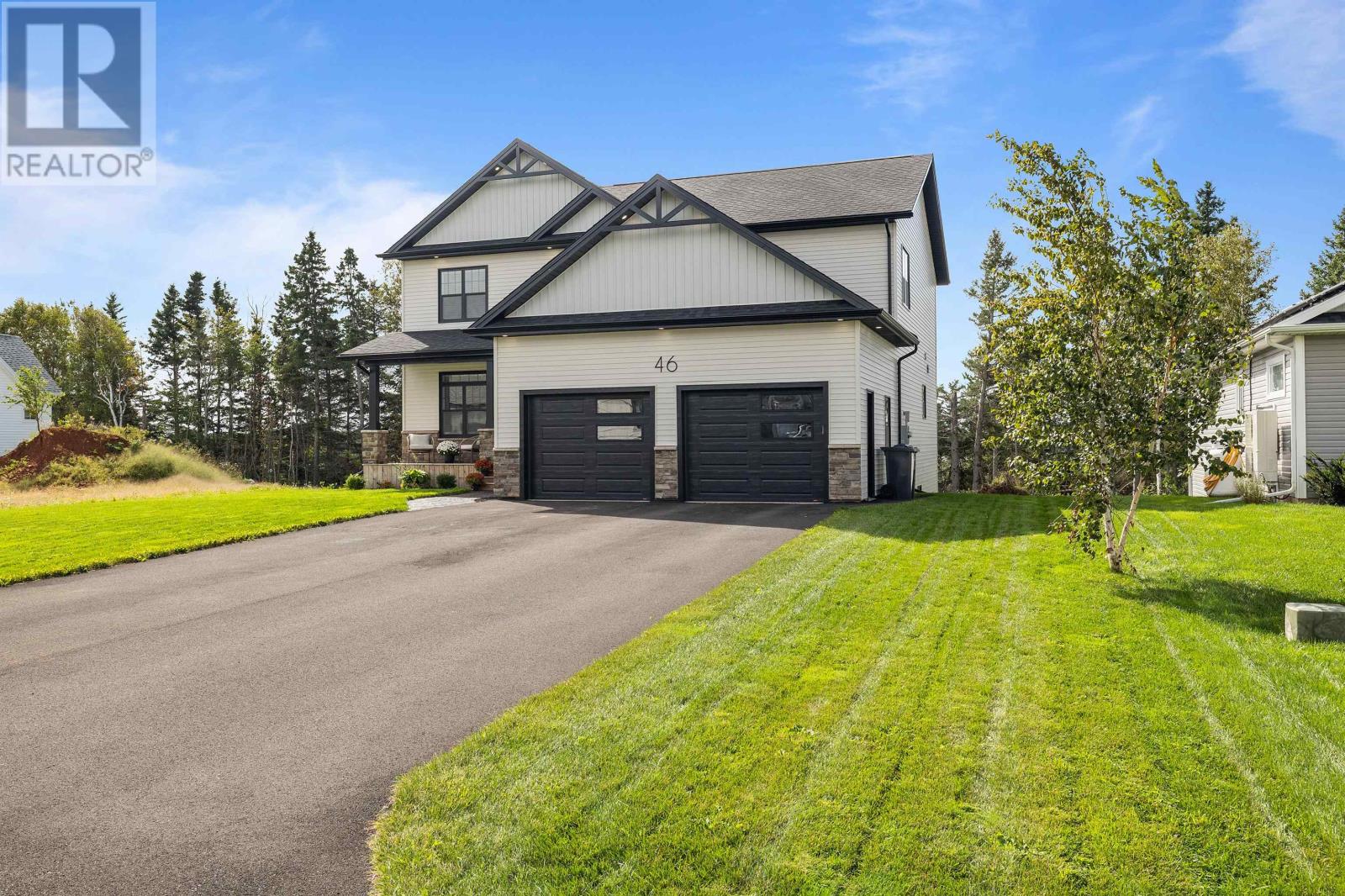 Welcome to the epitome of luxury living in the prestigious Primrose Point subdivision in Cornwall, PEI. Nestled within this exclusive community, 46 Eagle Dr stands as a testament to modern elegance and timeless design. Boasting 3,200 square feet of living space, this extraordinary residence is a haven of comfort, space, and style. Stepping through the front door, you are greeted by an open concept floor plan that seamlessly blends sophistication with functionality. The crowning jewel of this living room is the soaring 17-ft vaulted ceiling, an architectural feature that opens up the space to incredible heights, along with the custom stone floor-to-ceiling hearth. The gourmet kitchen is a chef's dream, featuring custom cabinetry and an impressive 8-foot kitchen island with quartz countertops. The adjoining pantry provides ample storage space, ensuring that your culinary adventures are well-equipped and organized. The main floor of this thoughtfully designed residence also offers an office space, ideally situated for work or study, as well as a stylish half bathroom adding to the functionality of the main floor. The second level features your spacious primary bedroom with a beautiful water view, large ensuite with custom shower, soaker tub and double vanity. There are also two other bedrooms on this level, along with a large and impressive laundry room. The second level landing area overlooks the stunning living room with a captivating view through the upper level windows. The fully finished basement is an entertainer's delight, complete with a wet bar that is perfect for hosting gatherings and celebrations. There are two generously sized bedrooms that provide ample space for guests or family members, ensuring comfort and privacy. A well-appointed full bathroom adds to the convenience of this level. Don't miss your opportunity to experience the pinnacle of modern living in one of Cornwall's most exclusive neighbourhoods. (id:22211)