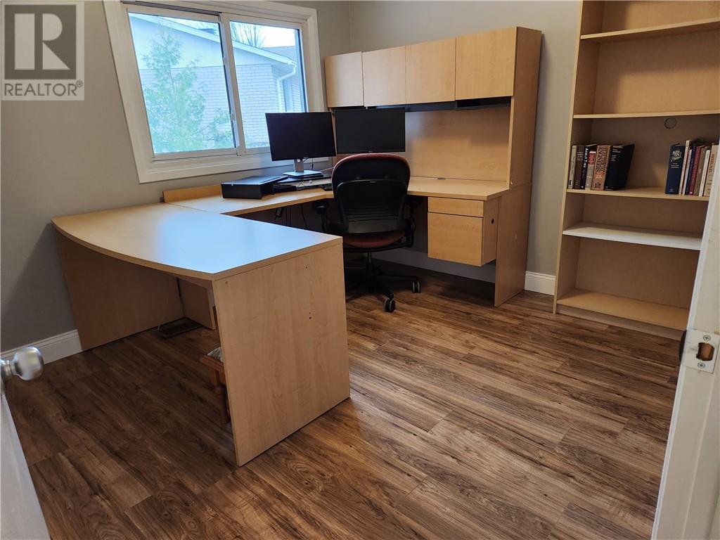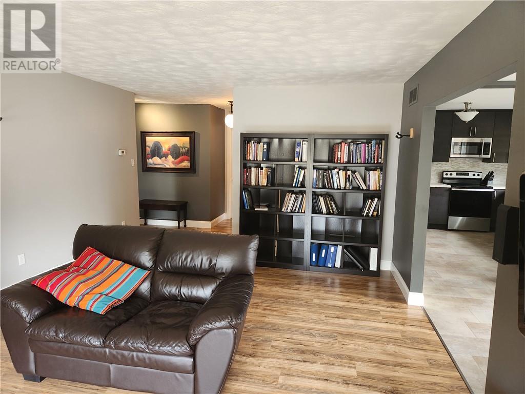 Turn Key Ready. Completely updated open concept brick bungalow with double garage on a large fenced lot close to walking trails, park and playground. Large kitchen with an abundance of counter and cupboard space, cheerful dining room, bright living room plus a den/home office area. Offering 4 bedrooms, 3 baths, main floor laundry, finished basement with rec room and wood stove to cozy up to. This home was updated with attention to detail and quality. Included are, fridge, stove, washer, dryer, microwave hood fan, 2 garage door openers and accessories, stools at kitchen island, dishwasher, dehumidifier, shelving in laundry room, garage workbenches, flat screen tv, lawn mower. (id:22211)