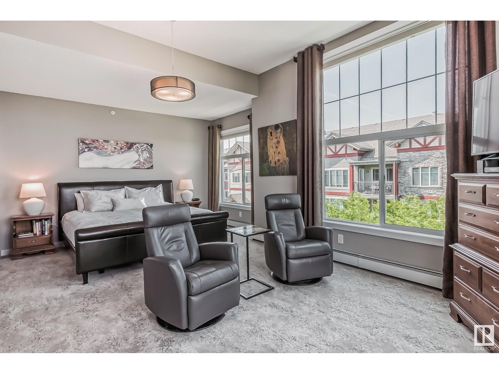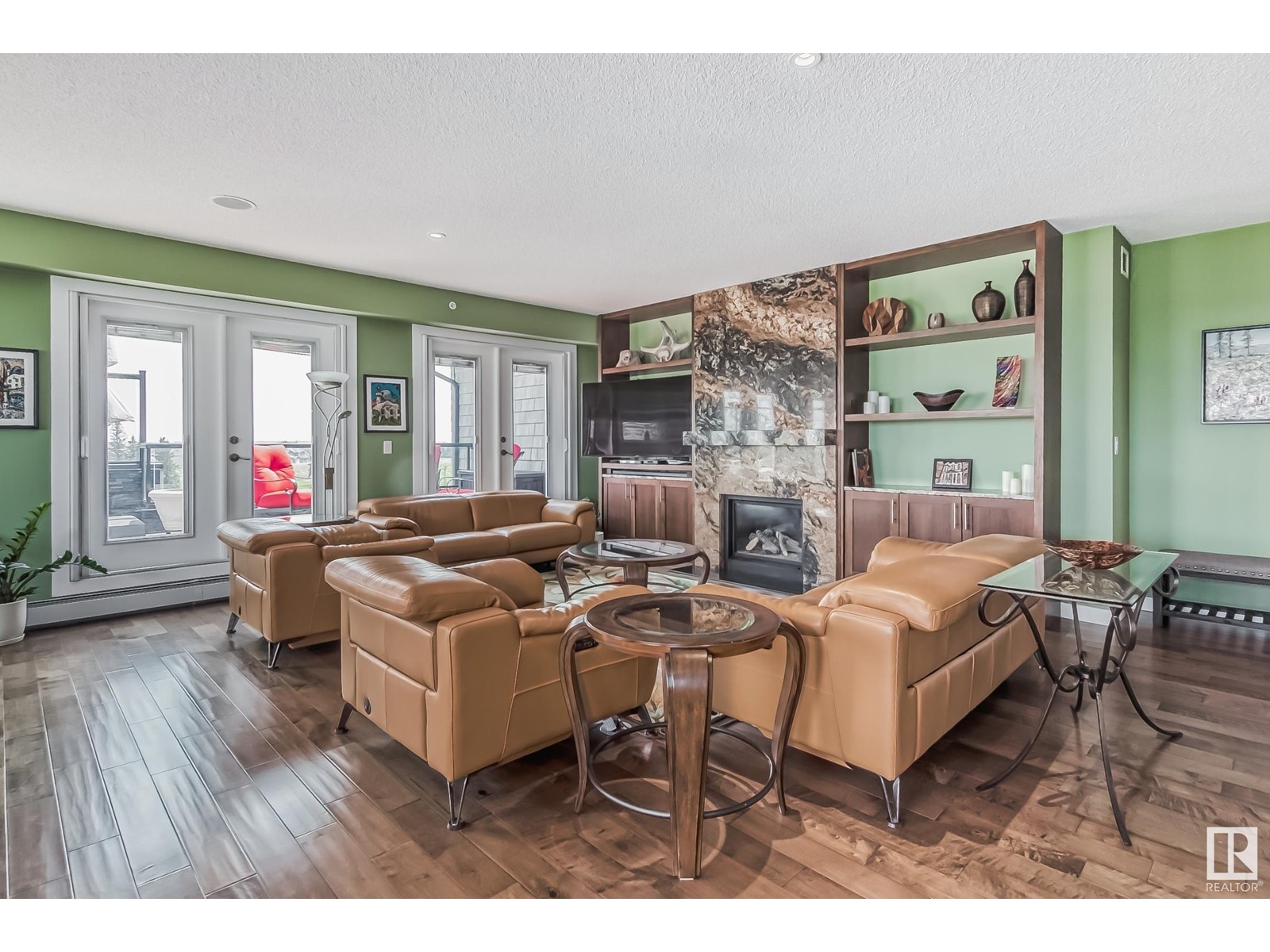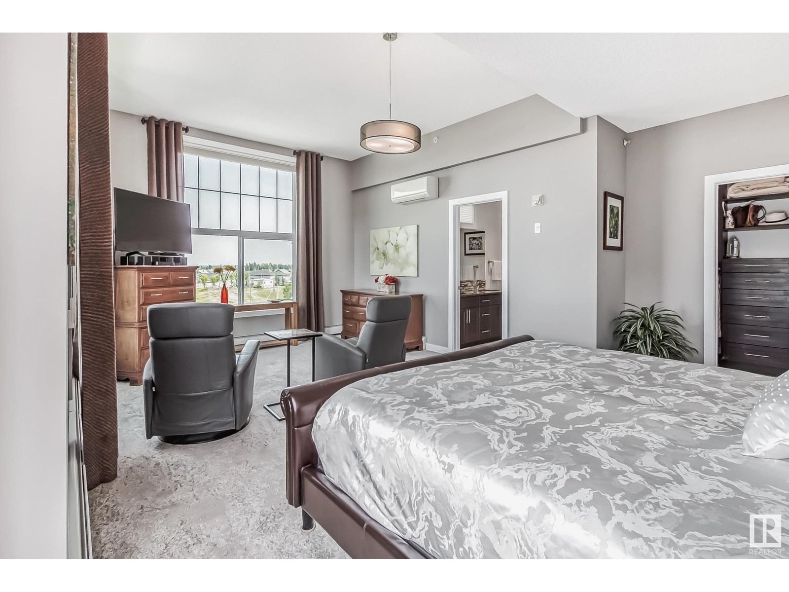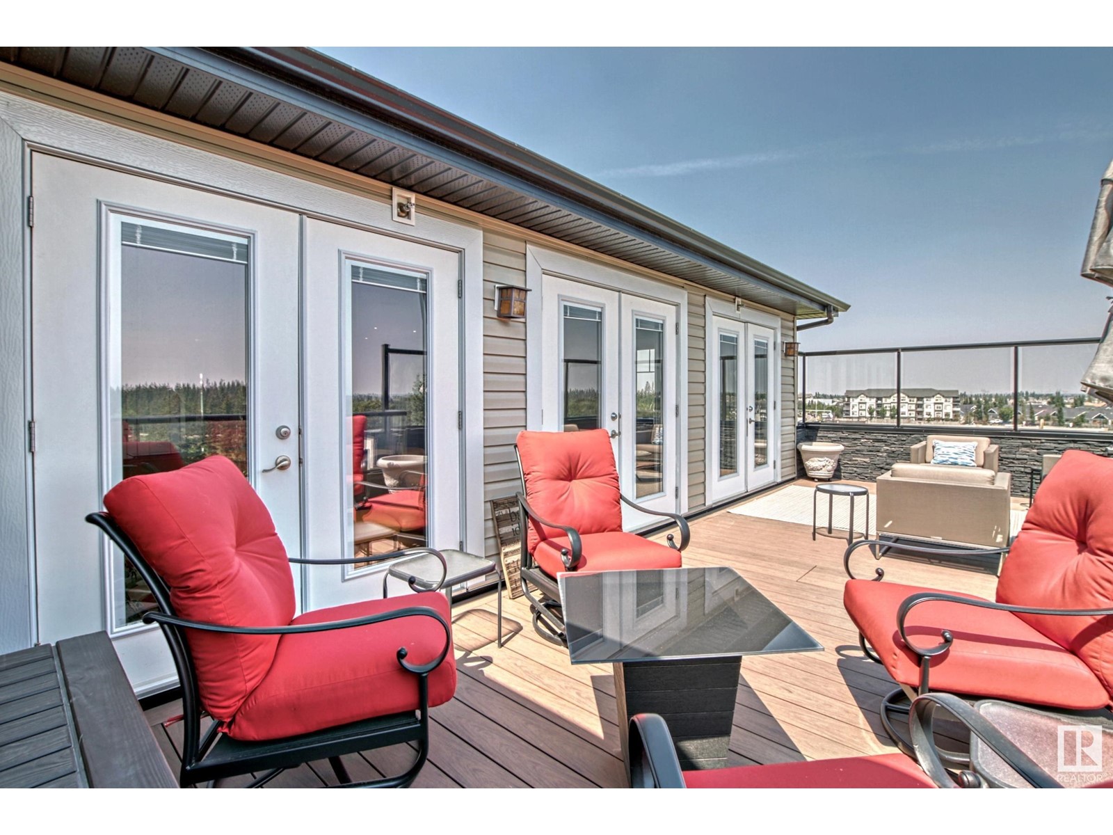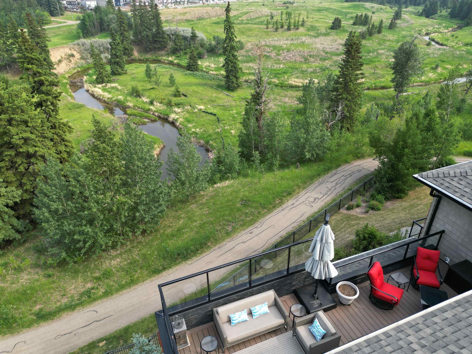 PREMIUM EXECUTIVE CONDO! Backing onto Blckmd Creek with stunning Ravine views this TOP FLOOR CORNER UNIT is absolutely spectacular! tandem titled parking stalls (1 EV stall) All the high-end upgrades you would expect in a home of this caliber including, 10ft ceilings, floor to ceiling windows, large private rooftop balcony, A/C & luxury hand scraped hardwood. The kitchen is a chef's dream, granite countertops, pendant, pot & under cabinet lighting, corner pantry, s/s appliances & massive island with sink & breakfast bar. The open design floor plan offers a wonderful living & dining area, unique custom fireplace & balcony doors opening to the breathtaking outdoor oasis with plenty of space to bring the dining outdoors! The primary bedroom has a w/i closet, gorgeous ensuite, his/her sinks & huge windows. The 2nd bedroom also has its own ensuite & den has a PRIVATE balcony. With scenic walking trails & restaurants within walking distance, plus the Henday & Hwy 2 minutes away, the location is UNBEATABLE!! (id:22211)