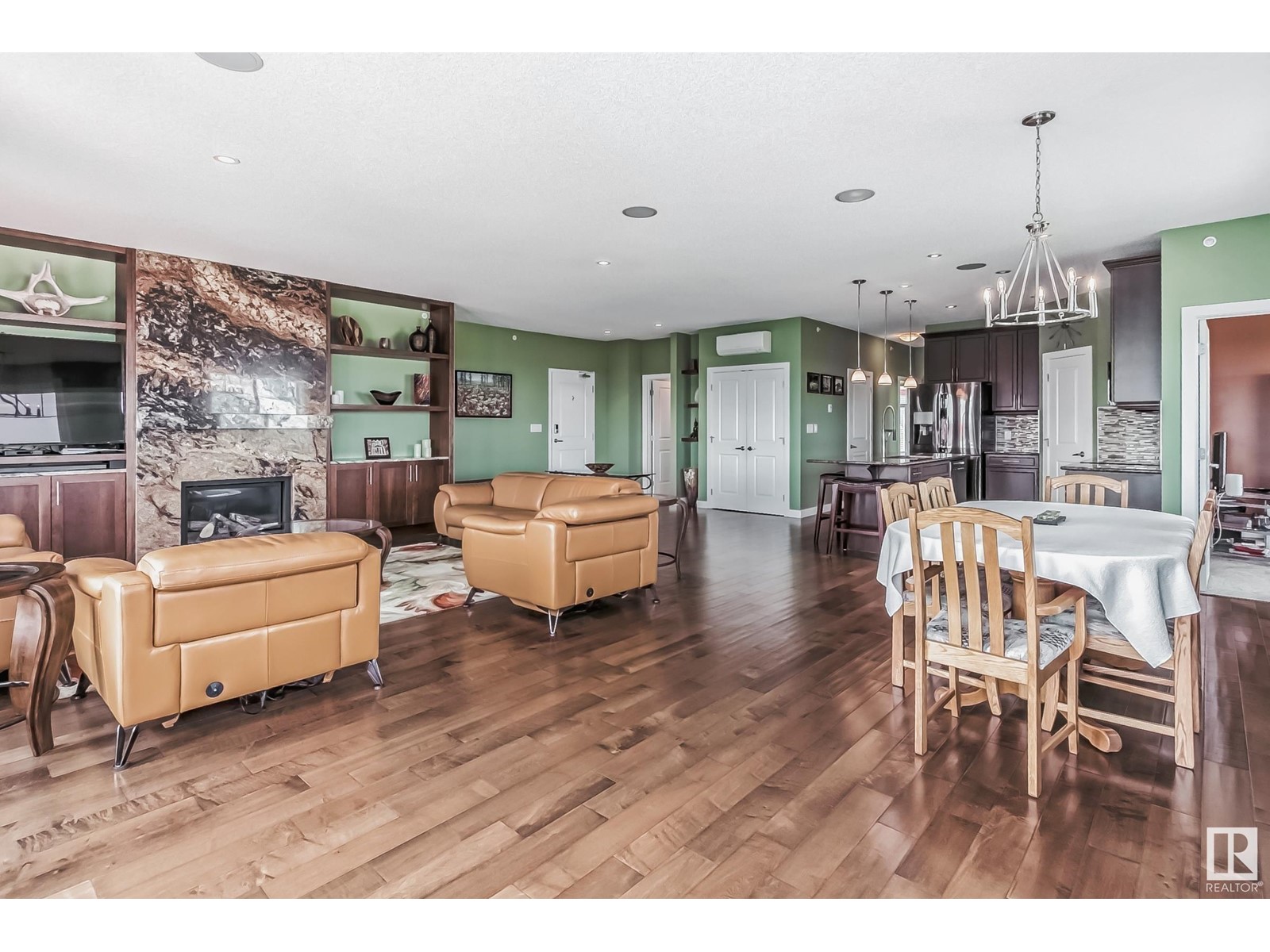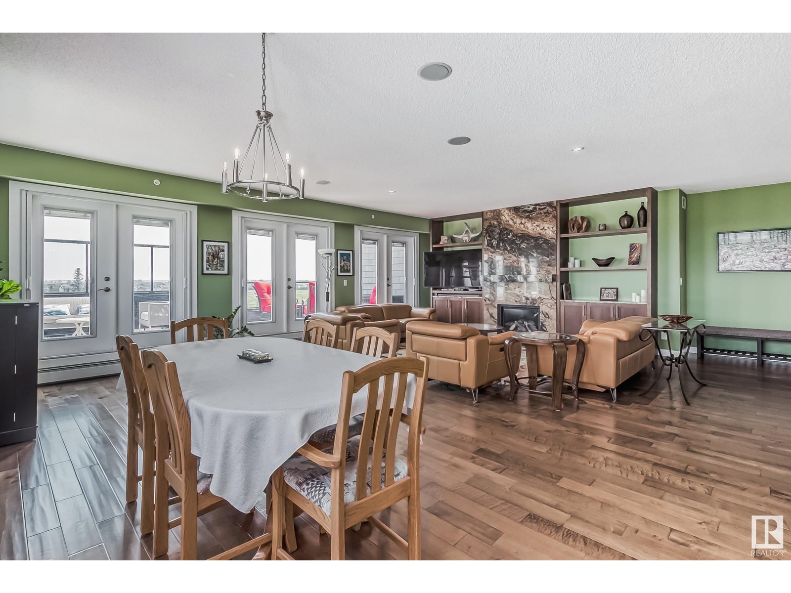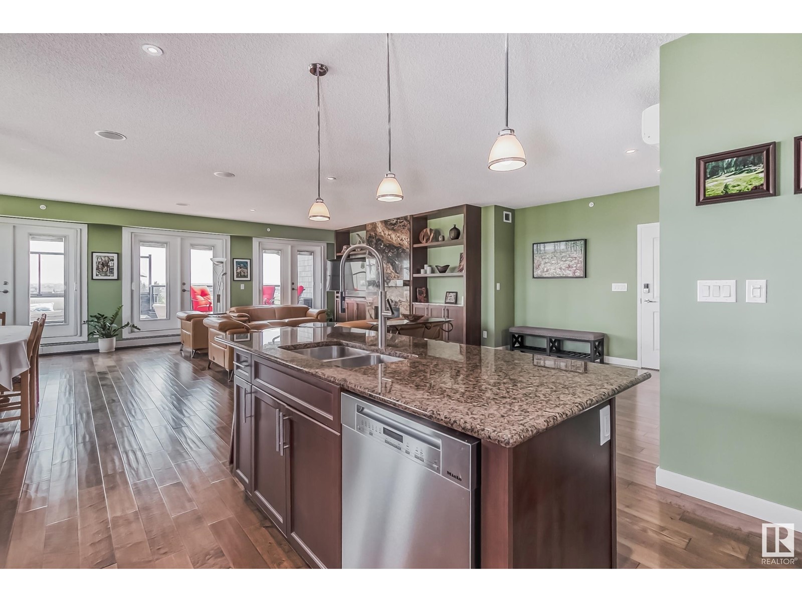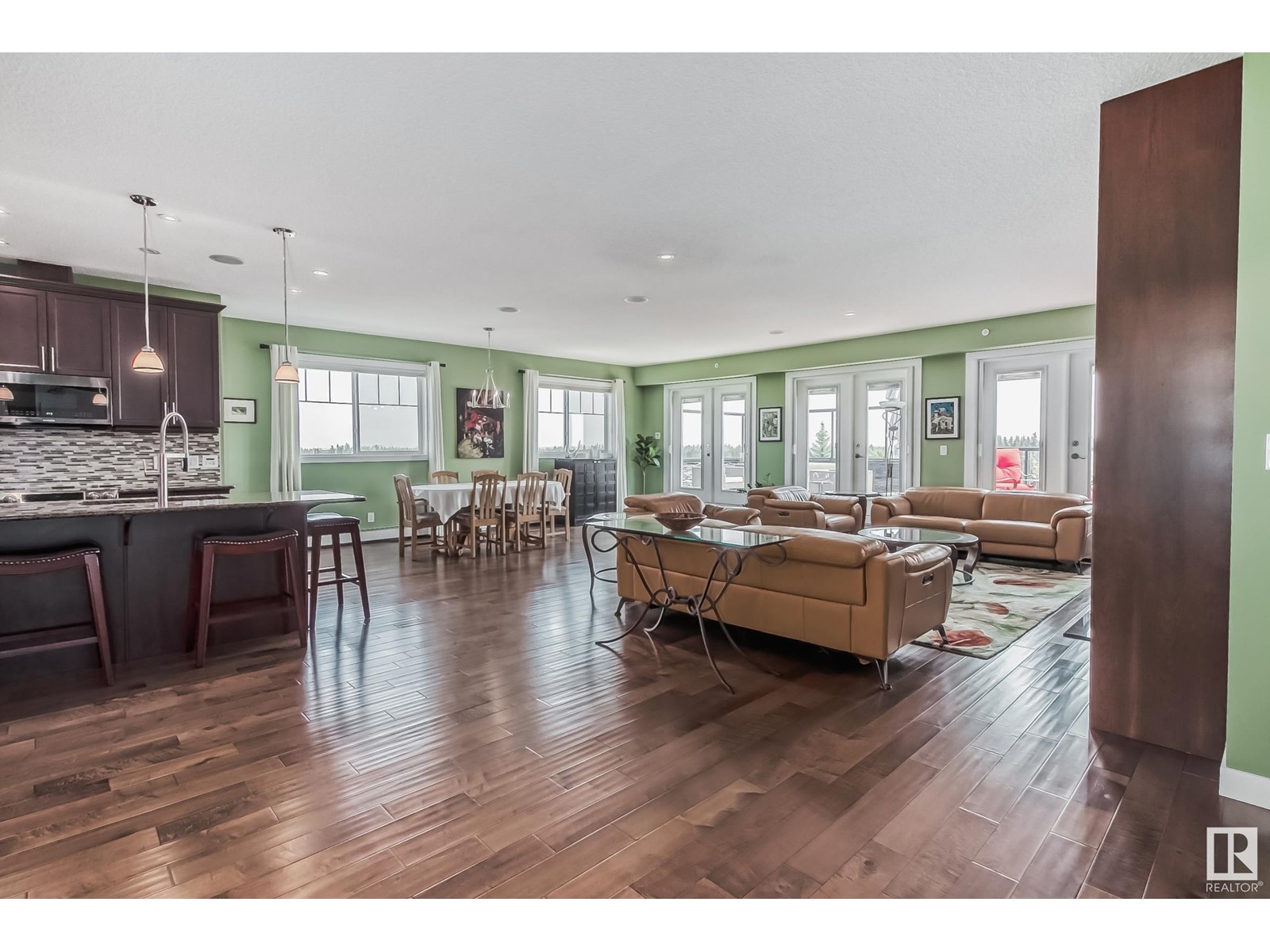 PREMIUM EXECUTIVE CONDO! Backing onto Blckmd Creek with stunning Ravine views this TOP FLOOR CORNER UNIT is absolutely spectacular! tandem titled parking stalls (1 EV stall) All the high-end upgrades you would expect in a home of this caliber including, 10ft ceilings, floor to ceiling windows, large private rooftop balcony, A/C & luxury hand scraped hardwood. The kitchen is a chef's dream, granite countertops, pendant, pot & under cabinet lighting, corner pantry, s/s appliances & massive island with sink & breakfast bar. The open design floor plan offers a wonderful living & dining area, unique custom fireplace & balcony doors opening to the breathtaking outdoor oasis with plenty of space to bring the dining outdoors! The primary bedroom has a w/i closet, gorgeous ensuite, his/her sinks & huge windows. The 2nd bedroom also has its own ensuite & den has a PRIVATE balcony. With scenic walking trails & restaurants within walking distance, plus the Henday & Hwy 2 minutes away, the location is UNBEATABLE!! (id:22211)