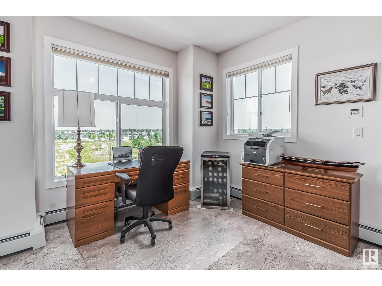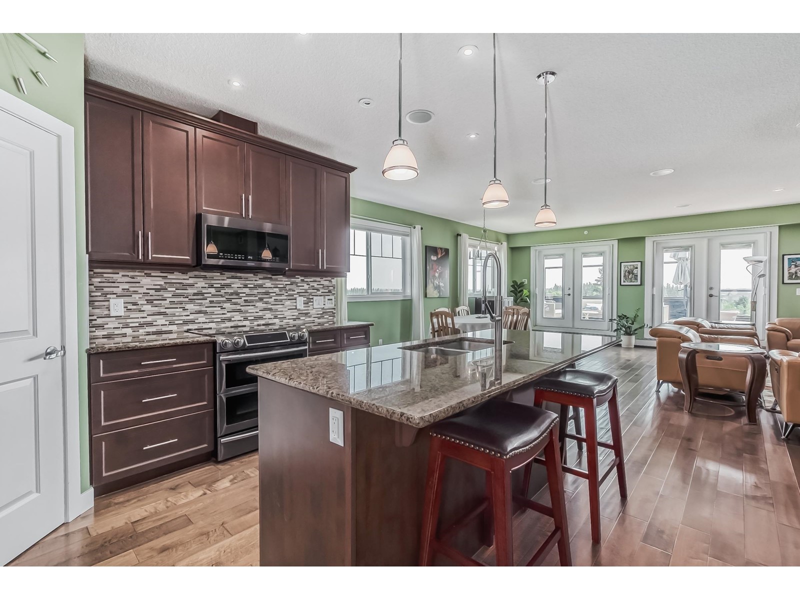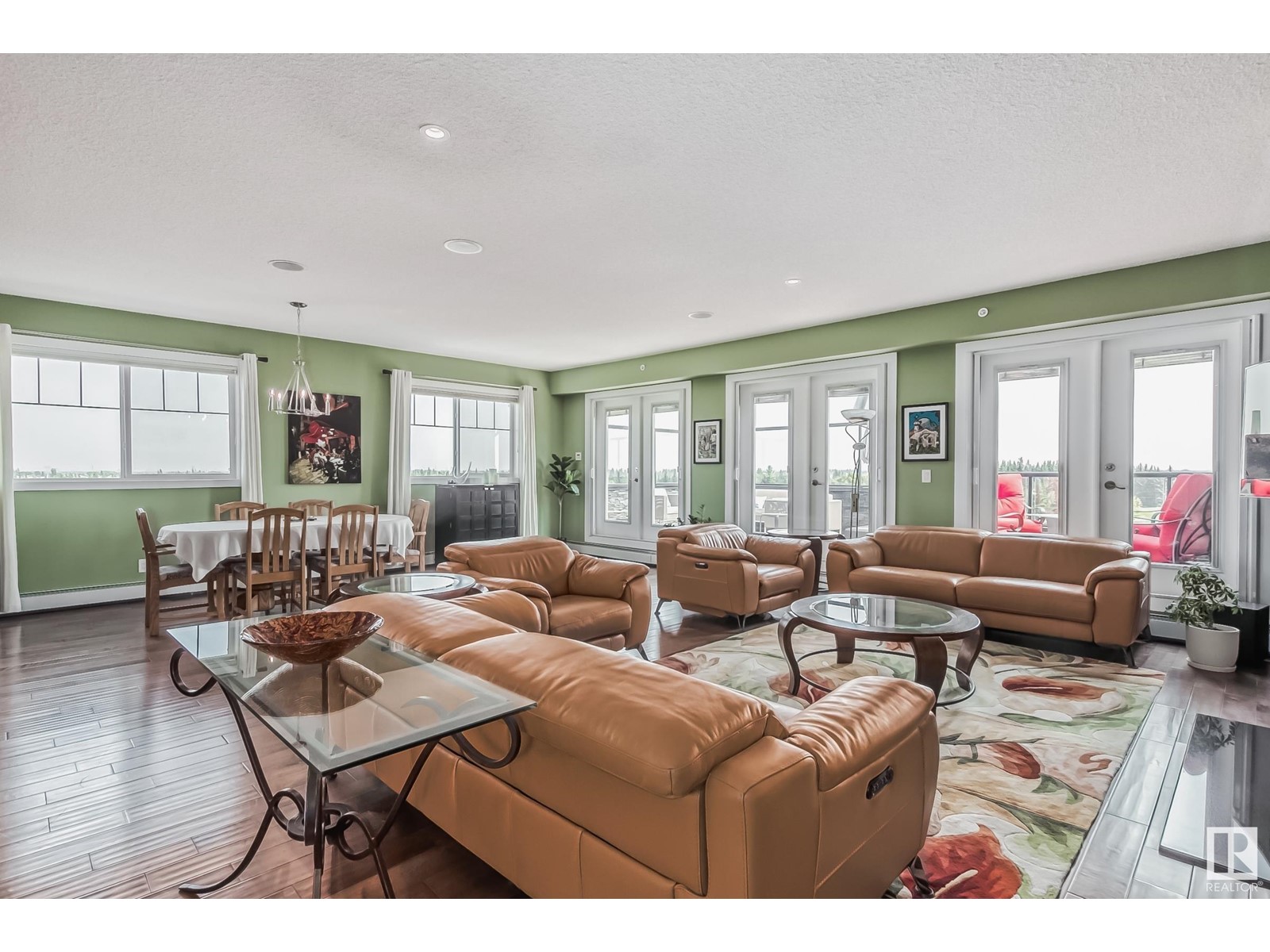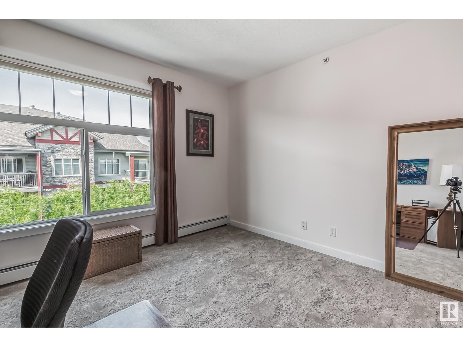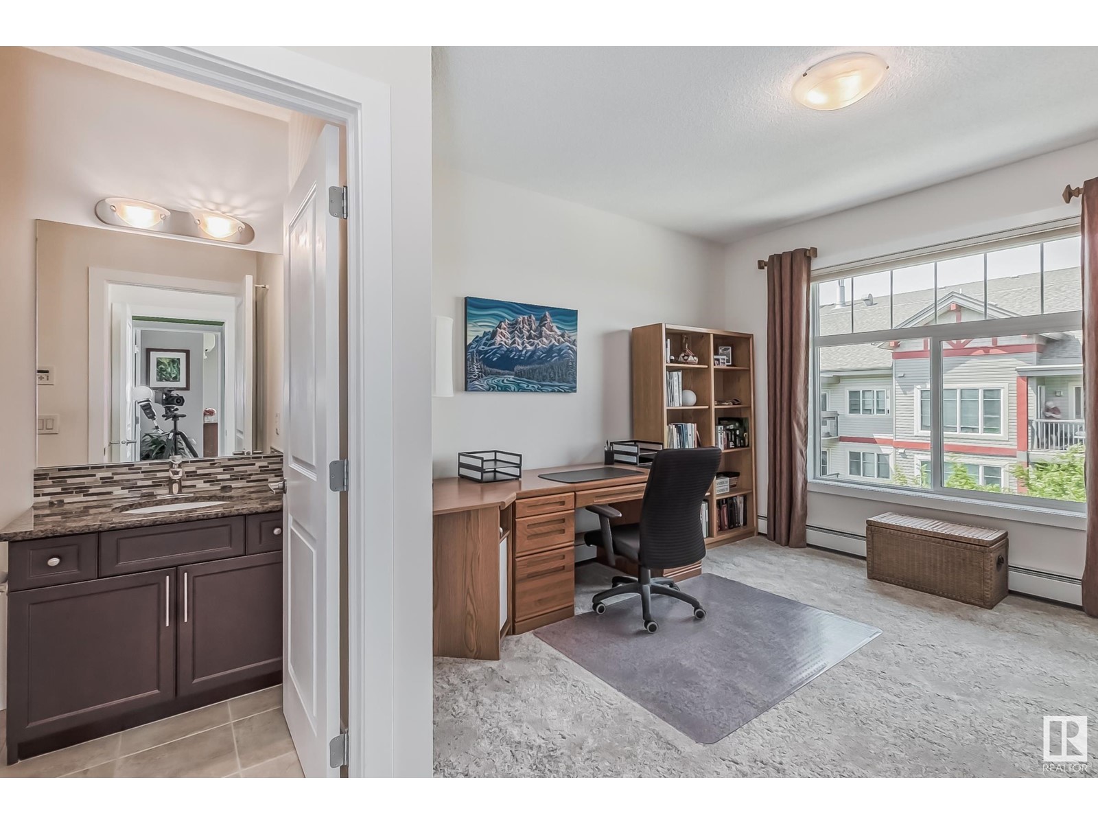PREMIUM EXECUTIVE CONDO! Backing onto Blckmd Creek with stunning Ravine views this TOP FLOOR CORNER UNIT is absolutely spectacular! tandem titled parking stalls (1 EV stall) All the high-end upgrades you would expect in a home of this caliber including, 10ft ceilings, floor to ceiling windows, large private rooftop balcony, A/C & luxury hand scraped hardwood. The kitchen is a chef's dream, granite countertops, pendant, pot & under cabinet lighting, corner pantry, s/s appliances & massive island with sink & breakfast bar. The open design floor plan offers a wonderful living & dining area, unique custom fireplace & balcony doors opening to the breathtaking outdoor oasis with plenty of space to bring the dining outdoors! The primary bedroom has a w/i closet, gorgeous ensuite, his/her sinks & huge windows. The 2nd bedroom also has its own ensuite & den has a PRIVATE balcony. With scenic walking trails & restaurants within walking distance, plus the Henday & Hwy 2 minutes away, the location is UNBEATABLE!! (id:22211)