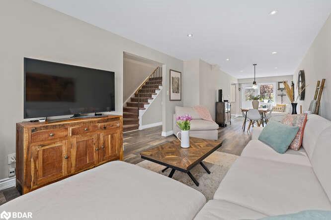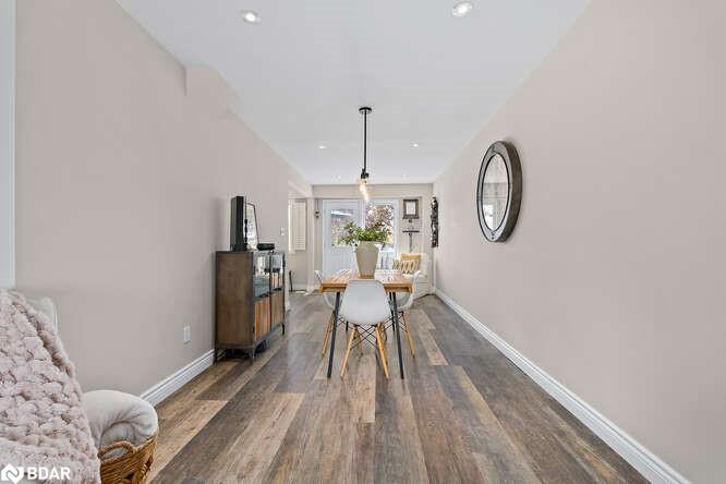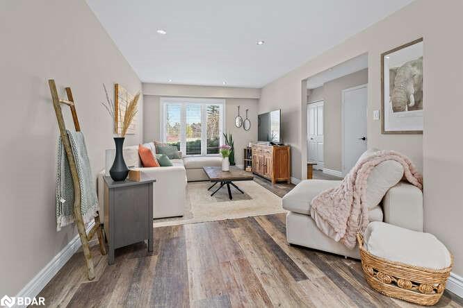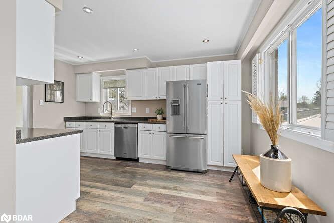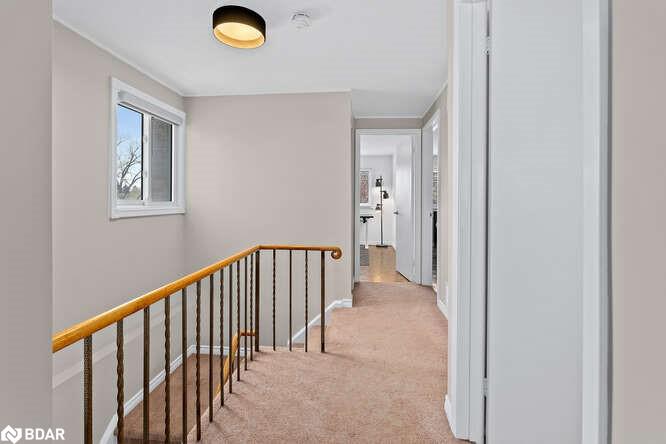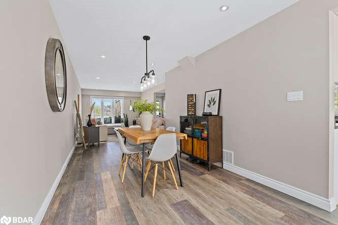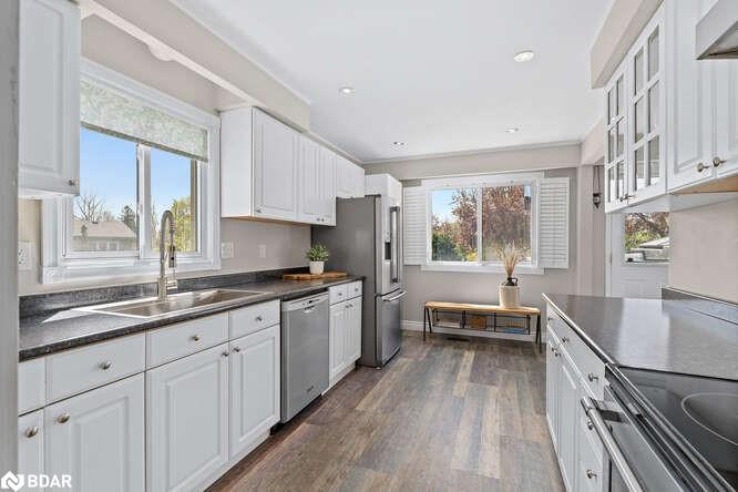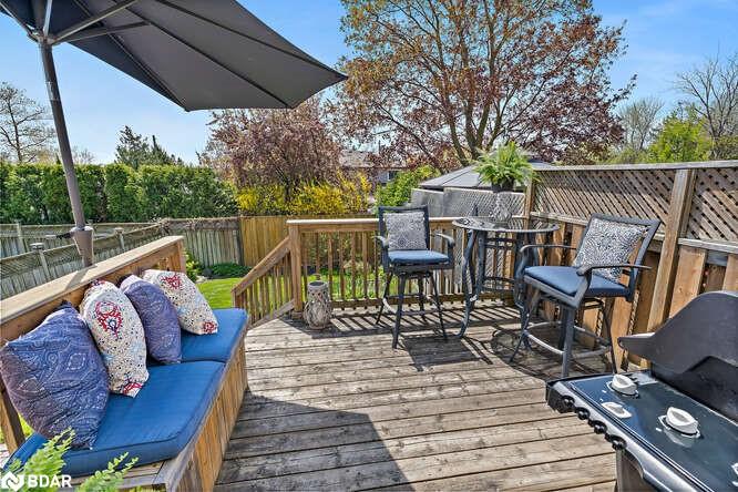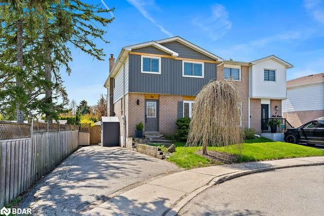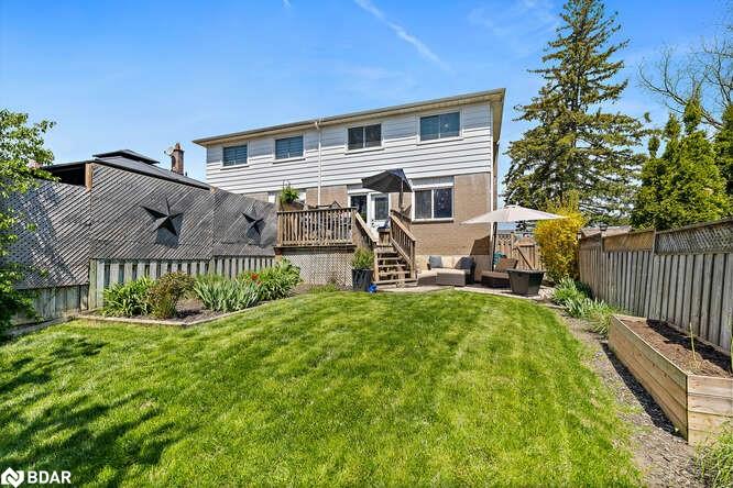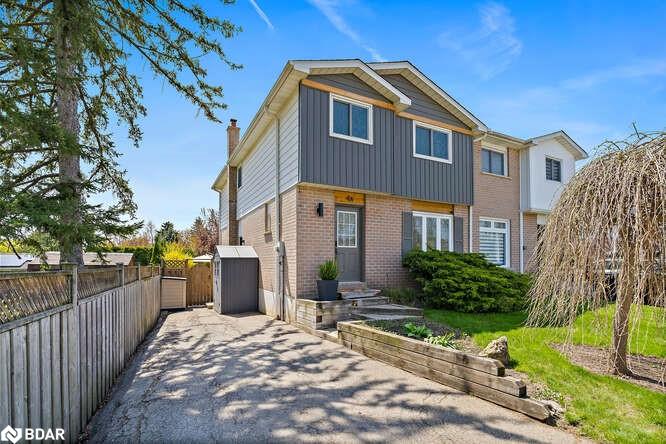 Great location near the GO Bus route for this affordable 4 bedroom semi-detached home which has been beautifully updated on a mature lot. You'll love the size of the principal rooms with newer luxury vinyl floors, smooth ceilings, pot lights and lots of natural light pouring in. Walk-out from the dining-room (with retractable screen) to a great deck, built-in bench and lower patio for entertaining. Fully fenced with mature landscaping & lots of room to play. The primary bedroom fits a "California King" if needed with plenty of space left over. The other 3 bedrooms are generous in size. For additional living space, you'll find a finished basement with luxury vinyl floors, (2) bam doors, pot lights, lots of storage space, built-in bar area with shelves under the stairs & large laundry room. Updated (2023) vinyl siding & tri on the front exterior of the home, front window (2016), shingles (2013), A/C (2010) convenient side door entry from driveway, shed for storage & under deck storage, garbage and utility shed. Walking distance to Hungry Hollow Ravine & trail system.