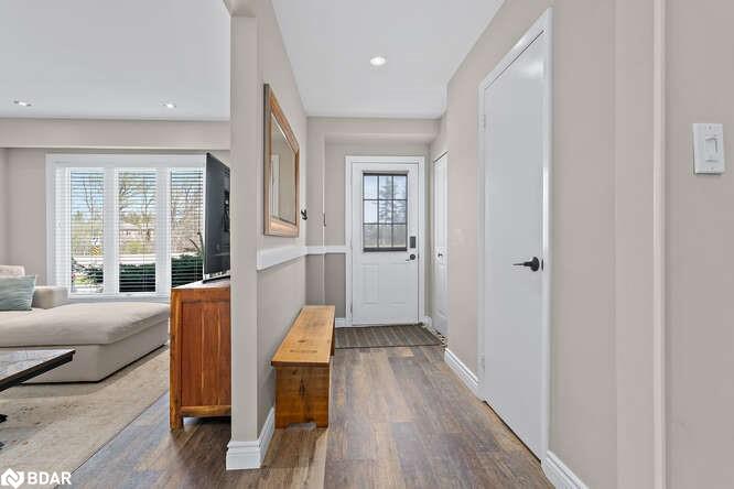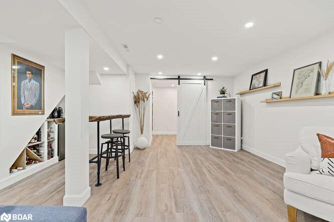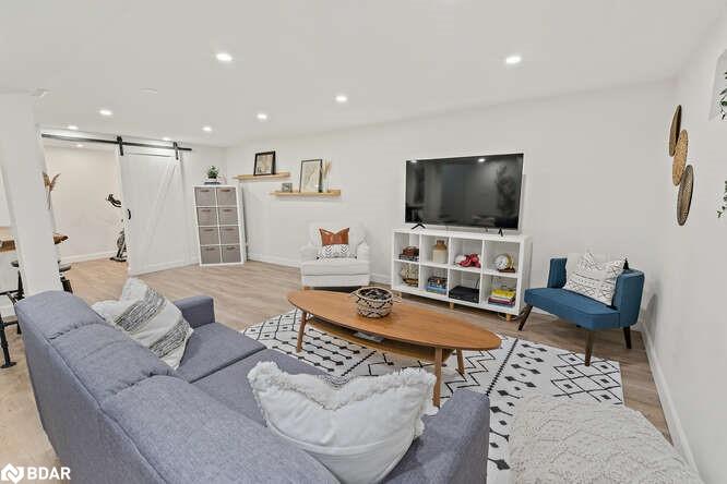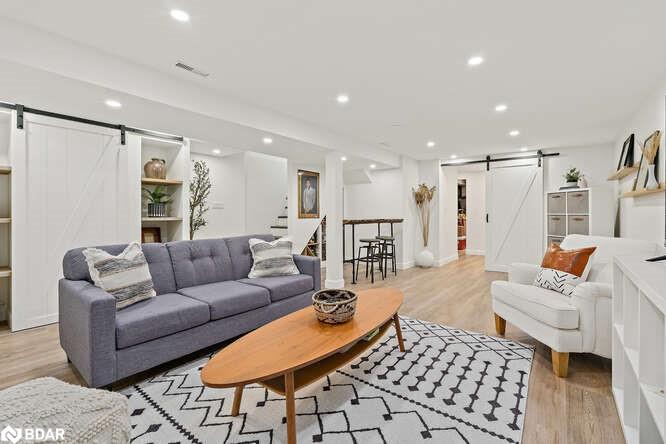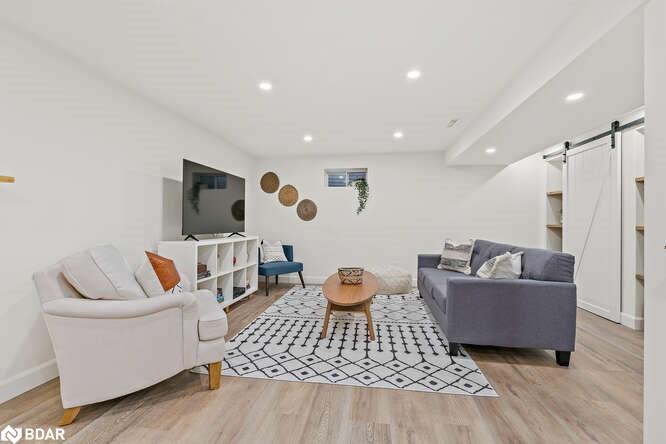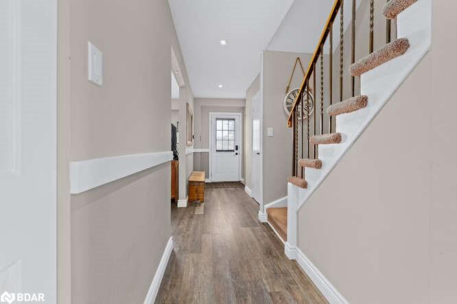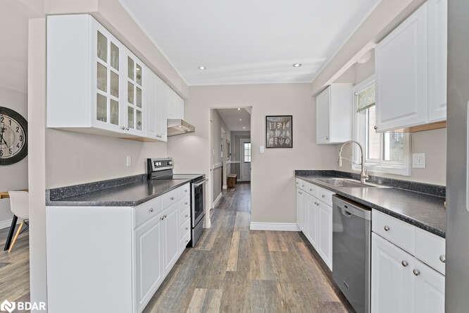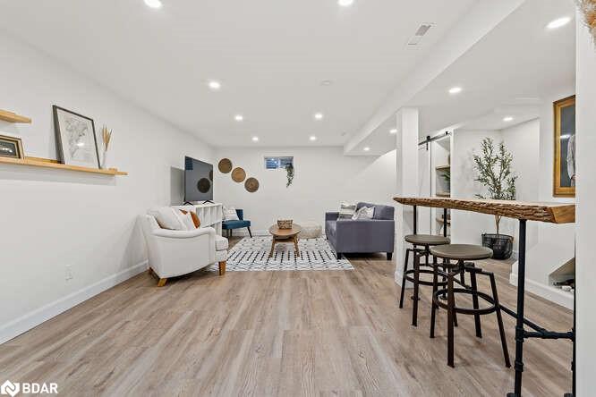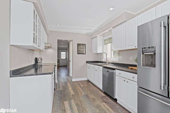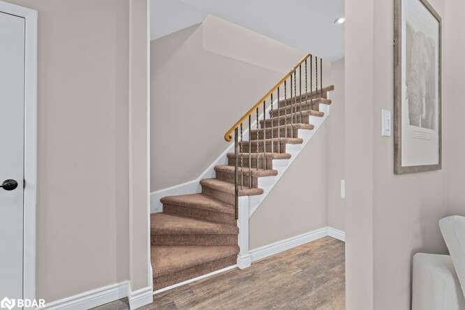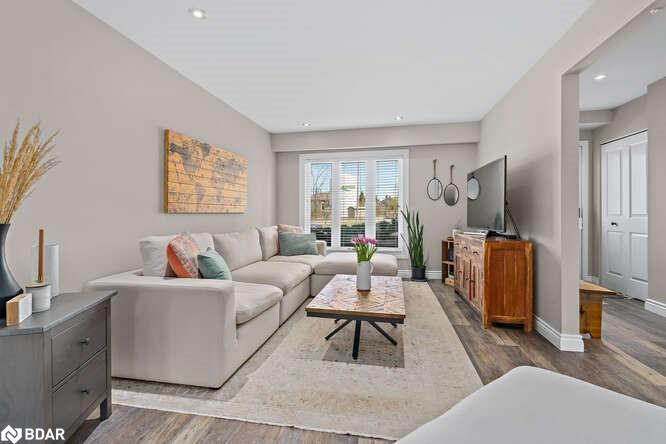 Great location near the GO Bus route for this affordable 4 bedroom semi-detached home which has been beautifully updated on a mature lot. You'll love the size of the principal rooms with newer luxury vinyl floors, smooth ceilings, pot lights and lots of natural light pouring in. Walk-out from the dining-room (with retractable screen) to a great deck, built-in bench and lower patio for entertaining. Fully fenced with mature landscaping & lots of room to play. The primary bedroom fits a "California King" if needed with plenty of space left over. The other 3 bedrooms are generous in size. For additional living space, you'll find a finished basement with luxury vinyl floors, (2) bam doors, pot lights, lots of storage space, built-in bar area with shelves under the stairs & large laundry room. Updated (2023) vinyl siding & tri on the front exterior of the home, front window (2016), shingles (2013), A/C (2010) convenient side door entry from driveway, shed for storage & under deck storage, garbage and utility shed. Walking distance to Hungry Hollow Ravine & trail system.