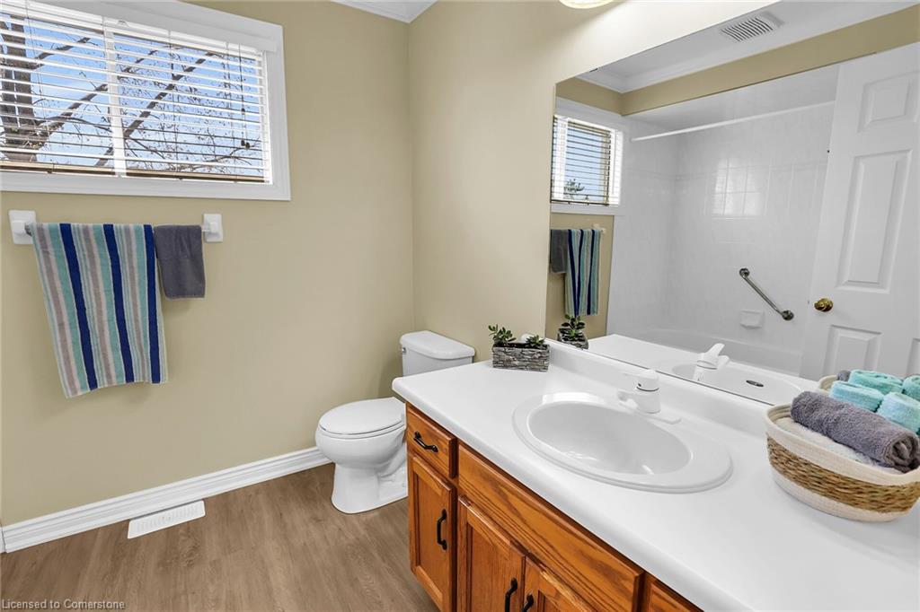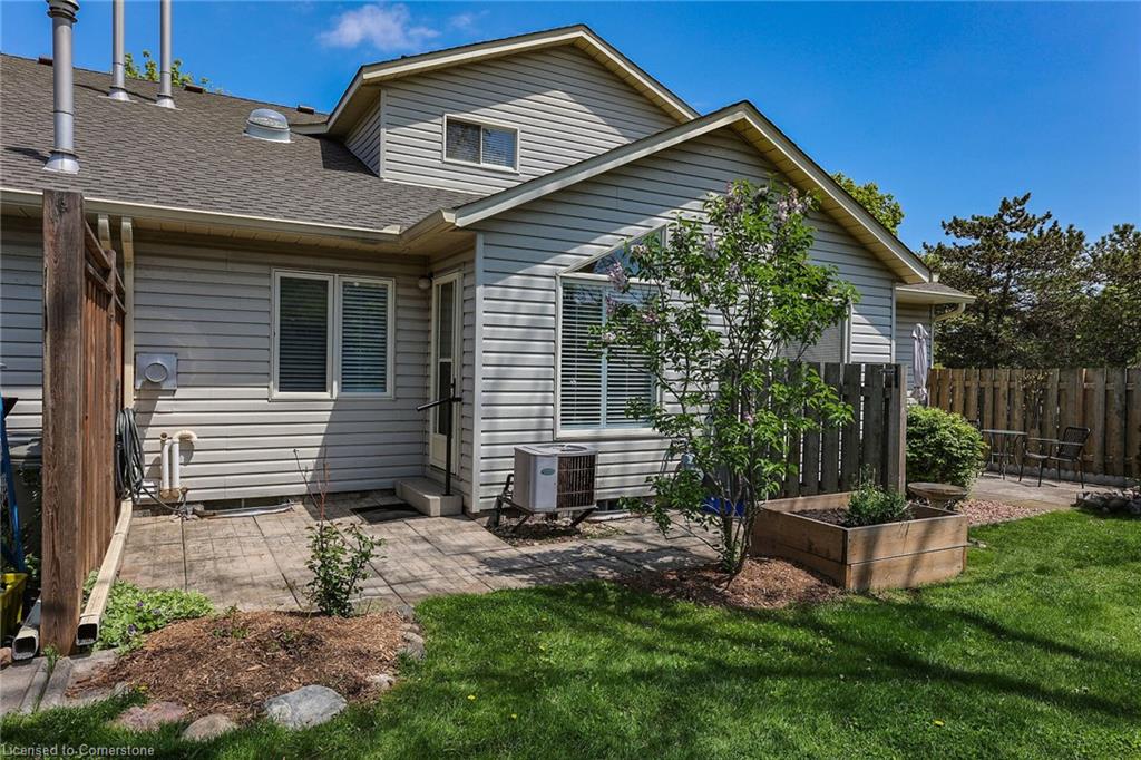 This is a fabulous condo complex attractive to empty nesters and professional couples. Clean and well maintained in a desirable location close to shopping, the hospital and easy hwy access. Main floor bedroom with ensuite privilege as well as 2nd floor, very spacious 2nd bedroom with full 4pc ensuite. Recent main floor vinyl plank flooring. Gas fireplace. The finished basement adds much more living space incl. family room, laundry/ hobby room, storage area and a 2 pc bath. Lovely yard and garden areas.