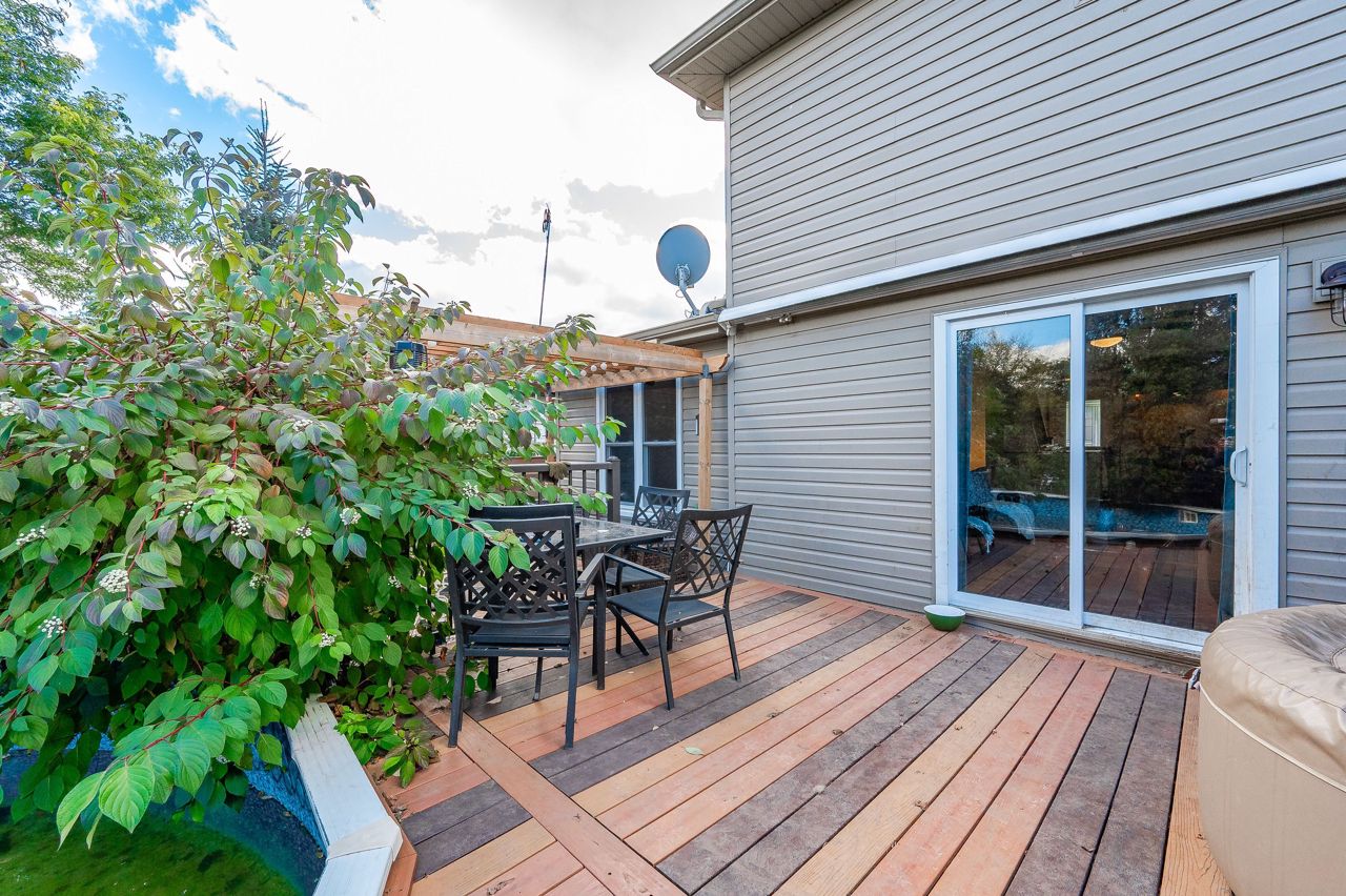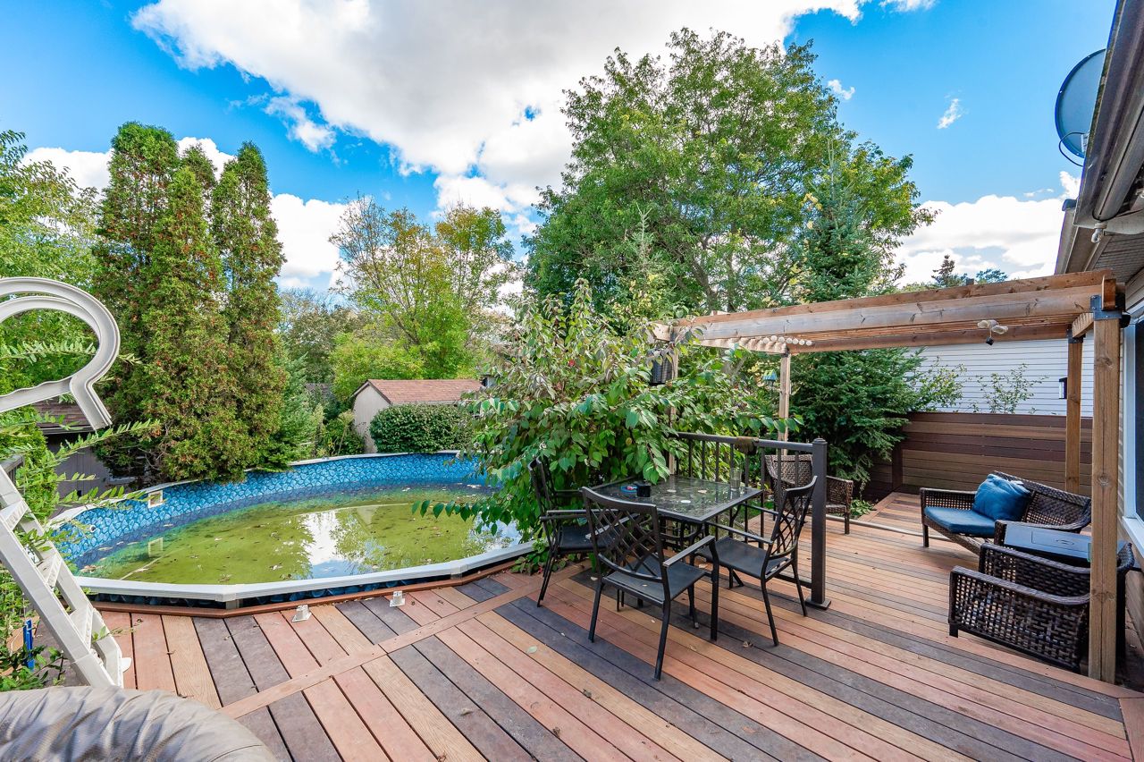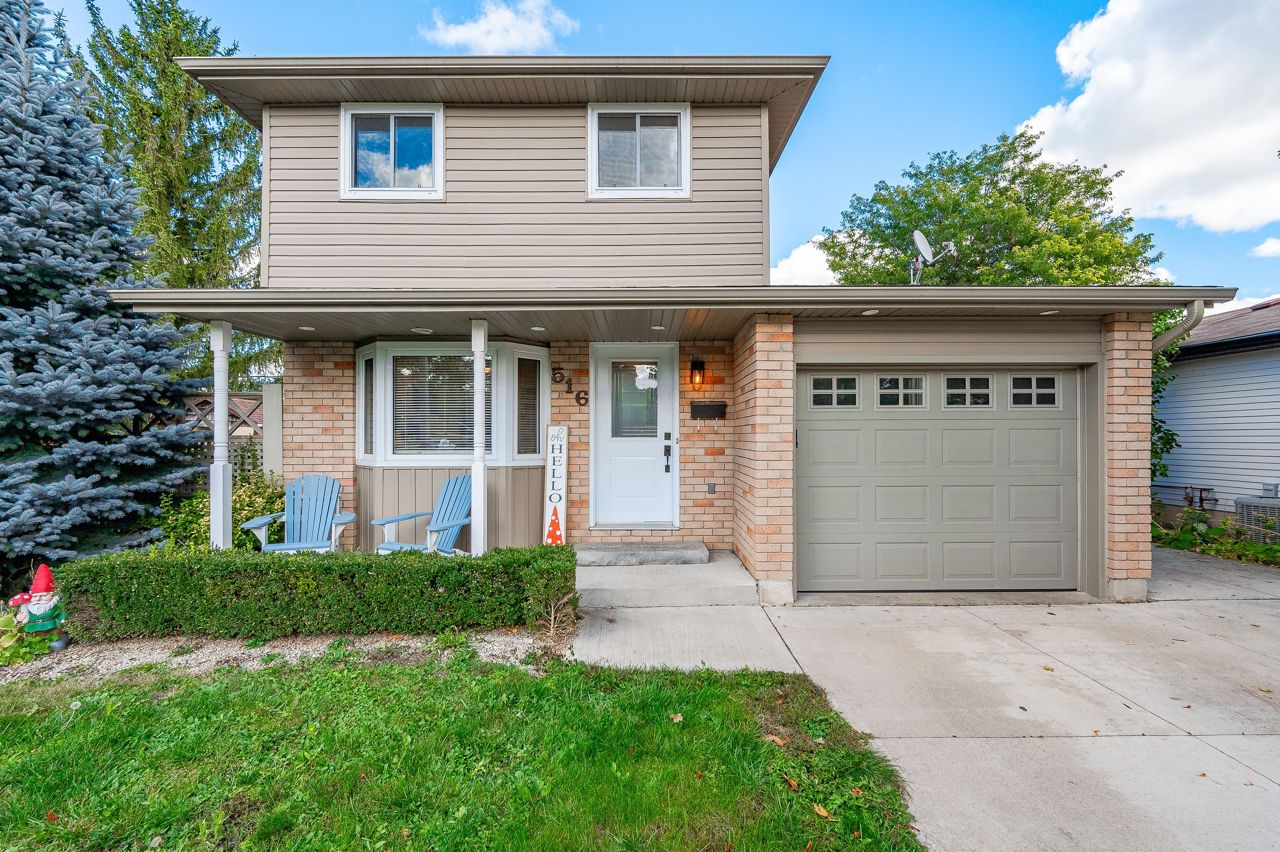 YOUR PEACEFUL, FAMILY HOME AWAITS. It's time to move the family to fresh air & quiet in this 3-bedroom detached home in Guelph's west-end. There's no space wasted in this home that showcases a gas fireplace in the open-concept, dining room, which then walks out to the deck & yard. There's a well-appointed, eat-in kitchen with plenty of cabinets, granite countertops, & modern stainless-steel appliances. The pièce de resistance on the main floor is the cozy, spacious family room with large windows & a stone mantel surrounding a built-in electric fireplace. The 2nd floor sparkles with 3 generously sized bedrooms & a beautifully updated 3-piece bathroom, complete with a large, tiled & glass shower. The finished basement expands the possibilities, offering a spacious rec room, laundry room, & roughed-in bathroom. Step out onto a composite deck adorned with a 10' x 18' awning and hot tub, overlooking the above-ground swimming pool!There are 2 sheds, 1 with power, beautiful trees & gardens, all fully fenced & designed for your outdoor relaxation. All of this close to schools, churches, & a short drive from shopping including Costco and Zehrs, the West End Rec Centre.