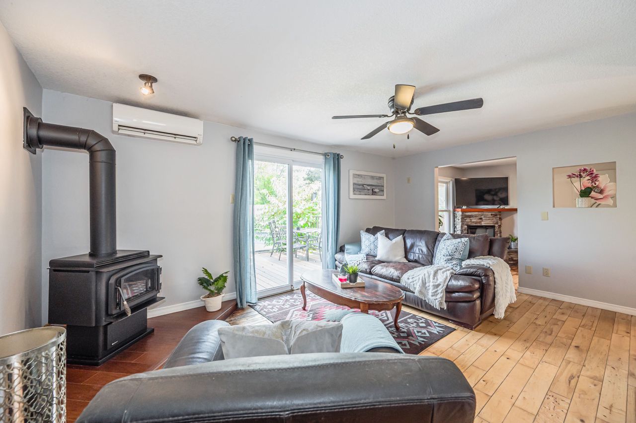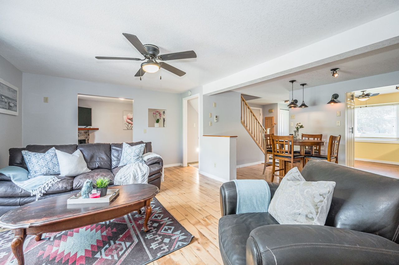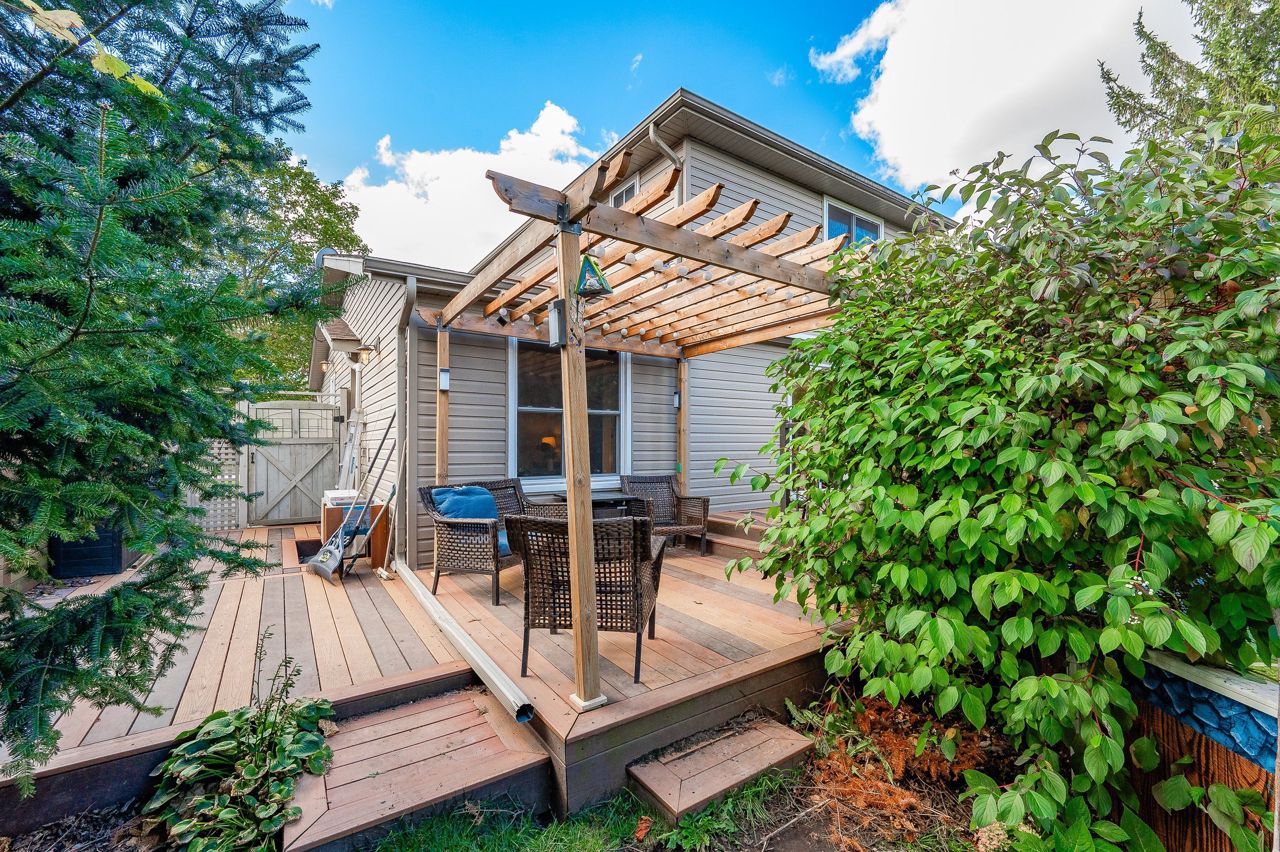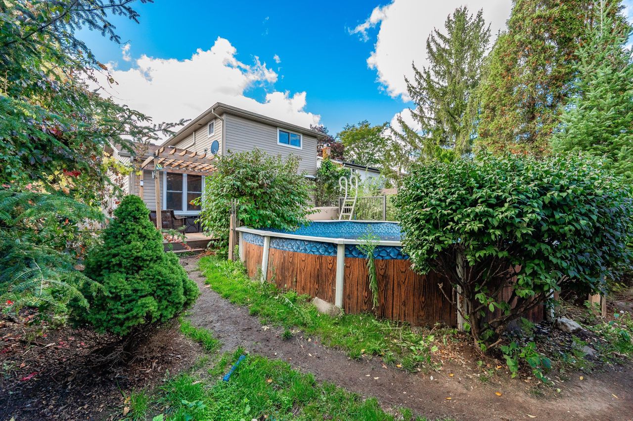 YOUR PEACEFUL, FAMILY HOME AWAITS. It's time to move the family to fresh air & quiet in this 3-bedroom detached home in Guelph's west-end. There's no space wasted in this home that showcases a gas fireplace in the open-concept, dining room, which then walks out to the deck & yard. There's a well-appointed, eat-in kitchen with plenty of cabinets, granite countertops, & modern stainless-steel appliances. The pièce de resistance on the main floor is the cozy, spacious family room with large windows & a stone mantel surrounding a built-in electric fireplace. The 2nd floor sparkles with 3 generously sized bedrooms & a beautifully updated 3-piece bathroom, complete with a large, tiled & glass shower. The finished basement expands the possibilities, offering a spacious rec room, laundry room, & roughed-in bathroom. Step out onto a composite deck adorned with a 10' x 18' awning and hot tub, overlooking the above-ground swimming pool!There are 2 sheds, 1 with power, beautiful trees & gardens, all fully fenced & designed for your outdoor relaxation. All of this close to schools, churches, & a short drive from shopping including Costco and Zehrs, the West End Rec Centre.