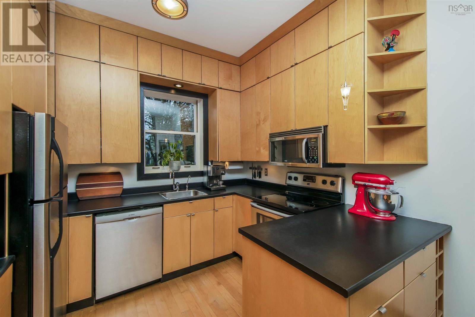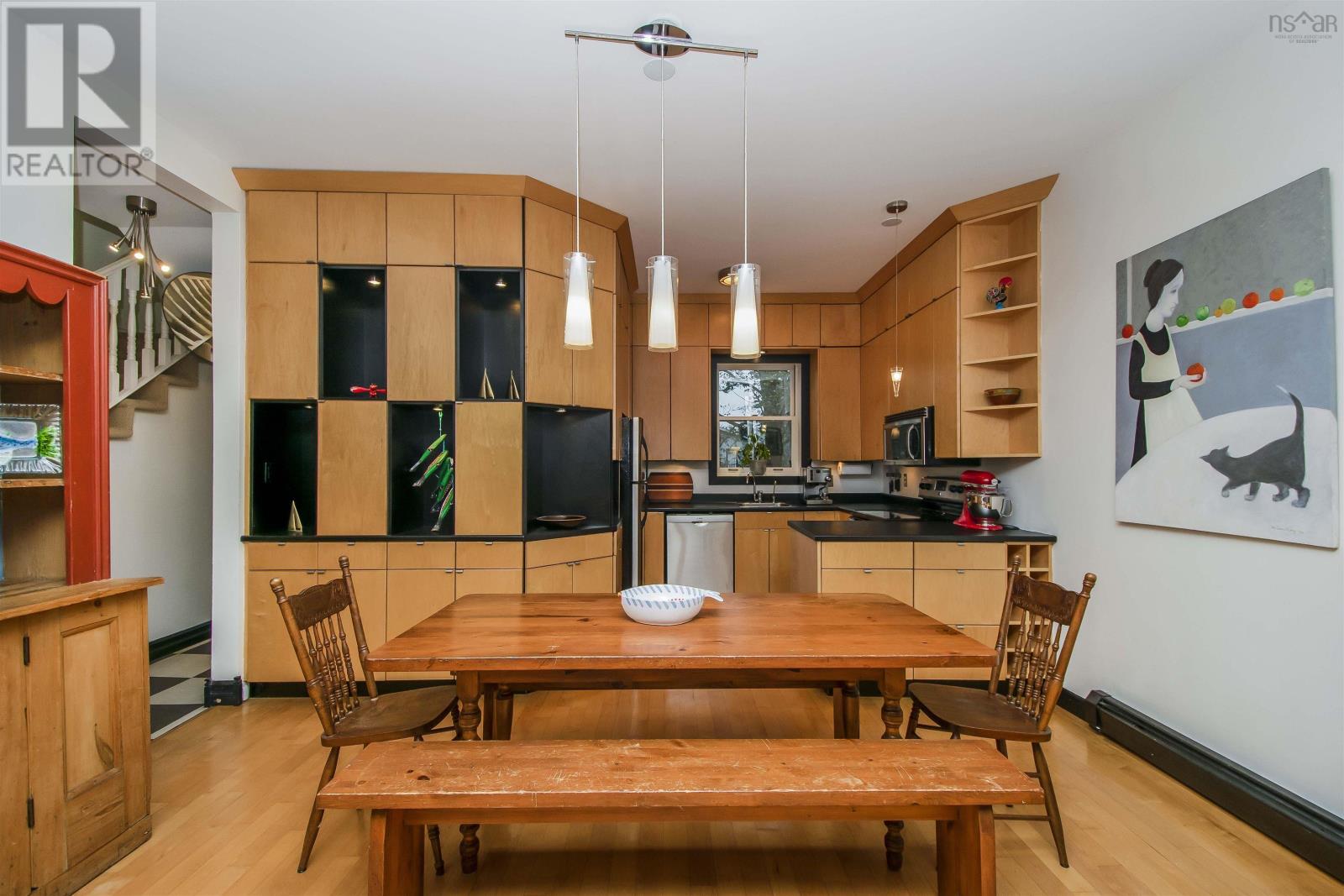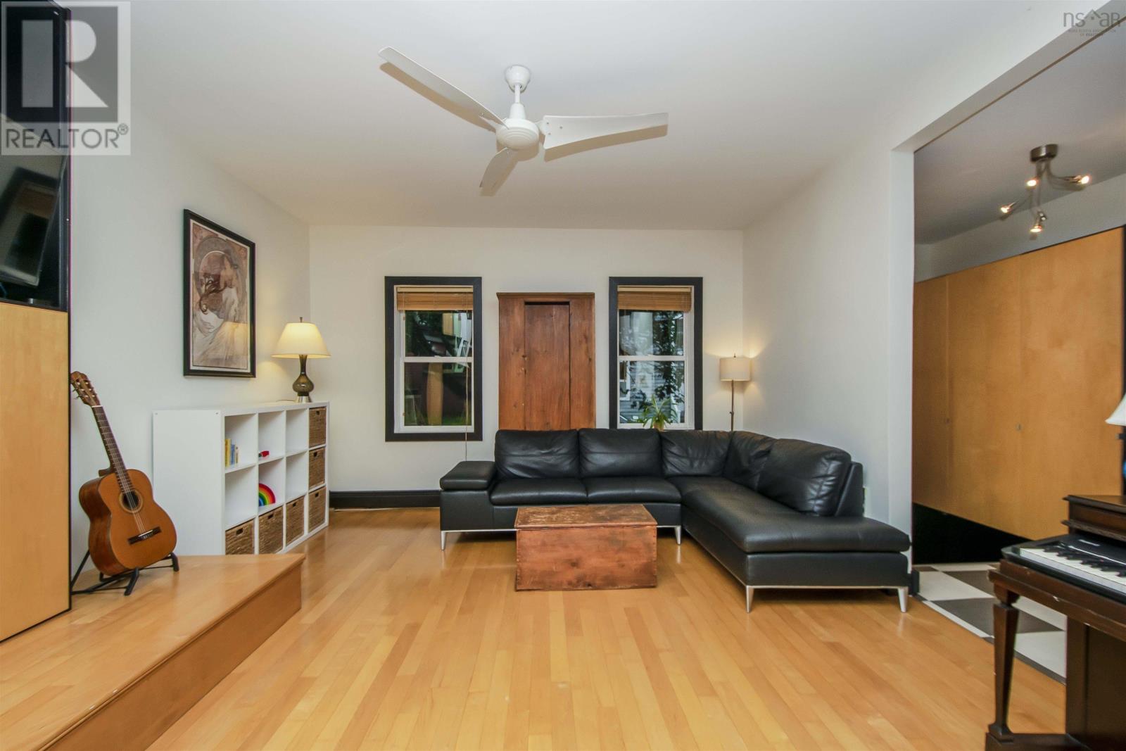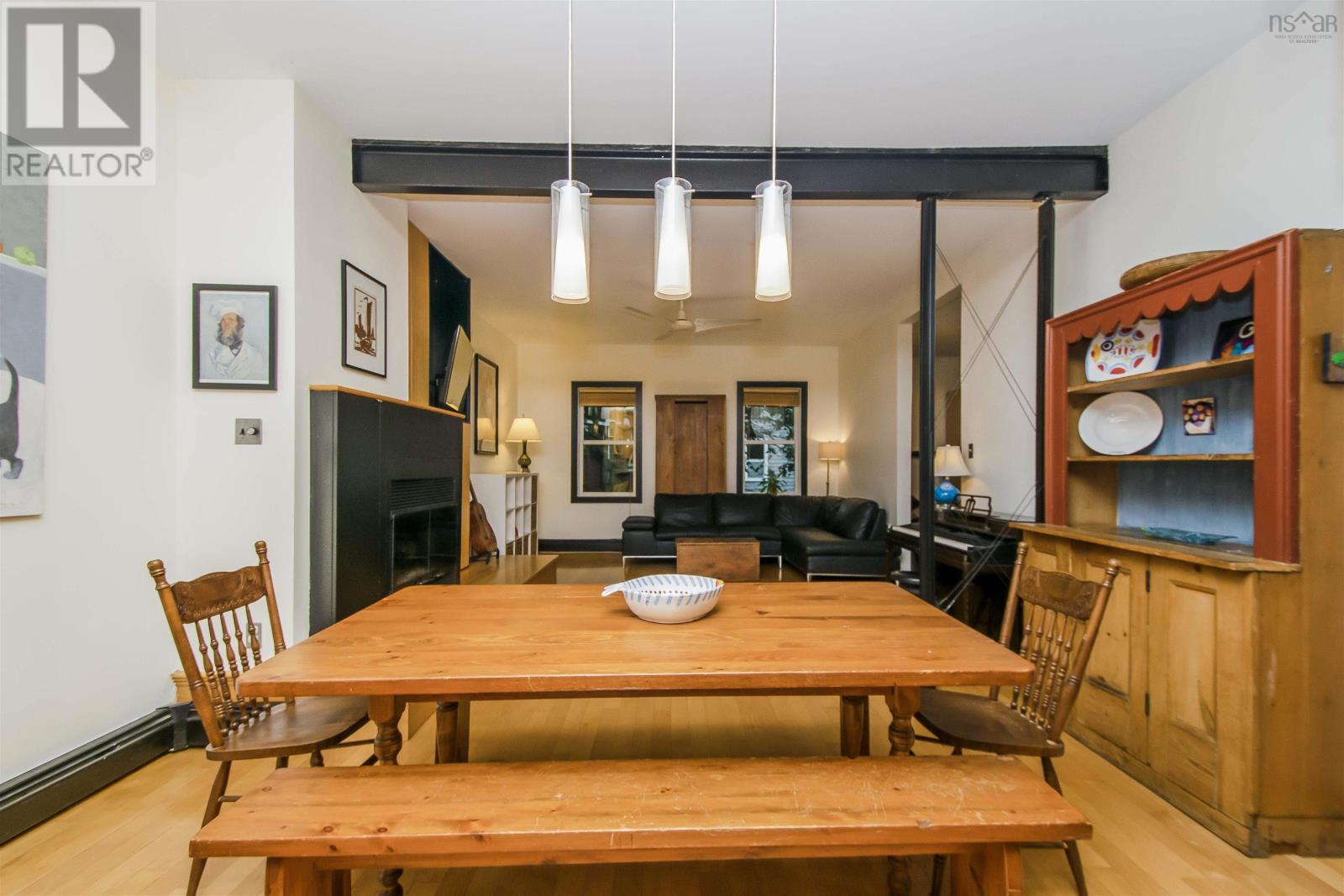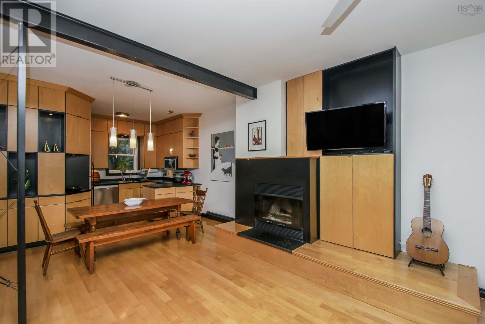 Nestled within Halifax?s vibrant Falkland-Maynard District, this 3 bedroom, 1.5 bathroom home exudes both timeless charm and modern comfort. Simply put, homes with three finished levels, a parking spot and spacious backyards don?t come along often in this coveted neighbourhood. Steeped in history, this property was built in the 1800s and then underwent an extensive modern renovation designed by local architect Niall Savage. Legendary Halifax musician Bucky Adams once called this home and hosted fabled parties with a who's who of the jazz world. The main floor is an open concept kitchen-dining-living room space with high ceilings, a wood burning fireplace and custom cabinetry. Upstairs, original wide plank flooring flows into two good sized bedrooms, each with a dormer. The primary bedroom has a full wall of built-in closets. Up here you?ll also find a European style full bathroom fit for the pages of a design magazine. The lower level, with sizable windows facing the backyard, can act as a large third bedroom or a den/office zone. A storage room and laundry room are on this level as well. The backyard is fully fenced and hosts a variety of raised beds for those with a green thumb. The stone driveway is great for parking one car, or it can serve as a big patio space; your choice! There is also permit parking on the street for residents at the cost of $75/year ($175 for an additional second permit). Most recently, the current owners have put on a new deck, new front portion of roof and painted the street-facing exterior. (id:22211)