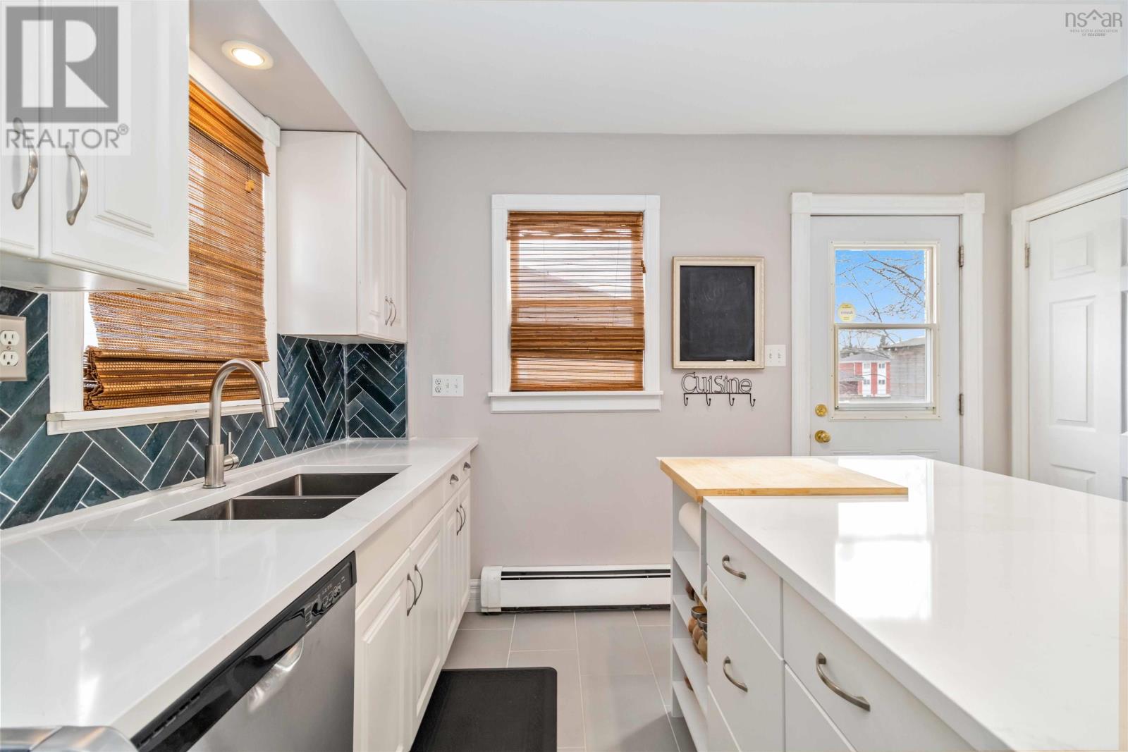 Pride of ownership is evident in this gorgeous 2-storey home, perfectly located on a quiet street bordering Halifaxs sought-after west end. Featuring a legal secondary suite on the lower level, this home offers an excellent opportunity for multi-generational living or rental income to help offset your mortgage. The garage could also be turned into a third unit for more potential. The property boasts beautiful curb appeal, with a newly updated front porch, vinyl handrails, siding, and fresh landscaping. Inside, the main level offers a spacious living room, renovated kitchen with Silestone quartz countertops and an island, a separate dining room, and convenient main-floor laundry. Upstairs, youll find three sizeable bedroomstwo with walk-in closetsand a full bathroom. The fully finished lower-level suite includes two bedrooms, a bright living room, and an eat-in kitchen, making it ideal for family or tenants. Outdoor living is just as inviting, with a private backyard deck, a large yard perfect for kids and pets, and a 24 x 20 wired, heated outbuilding currently used as a home office and entertainment space. Additional features include a paved driveway with 130 feet of parking space, a double-stall insulated and heated garage with an attached shed, and numerous updates such as new flooring, half the windows replaced, a newer roof (2016), and garage shingles (2023). Close to excellent schools, all amenities, and just minutes from downtown Halifax, this home is a rare find in a prime location. (id:61201)