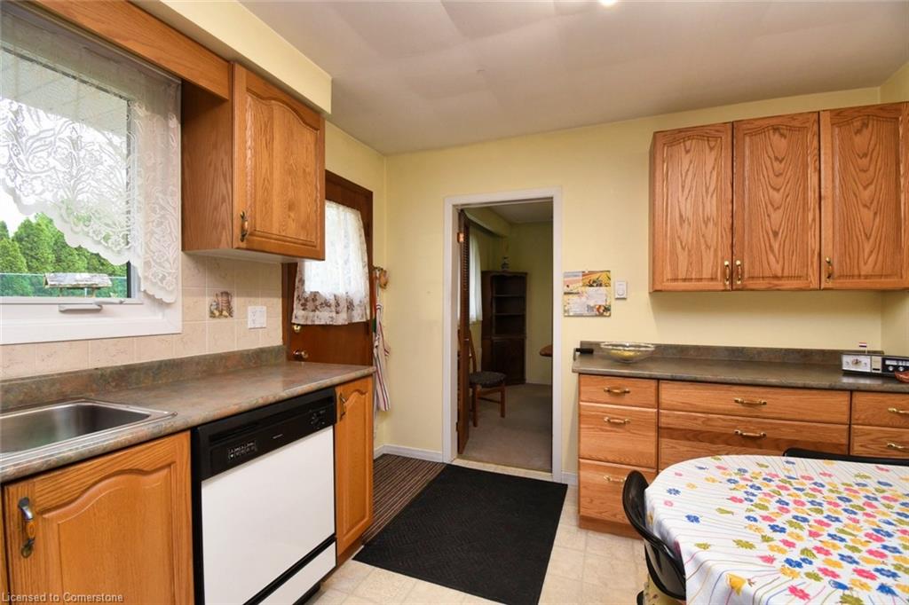 Desirable Dundas, This well maintained 3 level side split with attached garage is situated on a large lot in Highland Hills. The home offers 3 bedrooms and 2 bathrooms. The main floor is bright and spacious, L-shaped living and dining and eat in kitchen with access to back garden.. The upper level has three well sized bedrooms and a 4-piece bath. The lower level family room with wood burning stove/fireplace is a cozy spot to relax. Also on this level is a laundry area with 3 piece bath, back yard access and crawl space for storage. Walking distance to schools, recreation and conservation. With a few decorative touches and updates this home could be yours for many years to come!