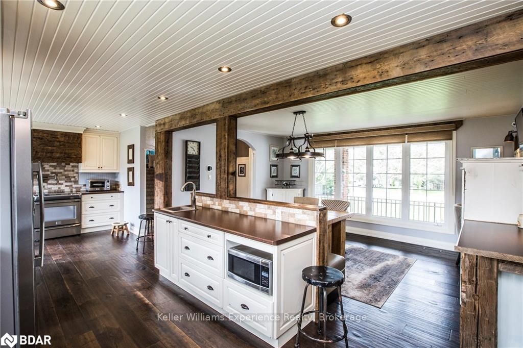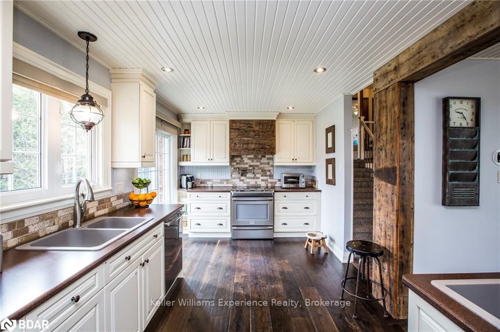 Incredible Custom Built Home In Churchill Full Of Gorgeous Custom Finishes! Quiet Street Close To Lake Simcoe. Massive & Private Lot, 4 Beds, 2 Baths, Eng. Hrdwd & Hrdwd Floors, Rustic Wood Beams, Tongue & Groove Ceilings, Custom Kitch W/ Stainless Steel Appliances, Multiple Walkouts, Cozy Fam Rm W/ Fireplace & Huge Yard W/ Fire Pit, Patio & Tall Trees. Two Sheds, Convenient Mudrm Off Kitch & Central Vac., Lifetime Warranty Steel Roof & More!