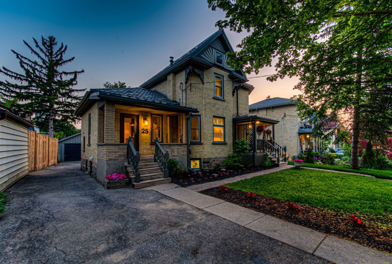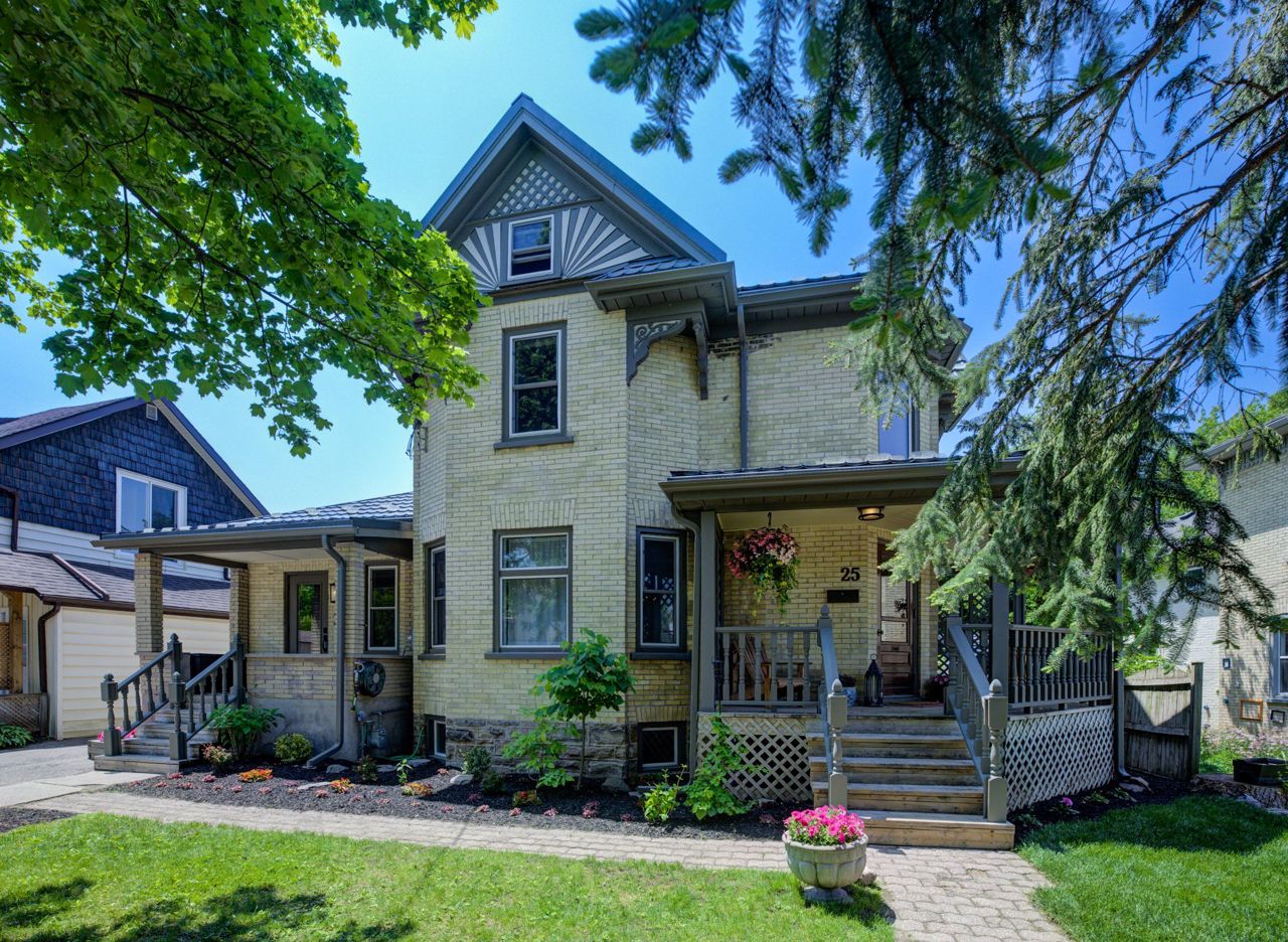 Welcome home to 25 Samuel St. Kitchener. Located in the desirable East Ward, this charming century home is full of character in a fabulous neighborhood and offers 3 bedrooms and 2 baths. Inside this home you will find plenty of space on the main floor including the professionally designed modern kitchen with walnut-topped central island, push-latch cabinetry, Carrera marble counters, European faucet and hardware. The living room is a big space which flows nicely into the large dining room. The main floor den/family room is such a great bonus. The tall ceilings, beautiful natural light, hardwood floors and tasteful decor give this home a very calming vibe. The main floor has a convenient 2 pc bath on the way to the great sized, spectacular backyard and these steps also lead down to the bsmt where your laundry and bonus rooms can be found. Upstairs the primary bedroom includes a large fitted closet. *see att for full remarks*