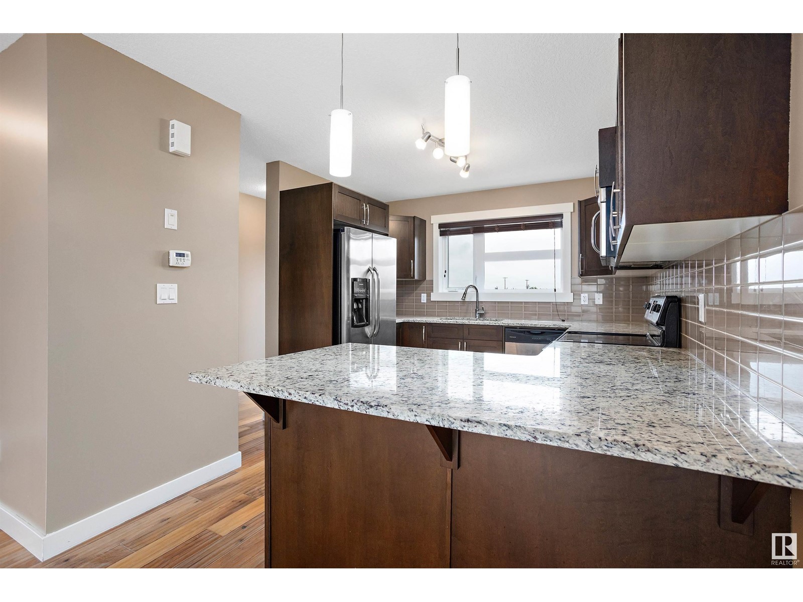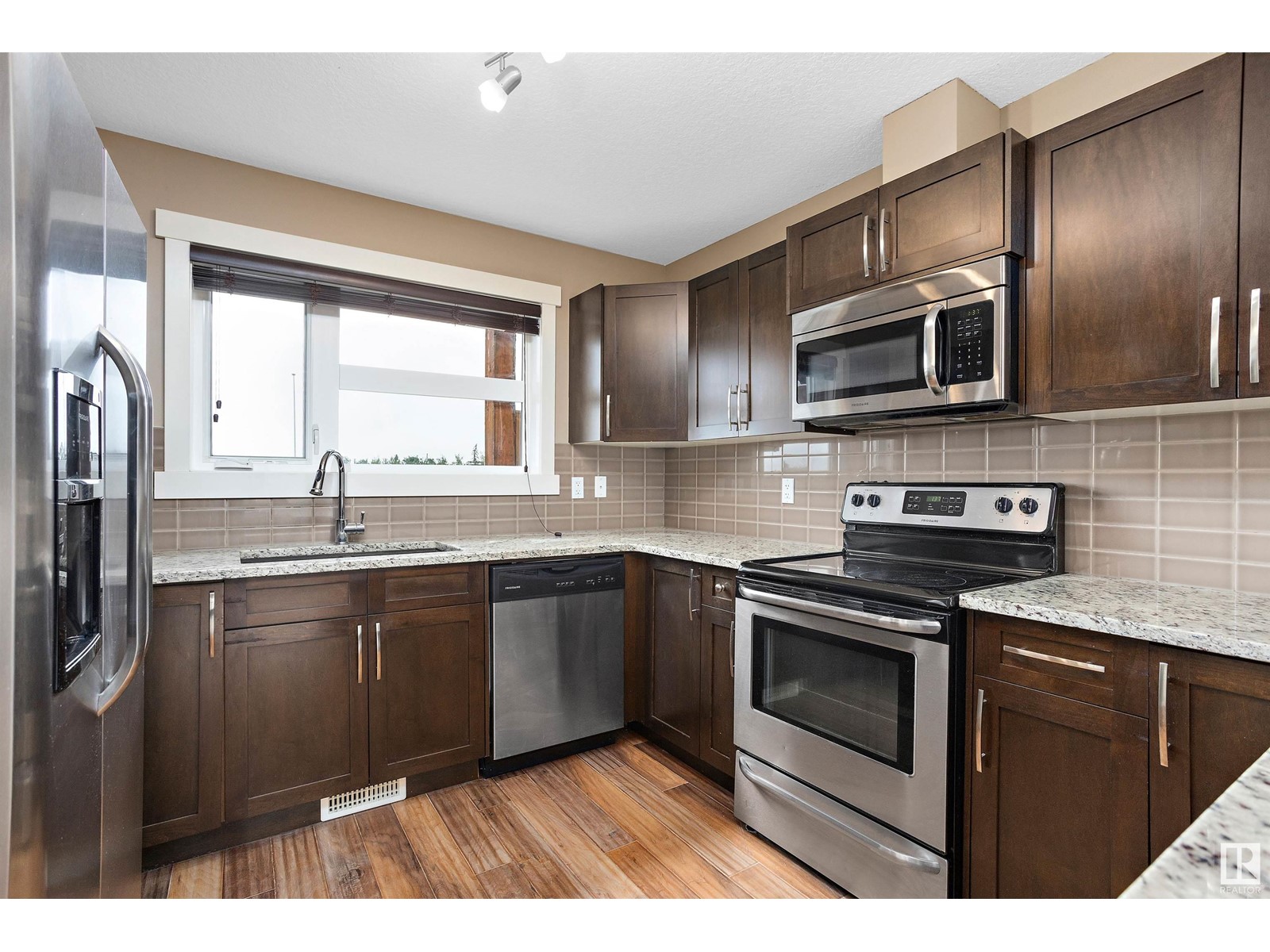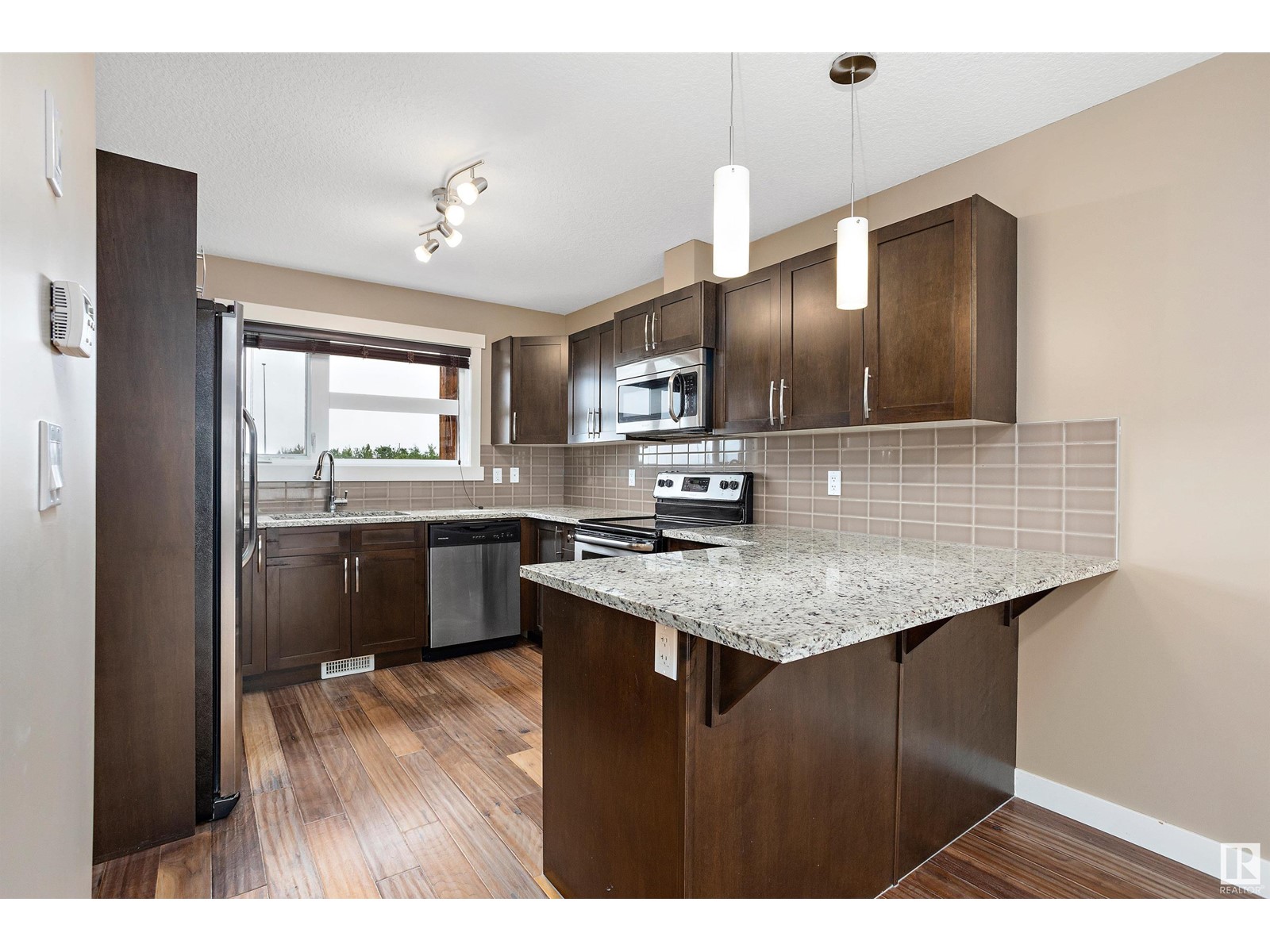 Immediate possession available in the Rushes Of Southfork!! Enjoy all the upgrades and features this 1,002 sf, 2-storey, 2 Bedroom 2.5 Bath, home offers: Bright and sunny west facing windows, hardwood flooring that span the entire main floor, kitchen with granite kitchen countertops, upgraded stainless steel appliances, and plenty of cabinet space, and a half bath on the main floor! Upstairs you will find the 2nd floor laundry, the main bath, and both very sizable bedrooms with walk-in closets, and the primary having a full 3 piece ensuite. Both bathrooms upstairs have granite counters! This home is equipped with a storage room in the single attached garage, with a high efficiency furnace and hot water tank. Close to schools, parks/playgrounds, and shopping amenitiesdont let this opportunity pass you by! (id:22211)