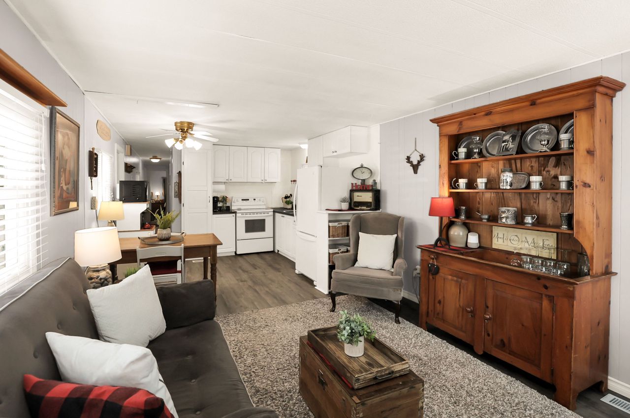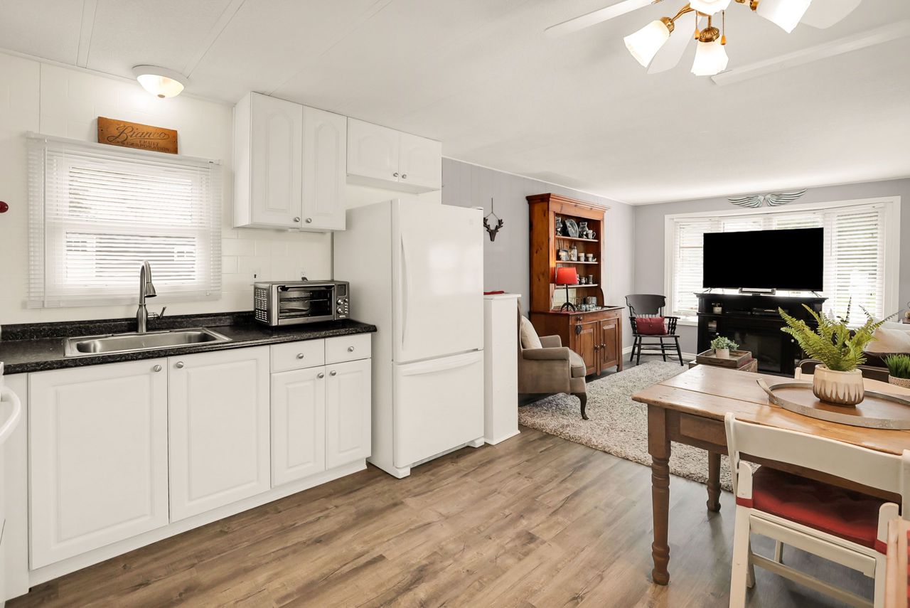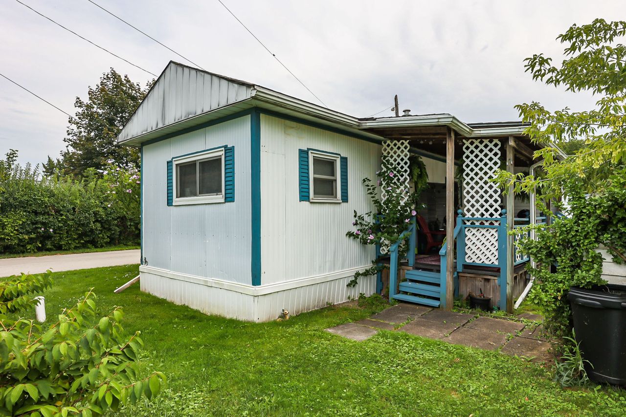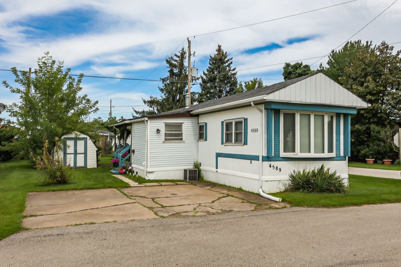 BRIGHT & COZY BUNGALOW … 2 bedroom, 1 bathroom UPDATED bungalow ON a prime corner lot at 4589 Abigail Lane in The Golden Horseshoe Estates in Beamsville. COVERED PORCH & mudroom entry leads to the bright, open concept living area with neutral paint throughout and eat-in kitchen with updated cabinetry. XL primary bedroom with dressing area & DOUBLE CLOSETS, 2nd bedroom, 4-pc bathroom, and laundry room with WALK OUT to porch complete the home. Concrete double drive plus shed. NEW: skirting 2020, vinyl flooring in living room/kitchen/hallway/bathroom 2023. NEW FEE $460.67/month pad fee includes Water and Taxes. The Golden Horseshoe Estates is in a great central location- along the Niagara Fruit & Wine Route, just minutes to the QEW, great shopping, parks, and restaurants plus only 10 minutes to the Grimsby GO Station, 30 minutes from Niagara Falls & US border, and 1 hour from Toronto! CLICK ON MULTIMEDIA FOR virtual tour, photos & more.