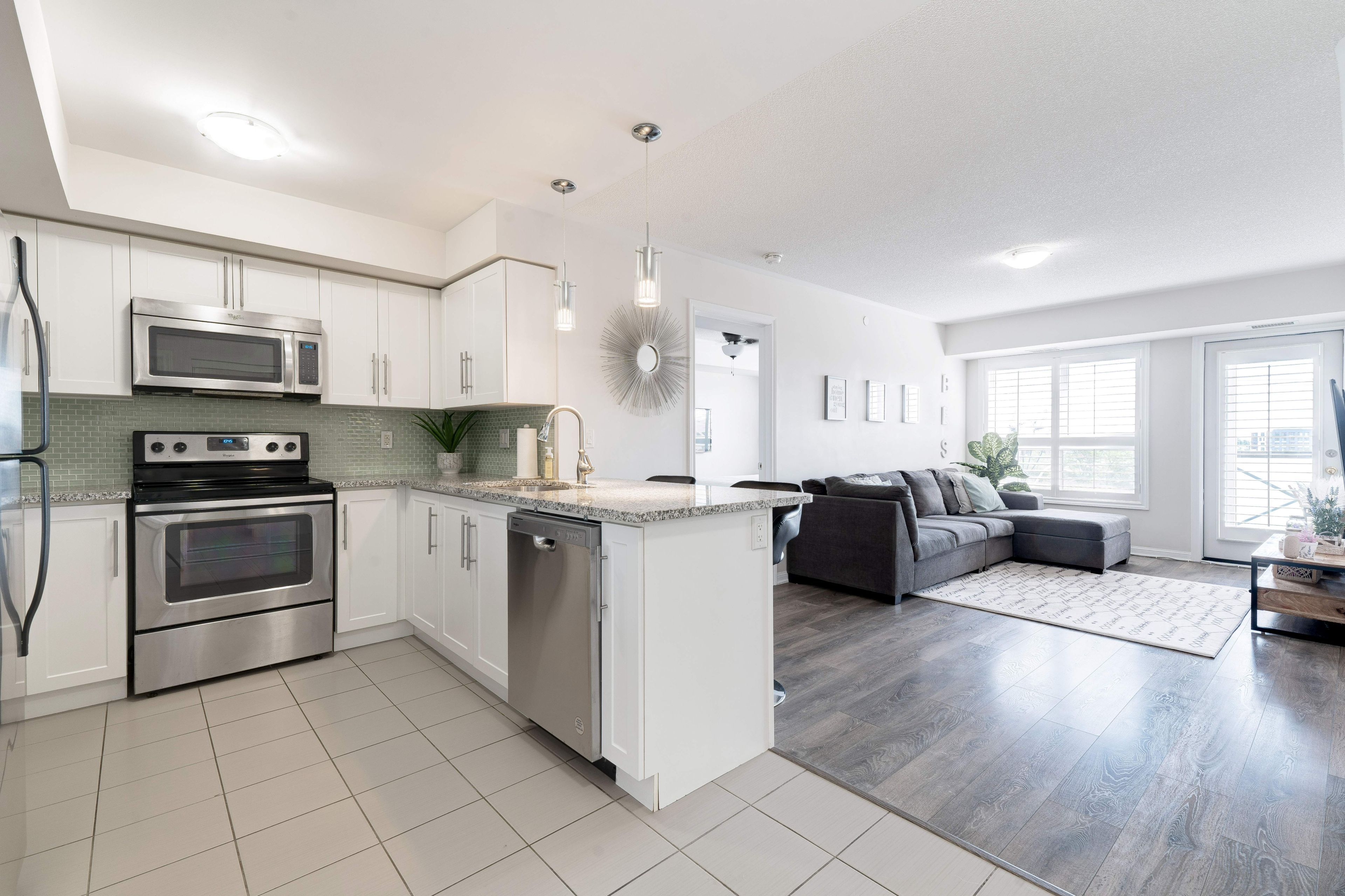 Discover your ideal home in this Ultra-Chic Two-Bedroom, Two-Full-Bathroom Condo, where luxury seamlessly blends with convenience. Impeccably maintained and spotlessly clean, this residence showcases a range of upgrades designed for sophisticated living. Step into a beautifully appointed kitchen featuring sleek white cabinets, gleaming granite countertops, and a stylish glass tile backsplash. Additional conveniences include a washer/dryer set within a spacious in-suite walk-in storage unit. An owned underground parking spot eliminates the hassle of winter scraping, and a dedicated storage locker provides ample space for your belongings. Situated just moments from essential amenities, schools, parks, library, and recreation centres. This condo offers unmatched convenience. Enjoy proximity to conservation areas, skiing, public transit, the GO Train, and major highways.