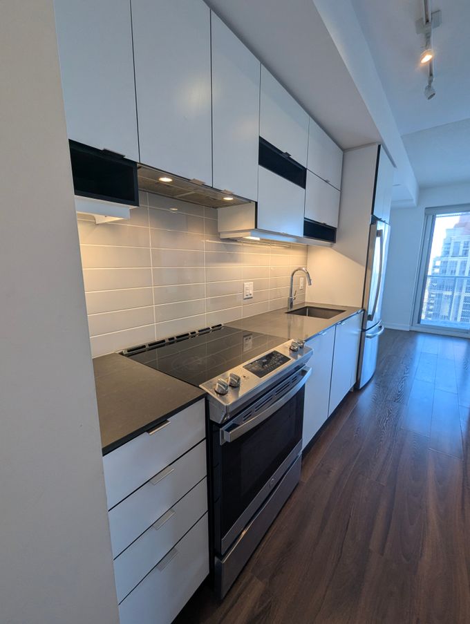 This one-bedroom condo boasts abundant natural light throughout, with a premium blend of laminate and tile flooring. It comes fully equipped with an in-unit washer and dryer, stainless steel fridge, stove and dishwasher, plus a convenient kitchen island for extra prep space. The bathroom has been tastefully upgraded with both a hand-held shower and a ceiling-mounted rainfall shower head, and the bedroom features a full-wall mirrored closet for ample storage.