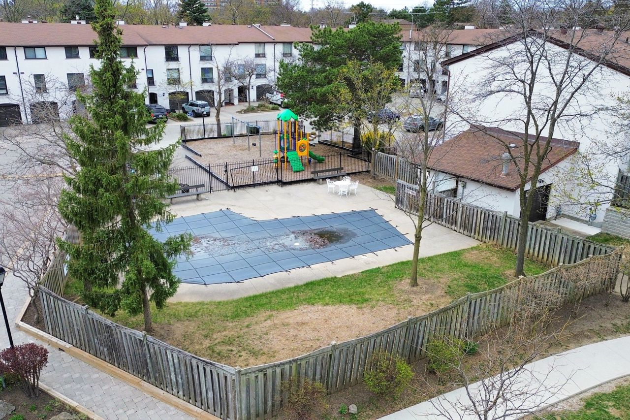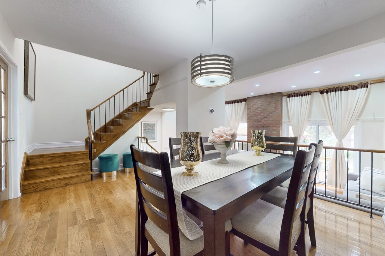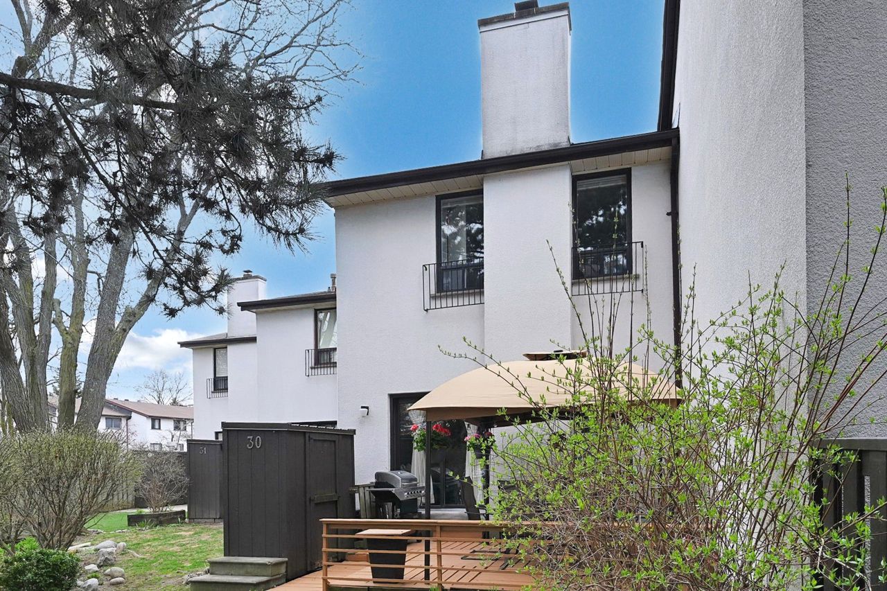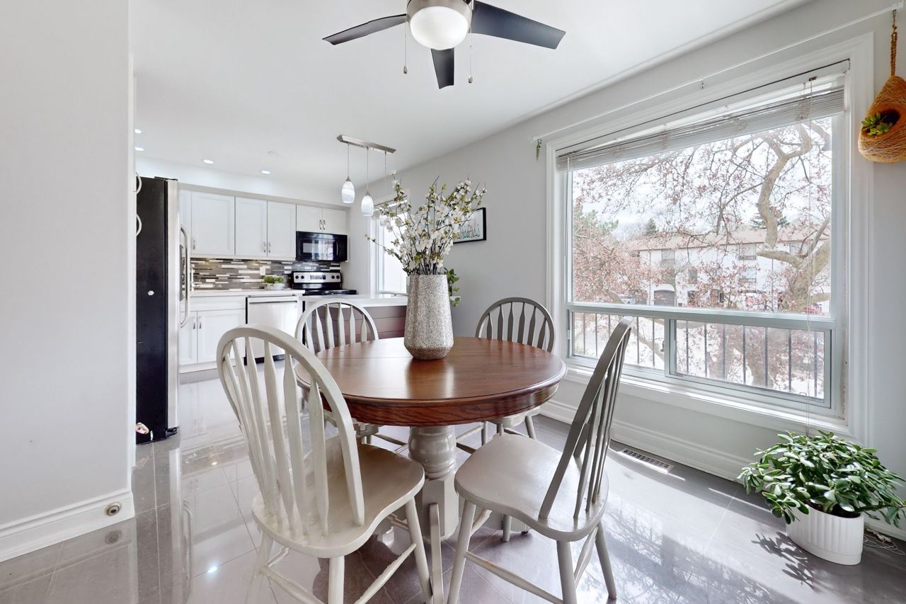 Beautiful Luxury Townhouse located in a Mediterranean Style Complex. Features a bright, open concept layout with hardwood and laminate flooring. An abundance of natural light throughout the house. High ceiling in living room, features wood burning fireplace and an elevated dining area. Upgraded eat-in kitchen with quartz counters, movable island and cabinets. King size Main bedroom with washroom and walk-in closet. Pot lights, tiled entry, upgraded appliances, newer windows, patio door, newer furnace (2022). Overlooking Spacious backyard with an amazing deck with canopy and mature trees. Outdoor swimming pool and playground in complex. Walking distance to Meadowvale GO, Steps to Maple Wood Public School (with a 7.8 rating) and Parks and 5 min Drive to Highway 401. A perfect blend of modern upgrades and ideal location This one checks all the boxes!