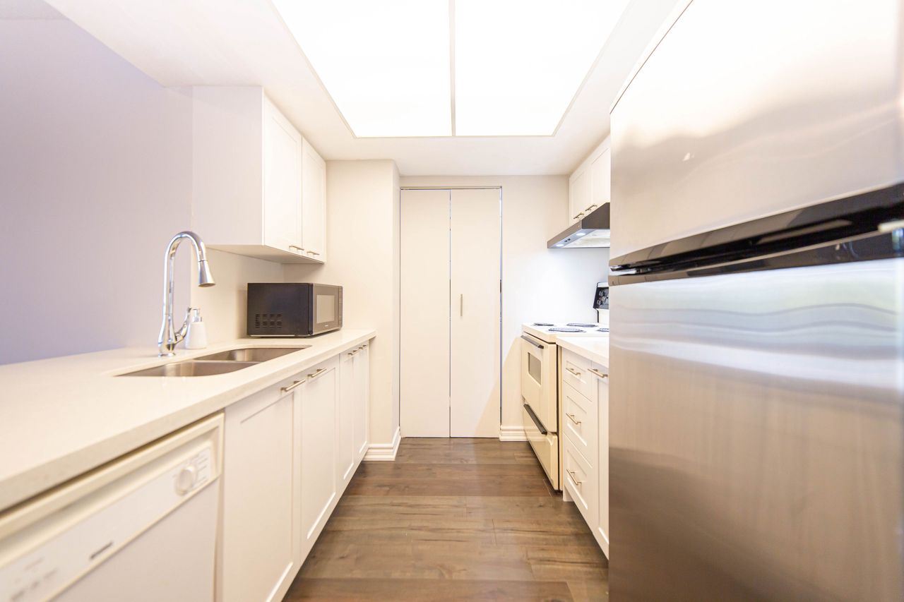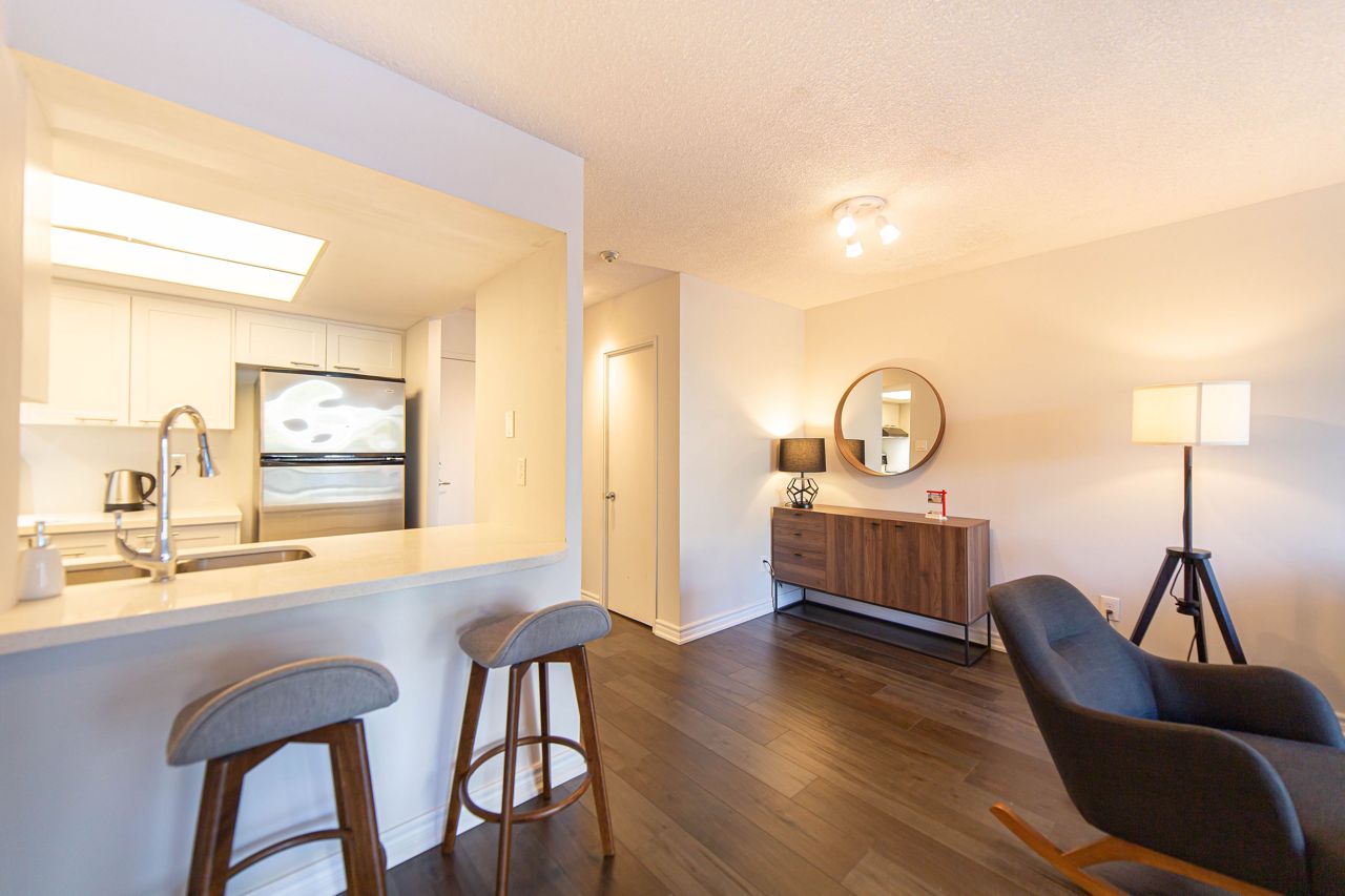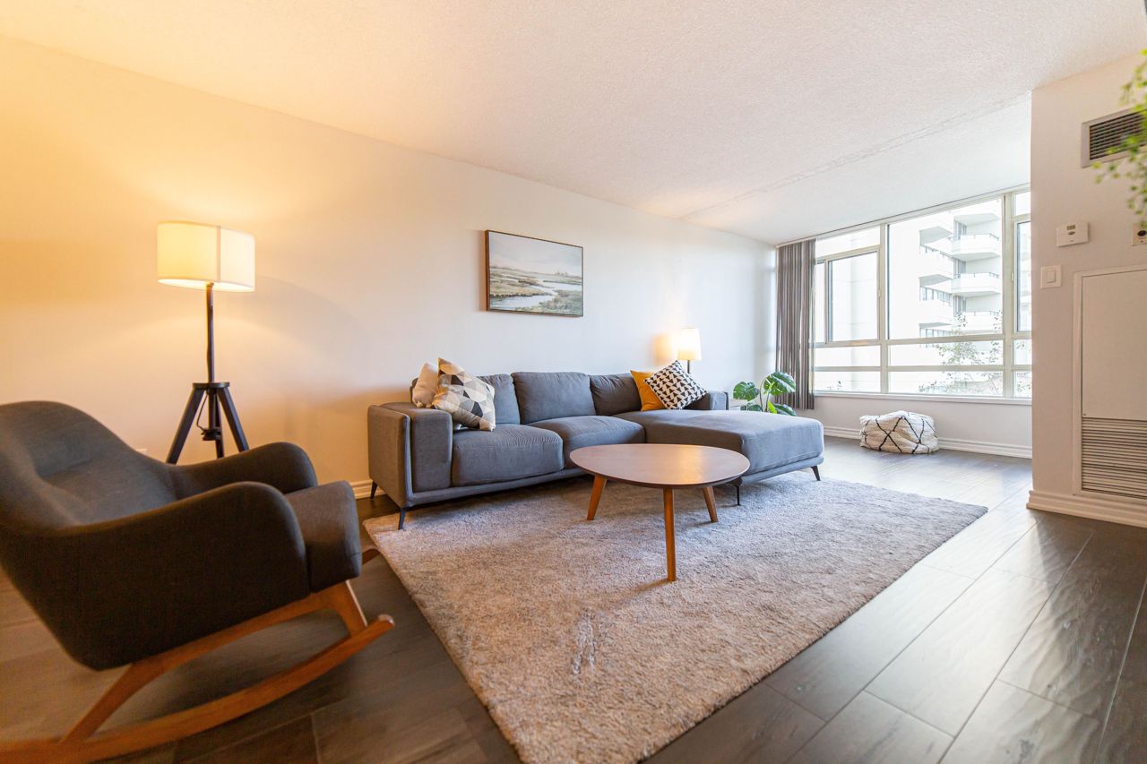 Units Rarely Become Available In This Luxurious "King Gardens" Building In The Heart Of Mississauga. Tastefully Renovated Open Concept Unit - Approx 780 Sqf - With Oversized Living/Dining &Den. Large Bedroom W/Semi Ensuite 4Pc Washroom. Modern Upgraded Kitchen, Quartz Countertop And Pot Lights. Ensuite Stacked Washer/Dryer. New Windows 2021. Walking Distance To Future Lrt, Transit, Restaurants And Shopping. Close To Qew, 403, Go And Sq1.Maintenance includes: Heat, AC, Hydro, Water And Rogers Ultra High Speed Internet/Cable !!