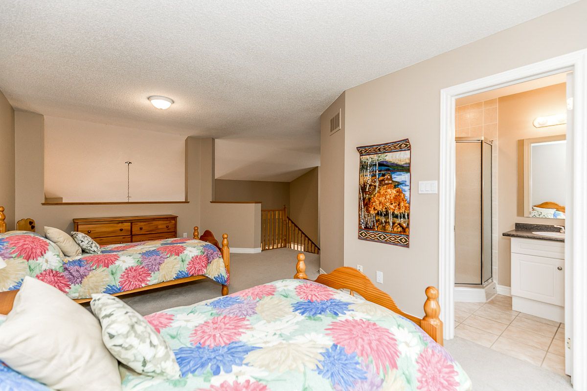 Backing on to the Golf Course! Walk-out basement! 2800 sq ft living space! Cathedral ceiling! Active adult lifestyle! Lawn & gardens done for you! Main floor primary bedroom with en-suite! 2 gas fireplaces! Hardwood floors! Inside & outside doors to the garage! Spacious upper loft with en-suite, perfect for the grandkids when they visit. Entertaining lower level has patio doors leading to the lovely covered patio with no one behind except trees and golf greens, bright bedroom suite, office & plenty of storage. Located in the picture perfect adult community of Briar Hill and less than 1 hour to Toronto & cottage country. Amenities close by are golf, walking trails, gym, pool, racquetball, activity centre, shopping & restaurants.