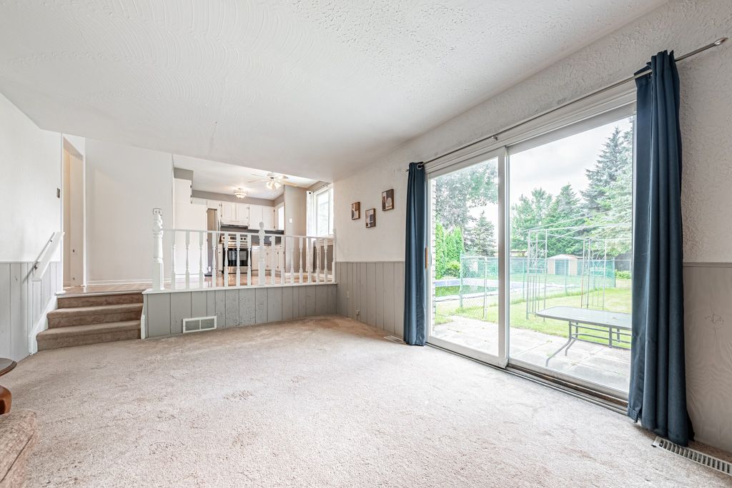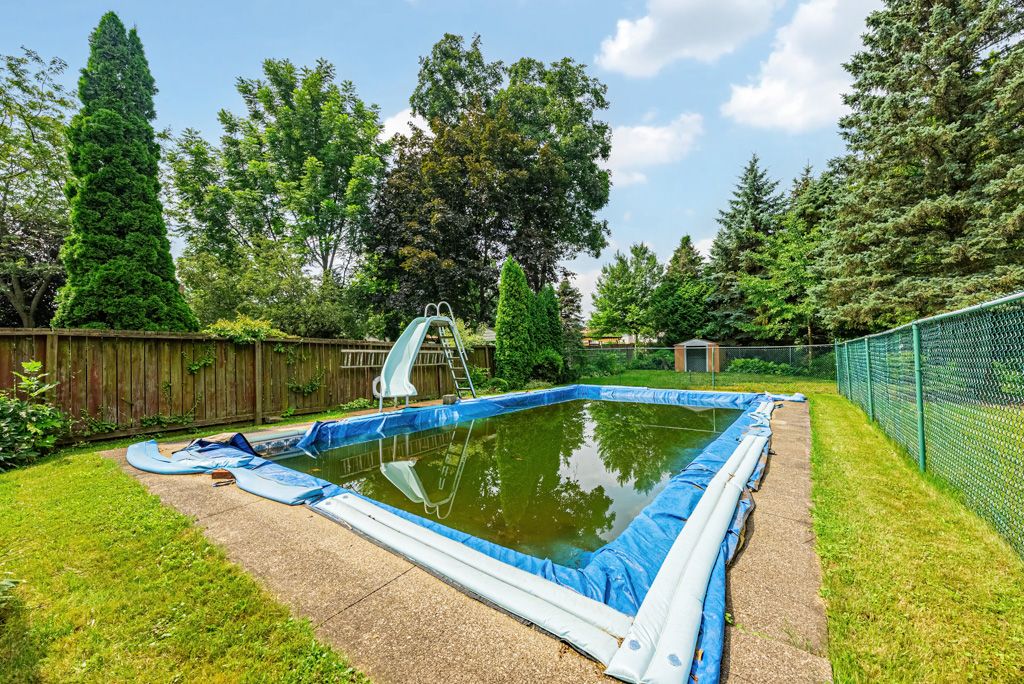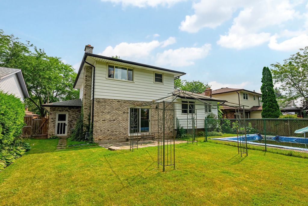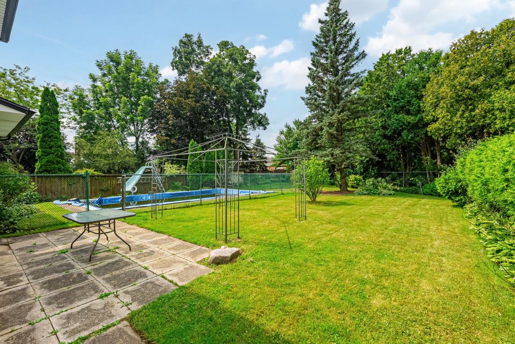 Introducing your ideal family abode in a sought-after locale with stellar schools and a cozy community vibe. This dwelling offers a living space of 2000+ sq ft for your clan's comfort. Set on a generous lot, the property boasts an expansive yard that's an entertainment haven. Bask in the inground pool's allure on endless summer days, crafting cherished memories. Step indoors and be greeted by the sun-soaked living room, aglow with a bay window's charm. The dining room exudes sophistication via wainscoting, ideal for gatherings. The heart of the home is its updated kitchen, complete with a snug dinette. Progress a few steps to the family room, featuring a rustic brick fireplace. Open the doors to a walkout, bridging indoor and outdoor realms, leading to a serene treed backyard. Main floor laundry adds ease to daily routines. Ascend to the second tier, where three commodious bedrooms await, promising family retreats. A stylish 4-piece bathroom graces this level.The lower level offer an extra bedroom for guests or an office. A 3-piece bathroom and spacious rec room.. Seize the chance to add a little TLC and make it your forever haven.