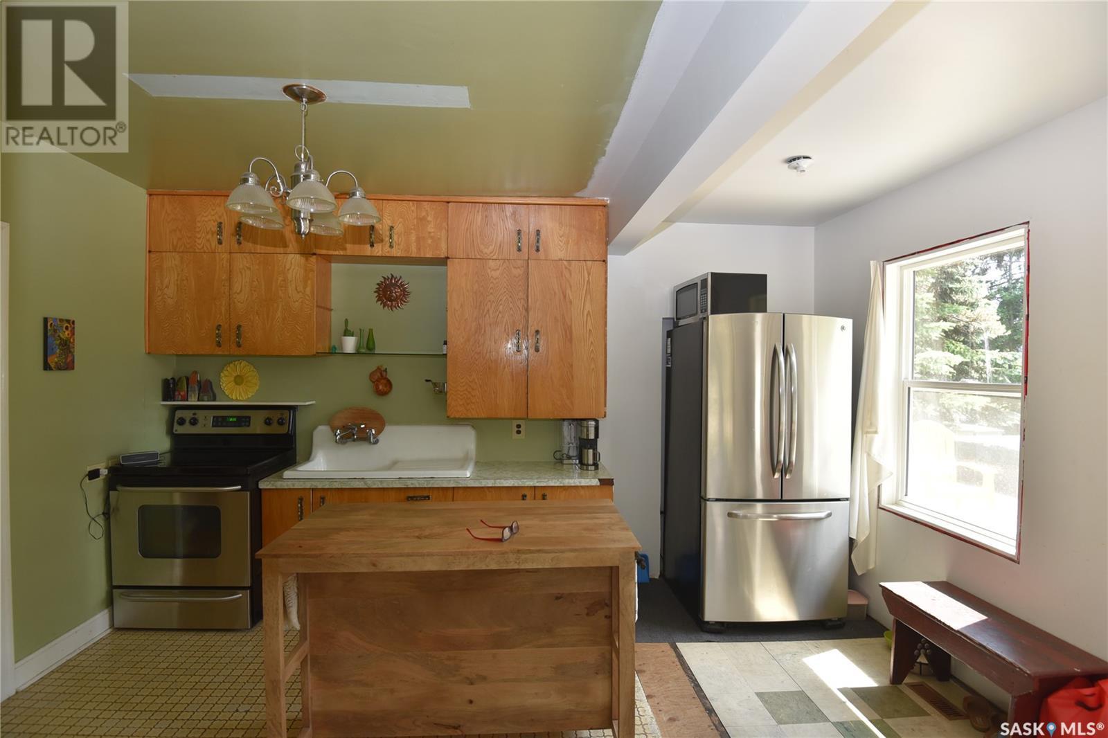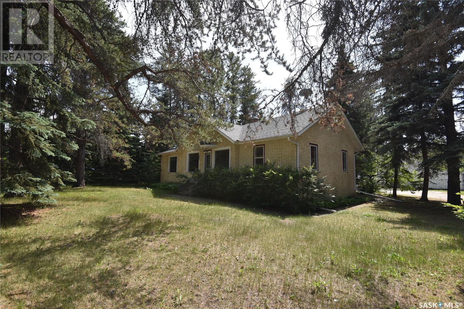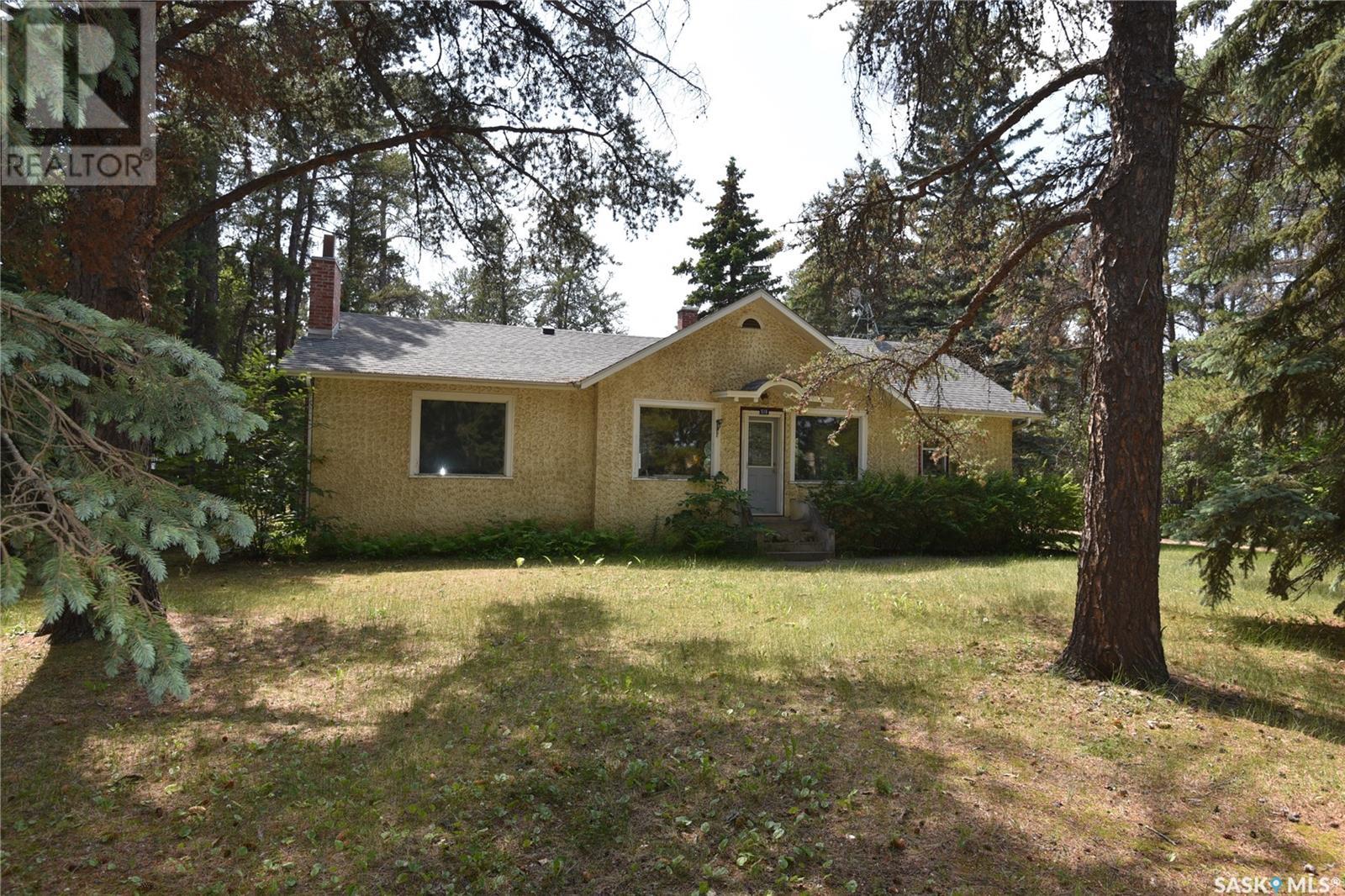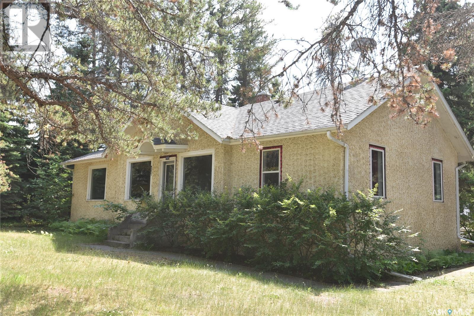 Rare Indeed! Heritage home on a one acre lot in the heart of Nipawin. While well preserved this home offers the right buyer the opportunity to blend old world charm with modern renovations. Within the boundaries of the 1252 sq. ft. bungalow you will find 3 bedrooms on the main, kitchen, formal dining, living room and a 4 piece bath. The partially developed basement features a second bath and laundry room combined and a family room. There is plenty of undeveloped space to finish as you like. There are patio doors off the master bedroom leading to a large deck with a hot tub. For those of you that enjoy gardening and outdoor spaces, then look no further. There is a double garage with an attached lean-to for cars and storage. Comes with fridge, stove, washer and dryer. Call today and start your next chapter. (id:22211)