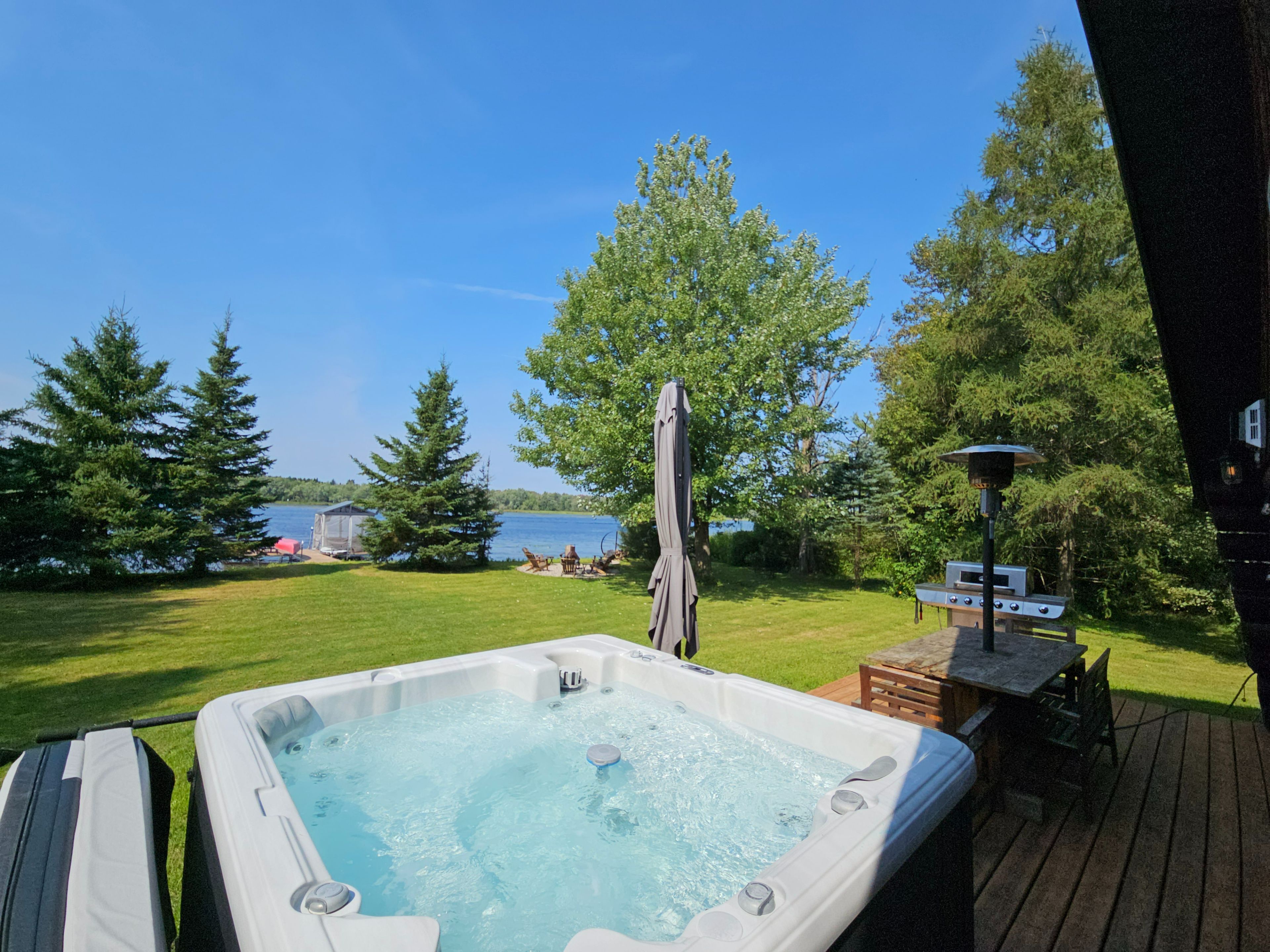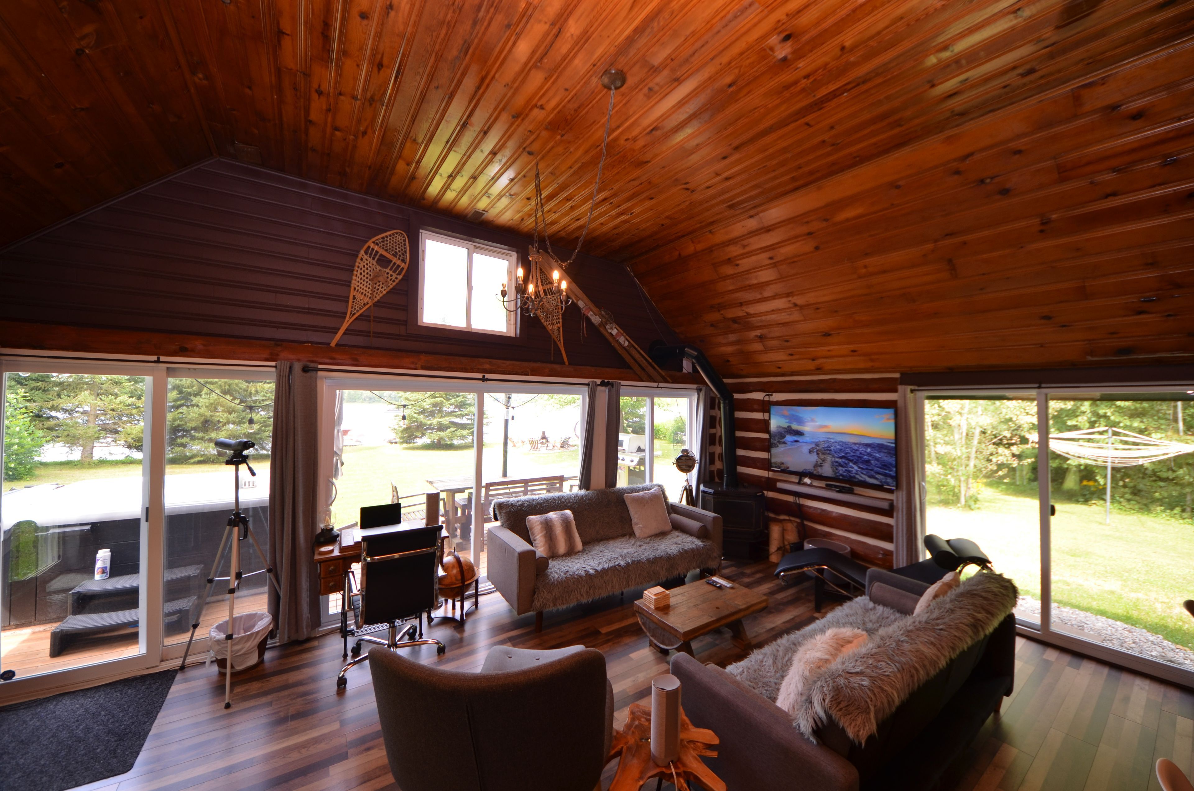 120' OF WATERFRONT PRIVACY - Once in a lifetime opportunity to own this fully renovated, year round, fully furnished, turn key log house located on the Long Reach stretch of the Rideau River. This property is tucked away in a park with no direct neighbours, surrounded by crown land, at the end of a country lane. Enjoy magical sunsets of the northwest facing view across from Rideau River Provincial Park. High speed internet. House was built in 1984 and has been extensively renovated. Exterior re-stained (2024) state of the art heat pump and furnace with central A/C (2024), Scandinavian design kitchen with quartz countertops (2024), 2 new sliding glass doors and bedroom window (2024), flooring, light fixtures, and full bathroom renovation (2020). Hot tub (2020), Dock (2020), Roof (2015). All electrical brought up to code with ESA certificate (2020), no aluminum wiring or knob and tube, No UFFI insulation, no asbestos. Only a 9 minute drive to downtown Kemptville with shopping, restaurants, and 30 minute drive to Ottawa. 10 minute drive to 2 golf courses. Safe waterfront with a sandy bottom and gradual slope, perfect for swimming and docking your boat. You own the shoreline rights rights up to the water's edge. Located on the "long reach" section of the Rideau River which has over 40 kilometers of the longest lock-free stretch of the entire historic Rideau Canal Waterway. Take your boat and stop for dinner or lunch along the many dining options on the river. House has never flooded. House is primary residence and as such not subject to HST. Currently rented part time on Airbnb mostly on weekends, earning over $70,000 in 2024 (financials available). Full property and septic pre-Inspection report from 2024 available for review. House is being sold fully furnished with designer furniture. Utility costs: Electricity: $239/month, Gas: $225/month, Snow Removal: $250/month, Septic pumping $500 yearly.