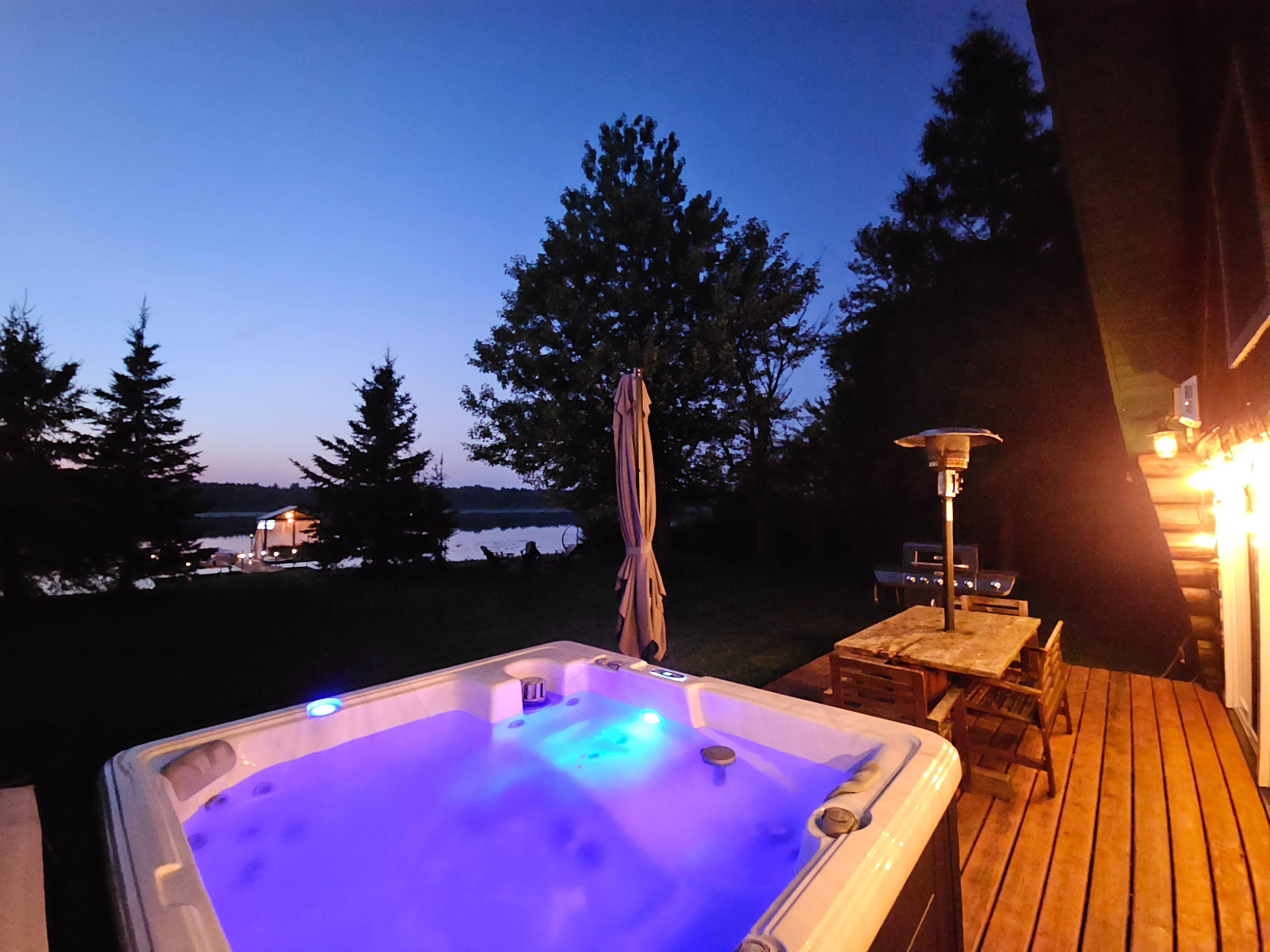 Exterior FeaturesDeck,Hot Tub,Lighting,Privacy,Year Round Living,Landscape Lighting,Landscaped,Recreational Area