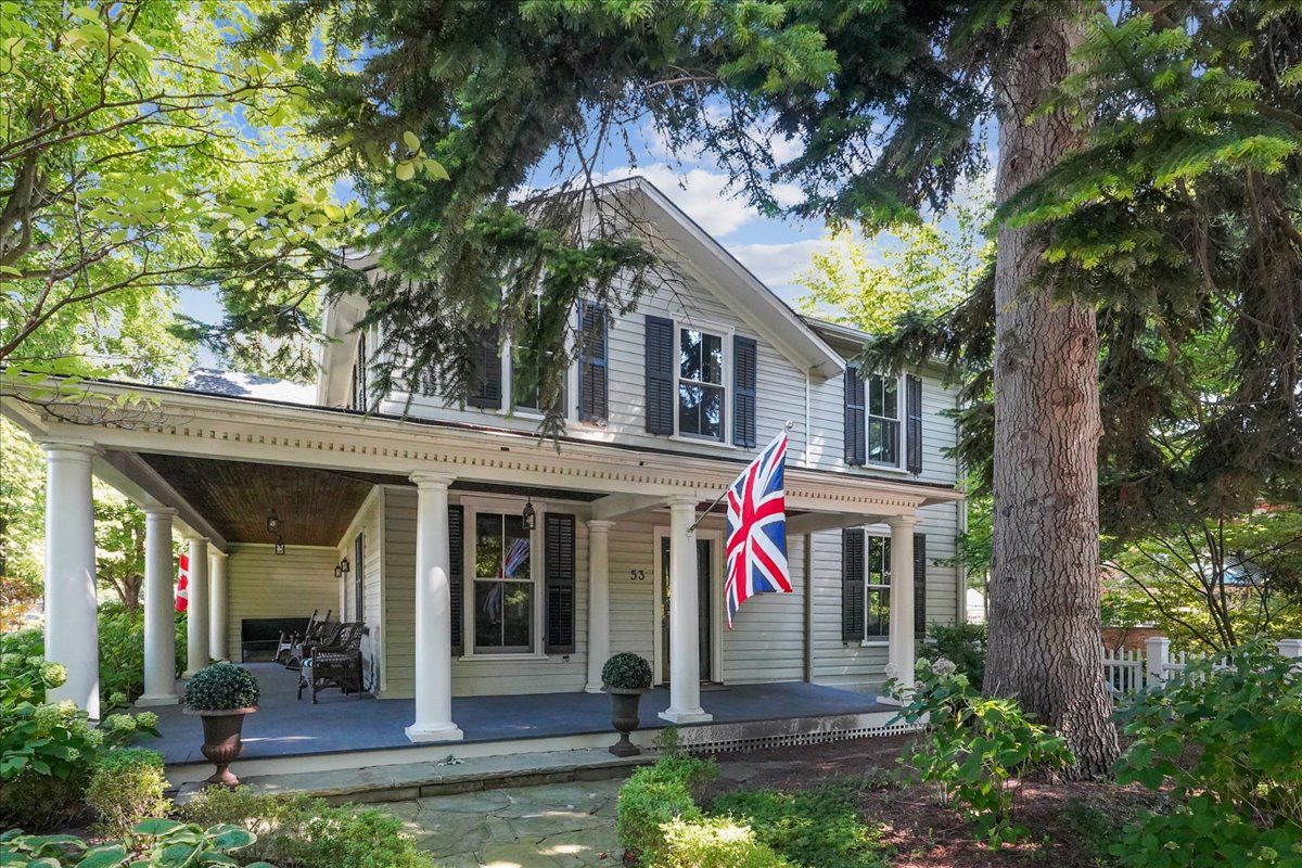 Come experience the charm and character of one of Oakvilles finest historic homes. With over 5,100 sqft of finished living space and extensive renovations with the highest quality materials this home welcomes todays modern family. The wrap-around covered porch is a perfect place to enjoy a morning coffee and offers a welcoming entrance to the home. Greet your guests in the spacious foyer. Natural light floods into the main floor office with custom built-ins. The dining room with a gas fireplace & french door is perfect for a formal dinner. The Gren Weis designed 2-storey addition makes up the heart of the home with the open concept kitchen, breakfast & living rooms. A large center island with prep space & additional seating makes this modern kitchen the hub of the home. Added features include 9 ft beamed ceilings, woodburning fireplace and expansive windows bringing the outdoors in. A unique family room space with heated stone floors, gas fireplace and floor to ceiling windows which can easily convert to screens in the summer months. A side entrance into the mud room and 2pc bathroom add to the functionality of the main level. Upstairs, a charming primary bedroom suite is enhanced with a beamed ceiling, fireplace & sitting area, 5pc ensuite, and walk-in closet. A 2nd bedroom with walk-in closet and adjacent sitting room/office offers a special retreat. Three additional bedrooms and renovated 4pc bathroom with heated floors & glass shower complete this level. The finished lower level has a spacious rec room with gas fireplace and wall of built-in storage, a laundry room, pantry with built-in shelving and storage room. An extensively landscaped garden, with stone walkways & patio sets the stage for outdoor entertaining. A coveted detached 2 car garage & double driveway is the envy of the neighbourhood. Only a stroll from Lake Ontario or Oakvilles shops & fine restaurants, dont miss the chance to make 53 Dunn St your familys next home.