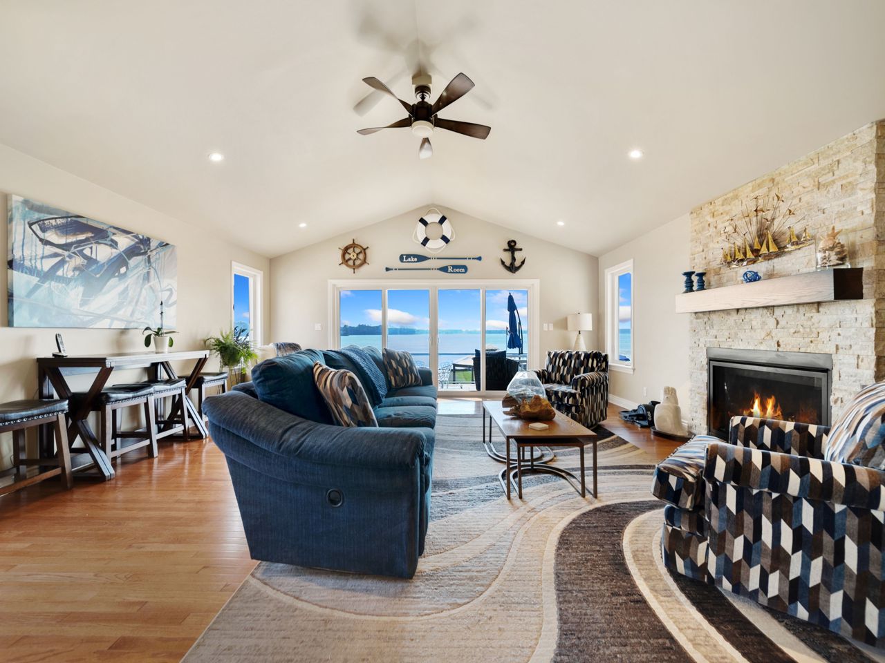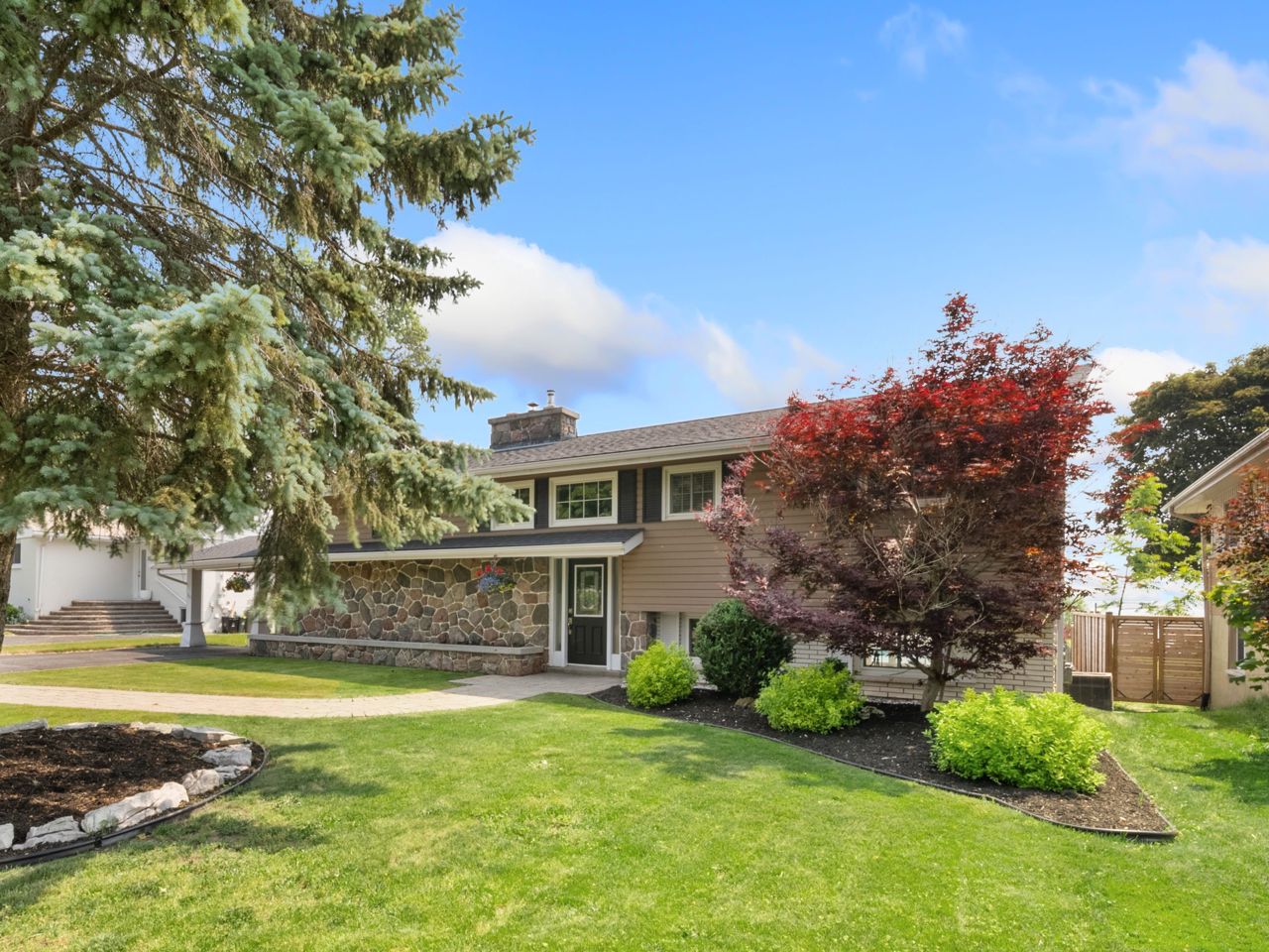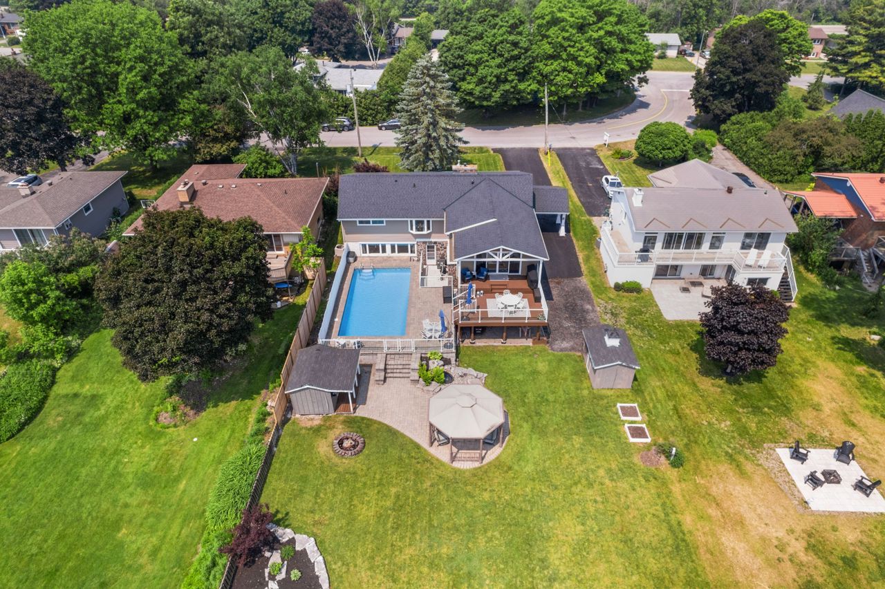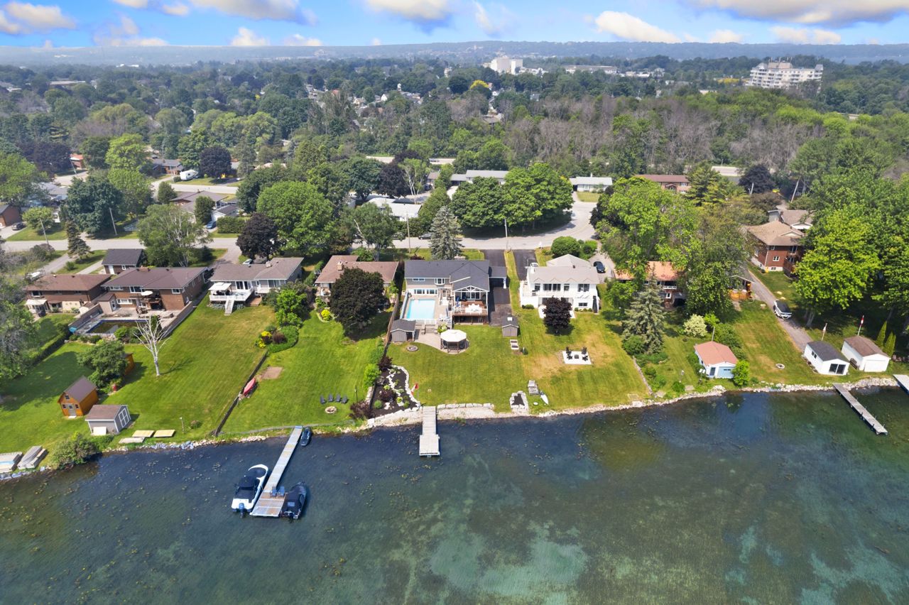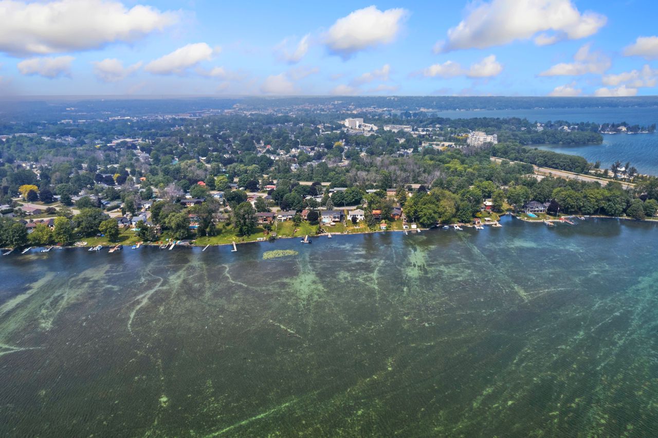 This stunning property boasts 76 feet of prime water frontage, offering breathtaking views and a serene retreat for those seeking the perfect balance of luxury and tranquility. Inside you'll find hardwood floors a bright and spacious living/dining room and a spectacular kitchen. The master suite features windows that frame the sparkling lake vistas while the great room features a wall of windows a gas fireplace and more picturesque views of the water. The lower level has large rec room bathroom and walkout to a pool. The composite decking off the great room provides an additional low-maintenance space to relax and soak up the sun while a gazebo adds an extra touch of elegance to the outdoor space. The 25+ feet of docking provide easy access to boating and water sports and the 16x32 pool adds even more entertaining and outdoor activities to this already impressive property. The in-ground sprinkler system ensures that the lush landscaping remains vibrant year-round with minimal effort.