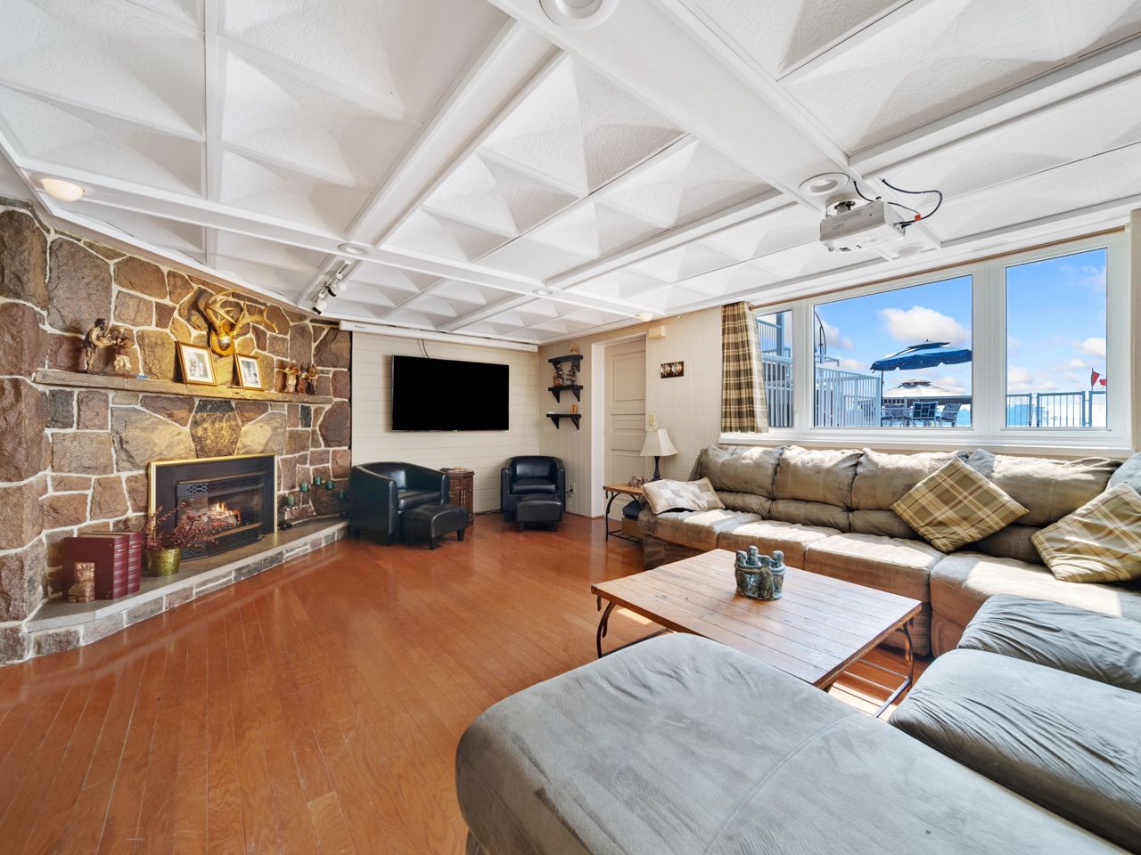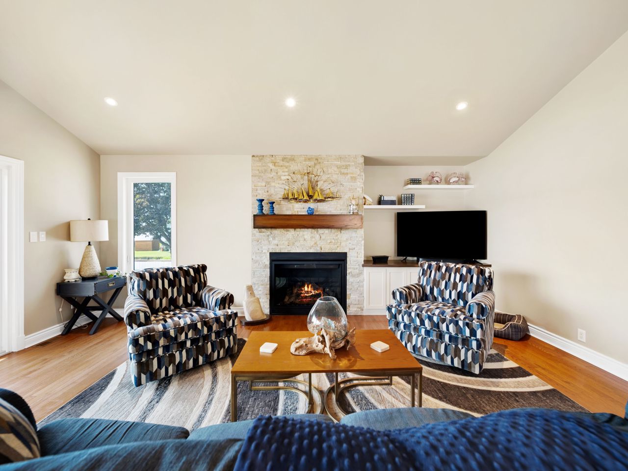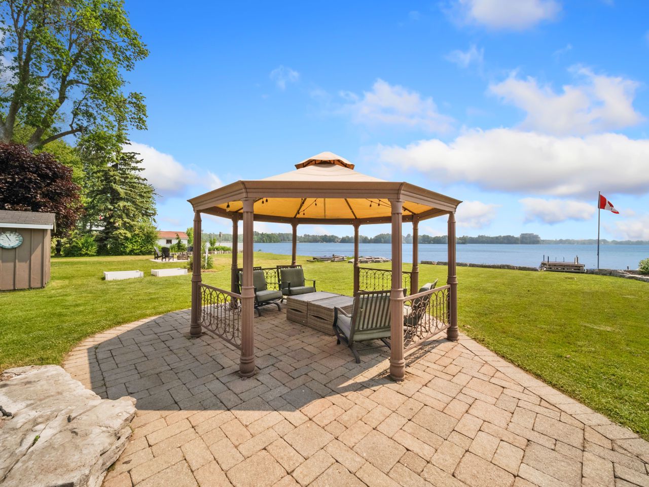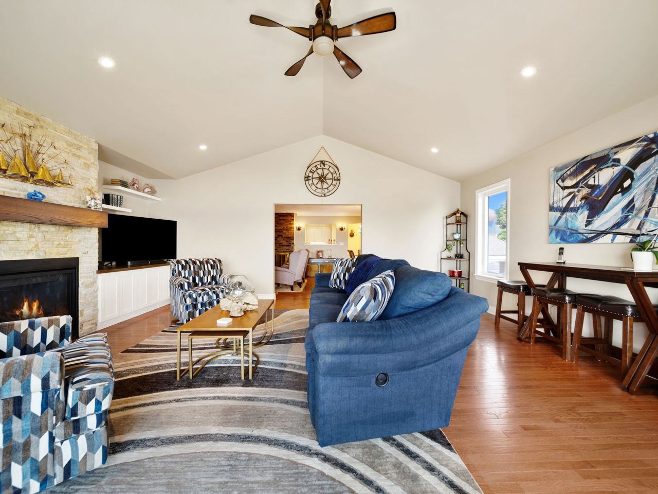 This stunning property boasts 76 feet of prime water frontage, offering breathtaking views and a serene retreat for those seeking the perfect balance of luxury and tranquility. Inside you'll find hardwood floors a bright and spacious living/dining room and a spectacular kitchen. The master suite features windows that frame the sparkling lake vistas while the great room features a wall of windows a gas fireplace and more picturesque views of the water. The lower level has large rec room bathroom and walkout to a pool. The composite decking off the great room provides an additional low-maintenance space to relax and soak up the sun while a gazebo adds an extra touch of elegance to the outdoor space. The 25+ feet of docking provide easy access to boating and water sports and the 16x32 pool adds even more entertaining and outdoor activities to this already impressive property. The in-ground sprinkler system ensures that the lush landscaping remains vibrant year-round with minimal effort.