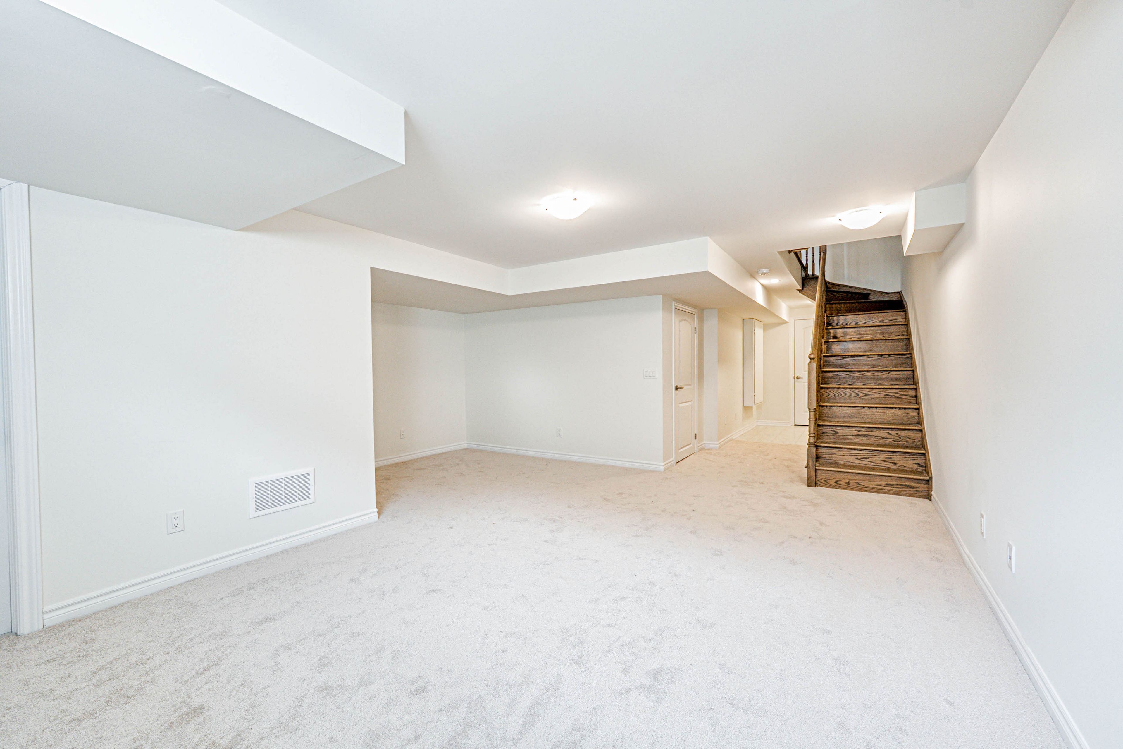 楼上主卧配备男女主人独立步入式衣帽间及便捷三件套浴室。室内直通车库的便利设计、车库顶部加装隔热层提升能源效率,以及预装电动车充电线路(满足未来需求)更显贴心。完工地下室设有多功能娱乐室,可轻松改造为家庭活动区、办公室或家庭健身房。