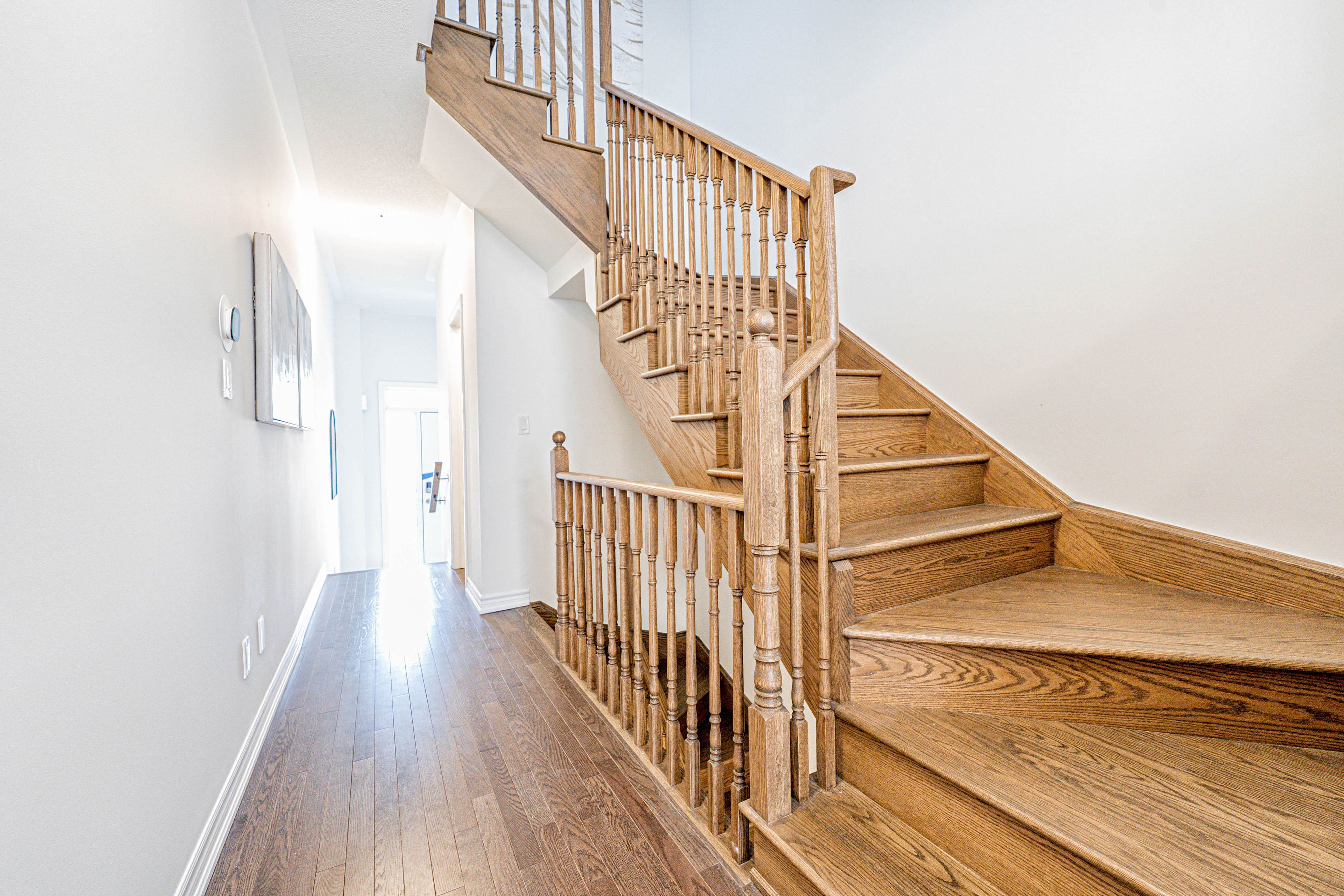 Your Dream Home Awaits! Step Into This Beautifully Upgraded 1992 Sqft Freehold Townhome Where Style, Comfort, And Convenience Come Together Effortlessly With The Bonus Of No Sidewalk To Shovel! From The Moment You Step Inside, Upgraded Tiles In The Front Foyer, A Striking Oak Staircase, And Rich Hardwood Floors On The Main Level Set An Elegant Tone. The Open-Concept Kitchen Offers A Practical Breakfast Bar, Stainless Steel Appliances, And A Walkout To A Spacious Deck From The Breakfast Area Perfect For Morning Coffee Or Barbecues. The Cozy Living/Dining Room With A Built-In Fireplace Provides A Welcoming Space For Relaxation And Entertainment. Upstairs, The Prime Bedroom Features His & Hers Walk-In Closets And A Convenient 3-Piece Ensuite Bathroom. You'll Also Appreciate The Direct Access To The Garage From Inside The Home, Along With Extra Overhead Insulation Above The Garage For Better Energy Efficiency And An EV Charging Rough-In Ready To Meet Your Future Needs. The Finished Basement Adds Extra Living Space With A Versatile Rec Room, Ideal For A Family Room, Office, Or Home Gym. Located Close To Hwy 407, Shopping, Restaurants, Schools, Parks, Trails, Durham College, & Much More. Don't Miss The Opportunity To Call This Exceptional Home Yours! *EXTRAS* S/S Fridge, S/S Stove, S/S Range Hood, S/S Dishwasher, Washer/Dryer & All Light Fixtures. Tankless Water Heater Is Rental.