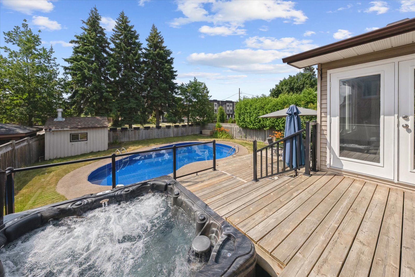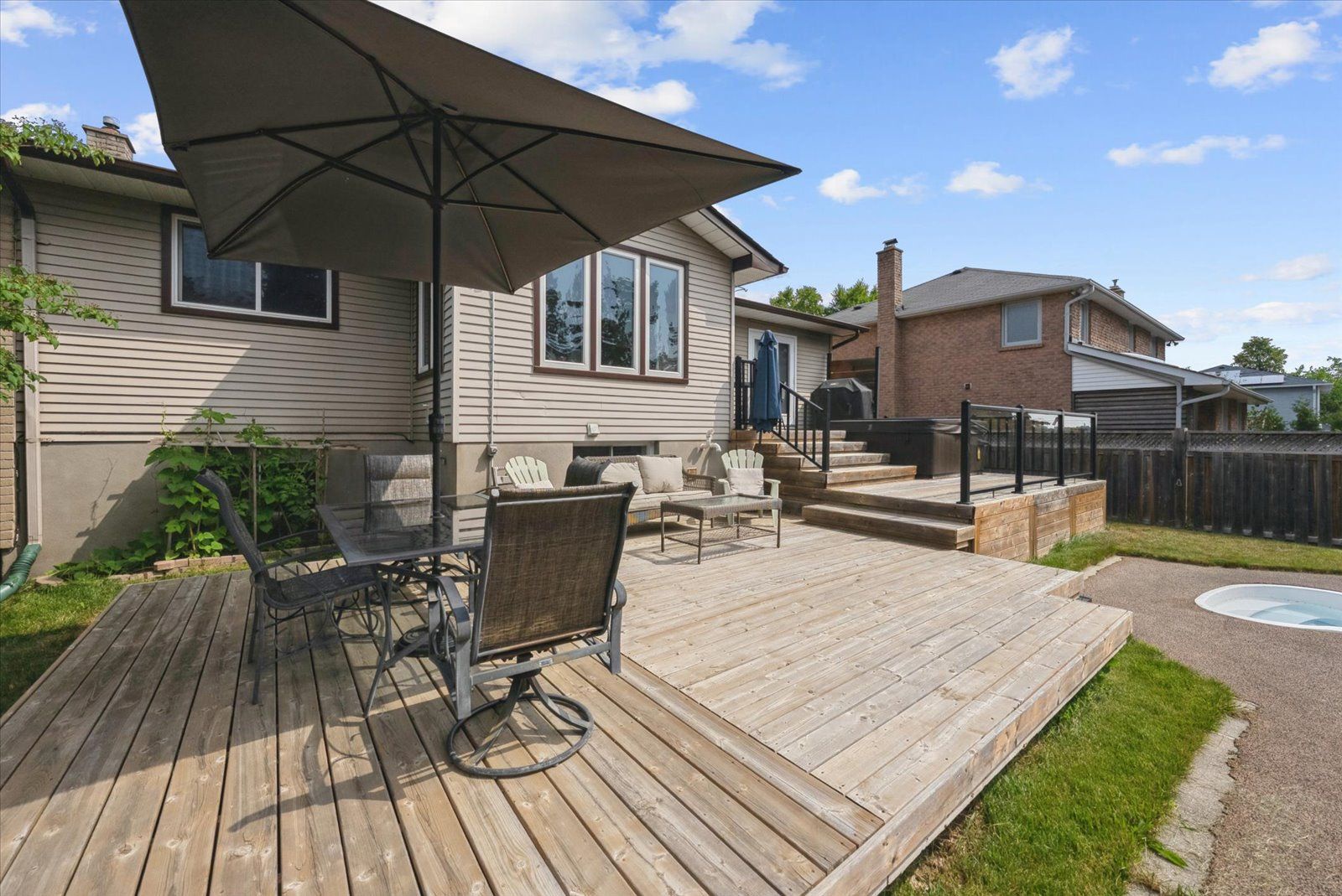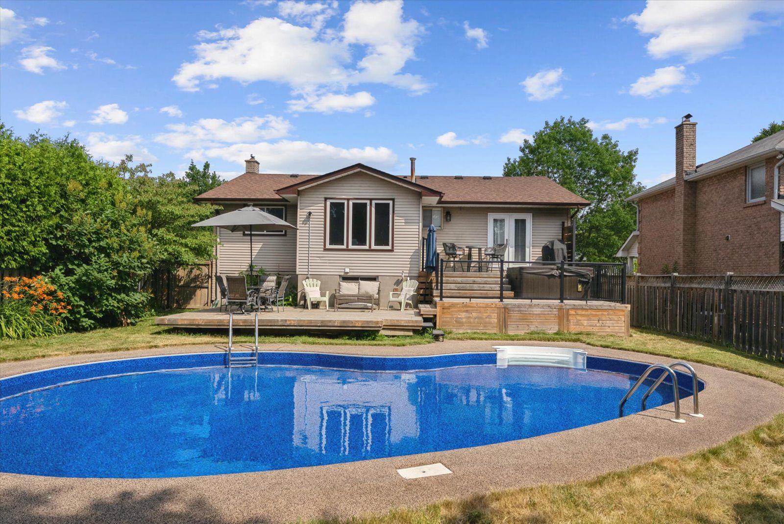 Welcome to 677 Whistler Drive, where Comfort meets Style. Perfectly positioned on the Whitby/Oshawa border, this beautifully updated raised bungalow offers exceptional living inside and out. Step into a sun-filled, open concept main floor featuring gleaming hardwood floors and a designer chef's kitchen complete with stainless steel appliances, quartz countertops, a striking 10 ft waterfall island, and modern finishes throughout. The spacious living and dining areas flow seamlessly, creating the perfect space for relaxing or entertaining. The Primary bedroom offers a private retreat with ensuite and a oversized walk-in closet, and direct access to the deck overlooking the sparkling pool. The fully finished lower level includes a bright & cozy family room, a generously sized bedroom a 2 piece bathroom, laundry room and garage access. This oversized double car garage provides ample storage. The expansive backyard is an entertainer's dream. Perfect for or spending time with family and friends. The pool, hot tub, deck and patio provide ample space to relax and unwind. Nestled on a quiet, family friendly street this home is minutes from the 401/407, top rated schools, parks, and shopping. Major updates include: Brand new pool liner- June 2025. Hot water tank 2024 Furnace and Central air 2023 Roof shingles 2018