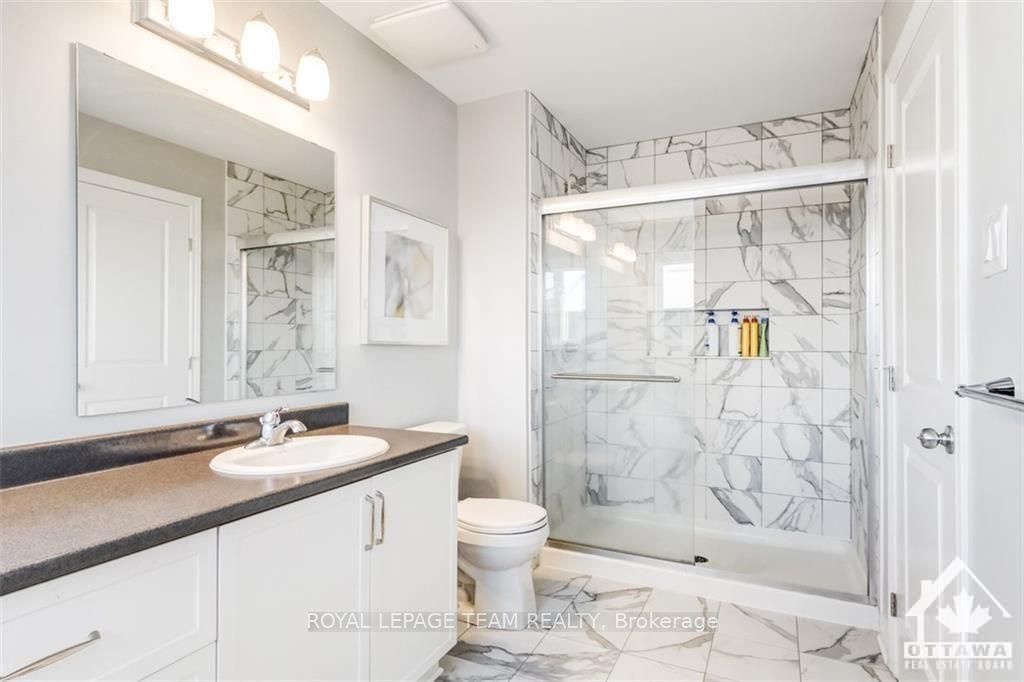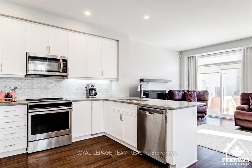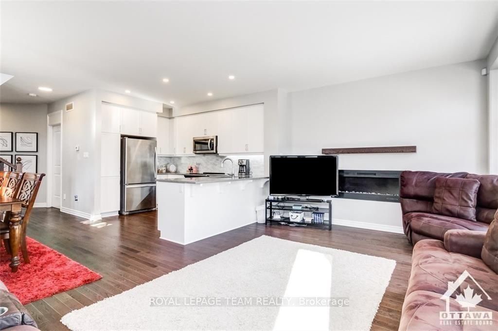 Impeccably maintained, move-in ready, 3 bed, 3 bath, single family home in the heart of Stittsville/Kanata! The main floor offers open concept living with hardwood floors, beautiful kitchen with loads of cupboards and counter space, tile backsplash and stainless steel appliances, a mud room area with access to the garage, powder room and electric fireplace. Upstairs you are graced with a spacious primary bedroom with walk-in closet and ensuite bath, 2 additional bedrooms, a loft, main bath, and laundry room. The home offers 3 thermostats to customize your comfort on all floors, a solar panel on the roof to minimize utility costs and interlock widened driveway. The fully finished basement offers a huge rec room, office and storage with large windows allowing natural light throughout the day. Run, play, and relax in your fully fenced backyard! Ideal neighbourhood for families, conveniently situated close to shopping, transit, highway, schools and parks.