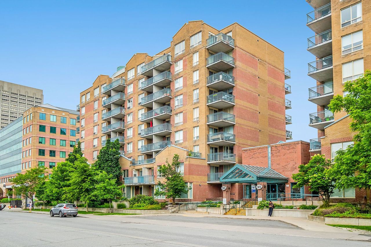 Welcome to this updated & move-in ready 1 bedroom + den condo with an amazing 85 Transit-Score, 98 Walk-Score & 99 Bike-Score! Located within walking distance to the Ottawa River, multiple parks, public transit (including the Tunney's LRT station), all the shops & trendy restaurants on Wellington St, the Parkdale Public Market and the Civic Hospital. Stepping in to the condo you find a bright & open-concept floorplan with a refreshed kitchen that features Stainless Steel appliances, round sitting island and plenty of cabinet & counter space. Next to the kitchen is your wide living room that connects to your private balcony with beautiful city views. The spacious bedroom showcases double closets, a cheater door to the refreshed bathroom and French doors that connect to the den. This den is another bright space with city views that could be used as an office, guest area or gym. This condo also offers hardwood flooring throughout most the unit, convenient in-unit laundry, 1 underground parking space and 1 indoor storage locker. Your condo fees include all your monthly utilities! This pet-friendly building has a green-filled courtyard where you can go BBQ and spend time with friends and family this summer.