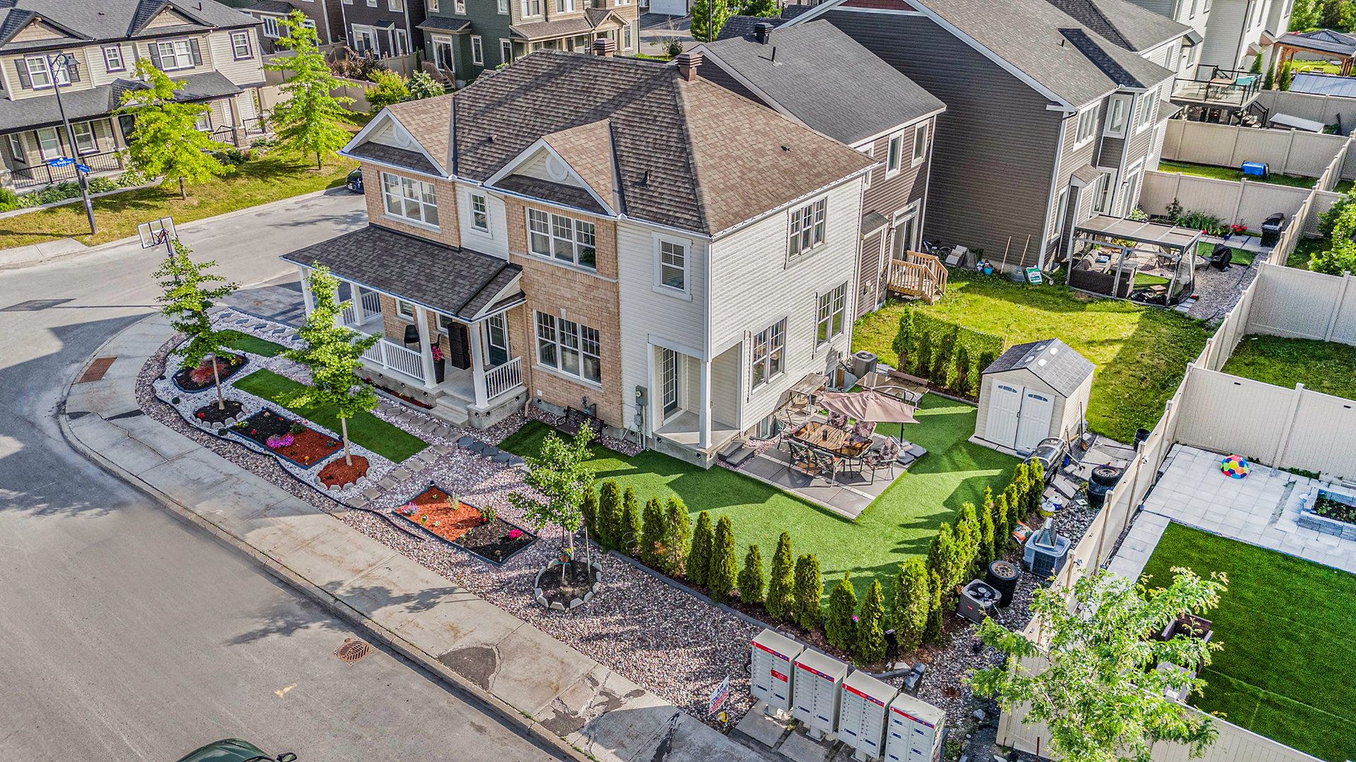 Luxury meets turnkey functionality in this stunning 2017-built home nestled on a premium corner lot in Kanatas sought-after Trailwest community. This impressive 5-bedroom, 4-bathroom home welcomes you with 9-foot ceilings and gleaming hardwood floors throughout the open-concept main level, creating a bright and airy atmosphere ideal for modern living. The fully permitted AirBnB unit OR in-law suite in the basement, insulated with SafenSound for privacy, generates an impressive $30,000 in annual income, offering a smart investment opportunity or mortgage offset providing you additional buying power. On the main level the gourmet kitchen, featuring sleek quartz countertops and ample cabinetry, seamlessly flows into the spacious living and dining areas, making it perfect for entertaining. The primary suite is a true retreat, complete with a walk-in closet and a spa-inspired ensuite bathroom, while a versatile 4th upstairs bedroom with a removable barn door can easily transform into a stylish loft or office. Outside, the professionally landscaped back & side yard boasts privacy hedges, a practical shed, and an interlock extended driveway for ample parking. With stone countertops throughout, energy-efficient design, and a prime location near top schools, parks, shopping, restaurants, and SO much more, 52 Oxalis Crescent is more than a homeits a lifestyle. Schedule your private tour today to experience this one of a kind home firsthand.