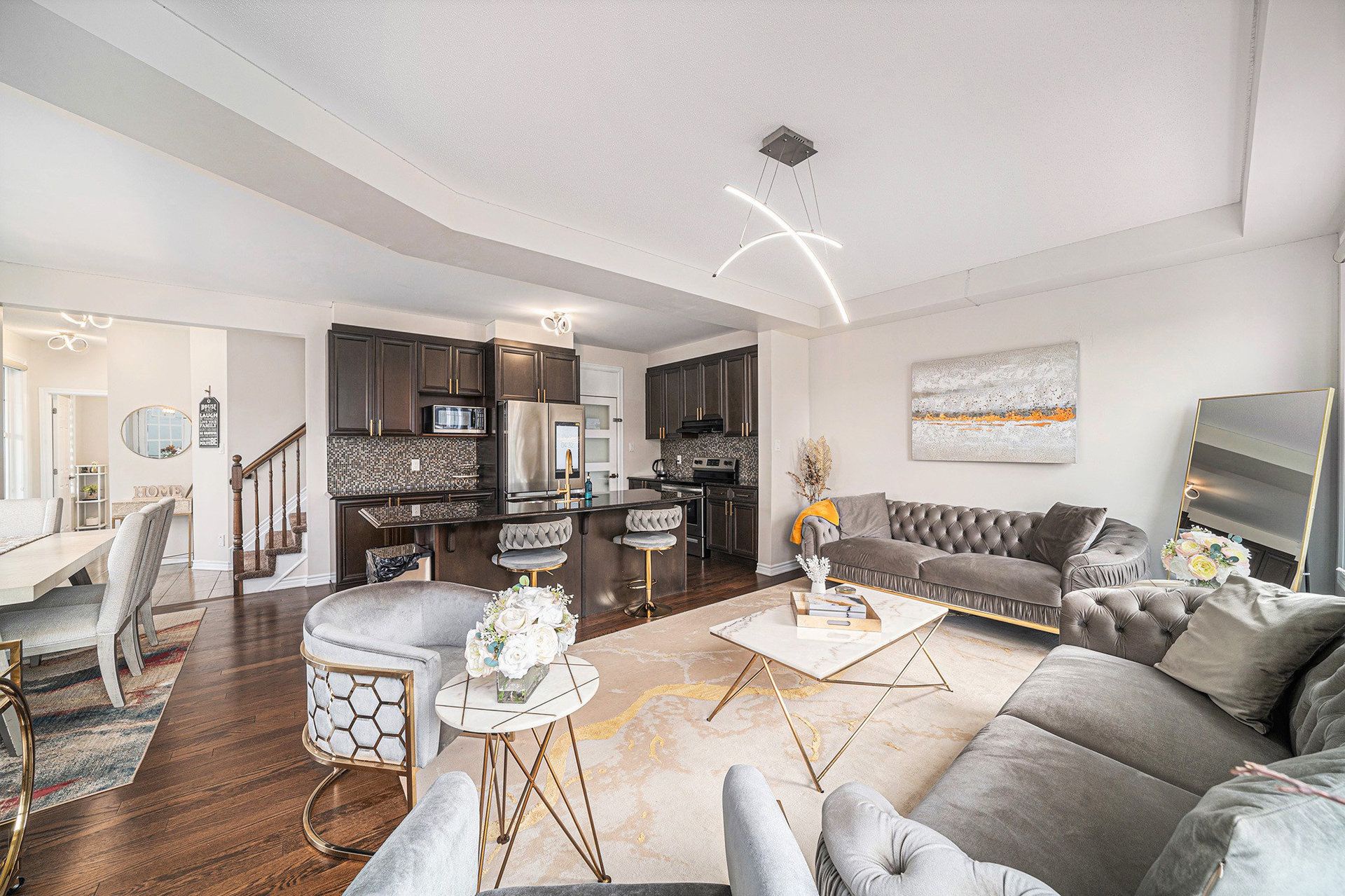 这栋建于2017年的豪华住宅坐落于Kanata备受追捧的Trailwest社区优质转角地块,完美融合高端品质与拎包入住的便捷性。这座拥有5间卧室、4间浴室的住宅以9英尺挑高天花板和通体锃亮的硬木地板迎接您,开放式主层格局营造出明亮通透的现代生活氛围。地下室经完全许可的AirBnB单元/姻亲套房采用SafenSound隔音系统保障隐私,年创收高达3万加元,既可作为精明投资又能减轻房贷压力,为您提供额外购买力。
