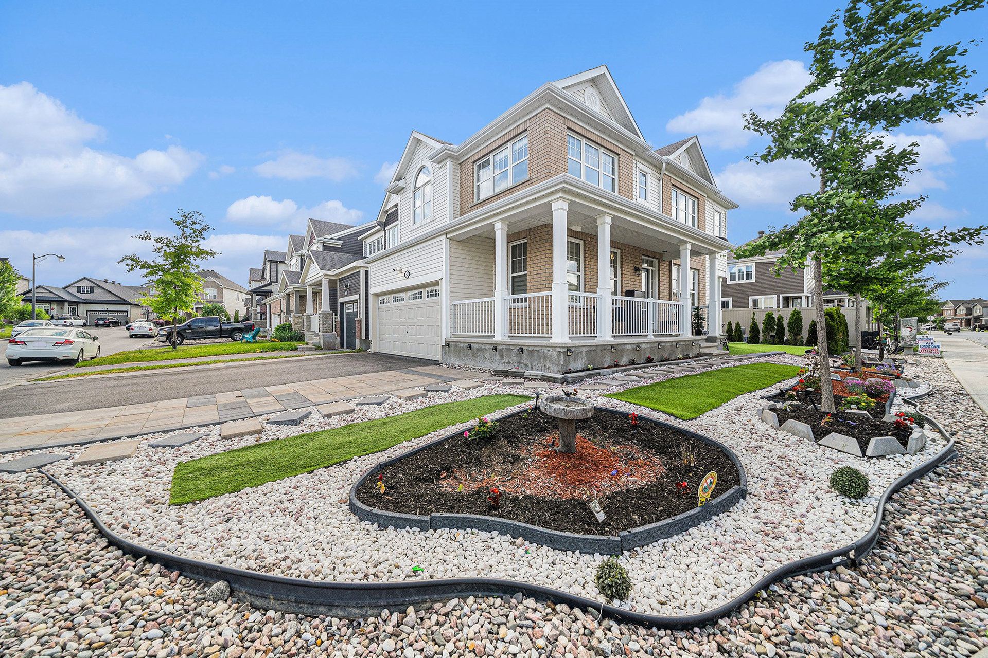 主层美食厨房配备光洁石英台面与充足橱柜,流畅衔接宽敞的客厅与餐厅区域,堪称娱乐待客的理想场所。主卧套房堪称私密圣所,内置步入式衣帽间和水疗风格套卫;而上层第四间卧室采用可拆卸谷仓门设计,可轻松变身为时尚阁楼或办公空间。专业景观设计的后院与侧院配有隐私树篱、实用储物棚,延伸砖砌车道提供充足停车位。