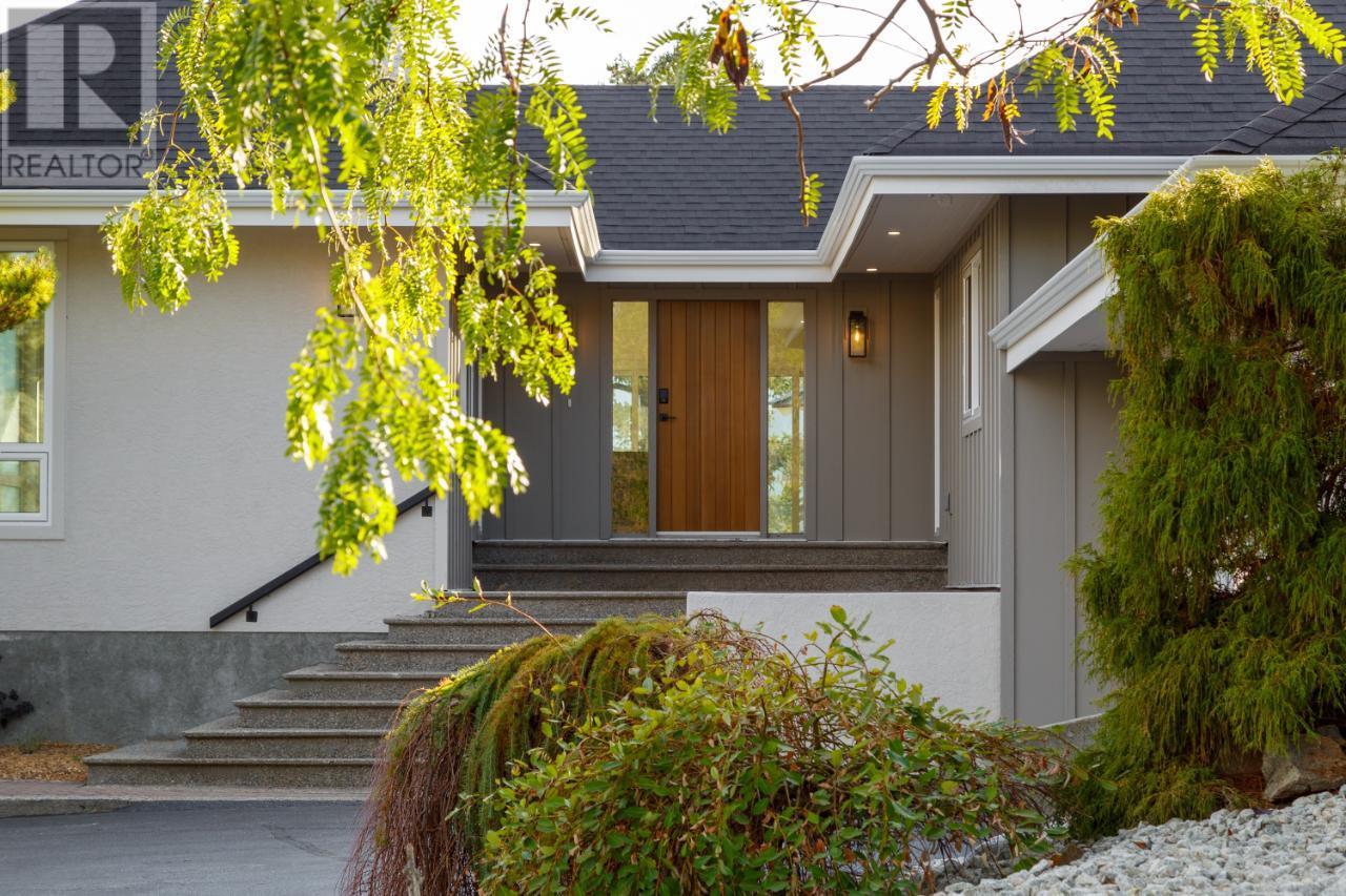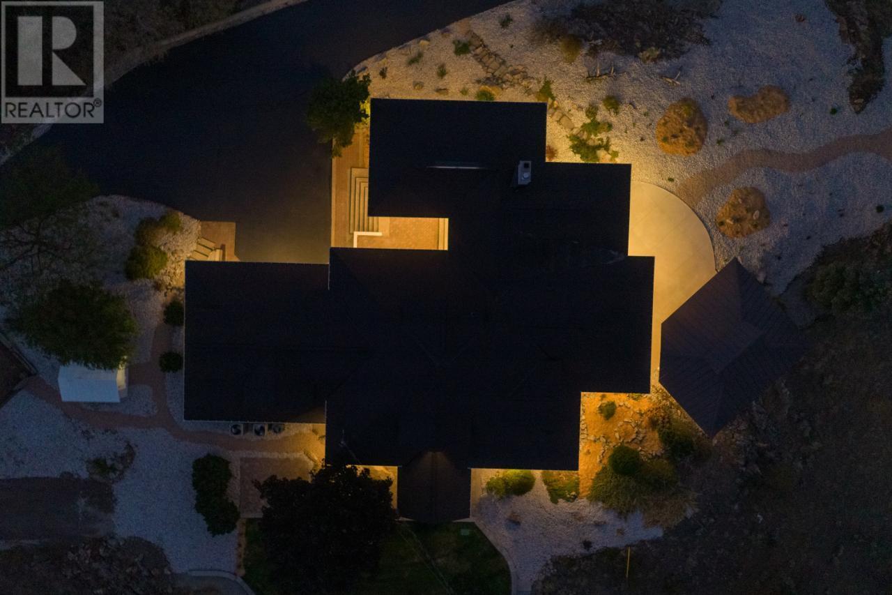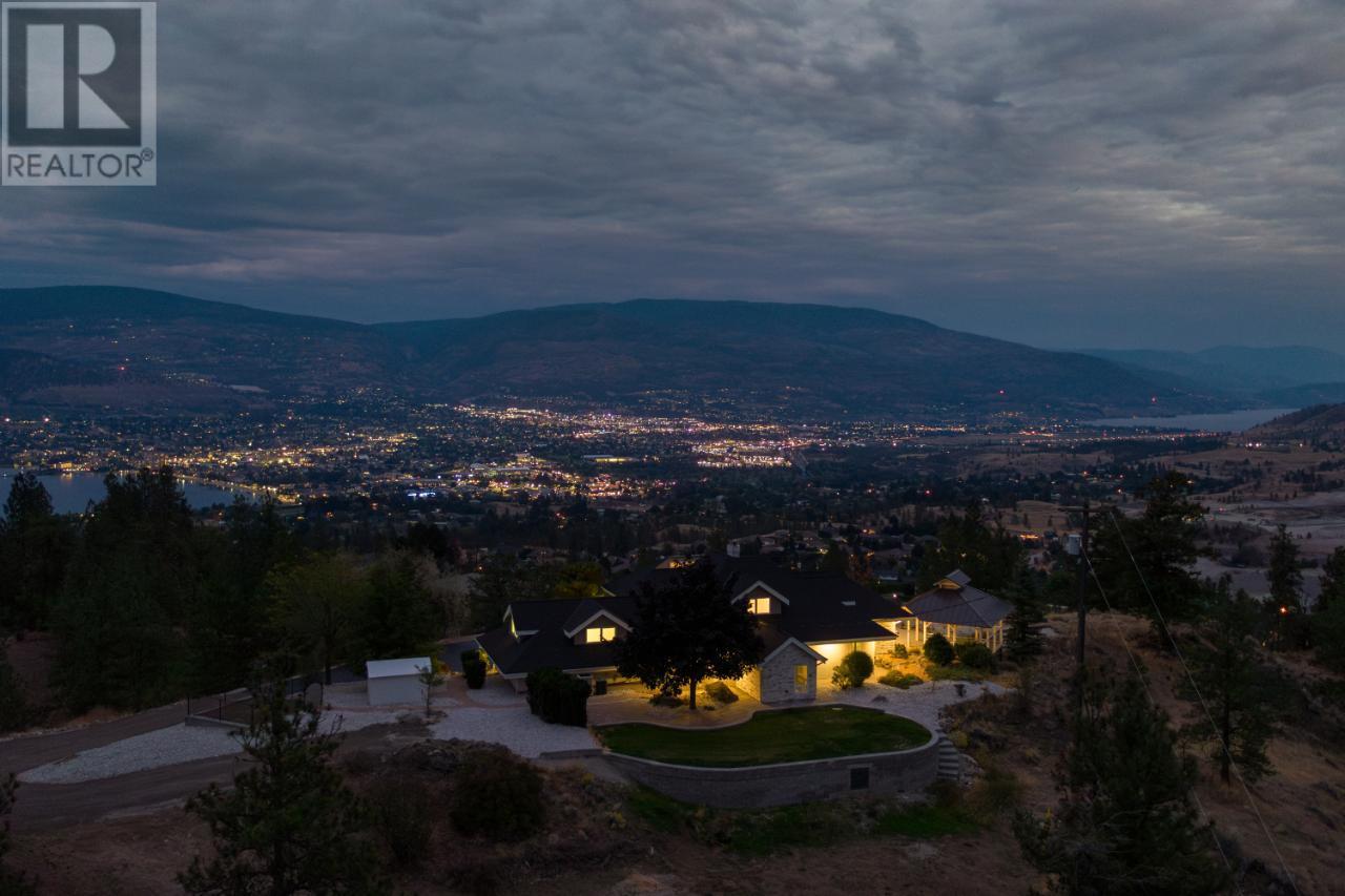 Introducing an extraordinary 4.75-acre private estate w/ stunning panoramic views of Lakes, City, & Valley. The 4128 sqft modernized residence boasts high-end finishes, including a sleek Bosch-equipped kitchen & espresso coffee bar. Updated bathrooms, new flooring, upgraded windows & brand-new roof enhance its appeal. Vaulted ceilings flood the family rooms w/ natural light, while a pellet stove fireplace & wood-burning stove provide warmth. The main floor features a luxurious master bedroom w/ a 6-piece en-suite, an office/bedroom, spacious laundry/mud room with a built-in shower for pets, & a 2-piece powder. Upstairs, two bedrooms share a modern 4-piece bathroom. Automated front gates, professional landscaping, & a sealed driveway add allure. Triple-car garage w/ epoxy flooring accommodates vehicles & toys. This private estate epitomizes luxurious living, located 3 min from West Bench Elementary School & 7 min from downtown. Don't miss this rare gem. (id:22211)