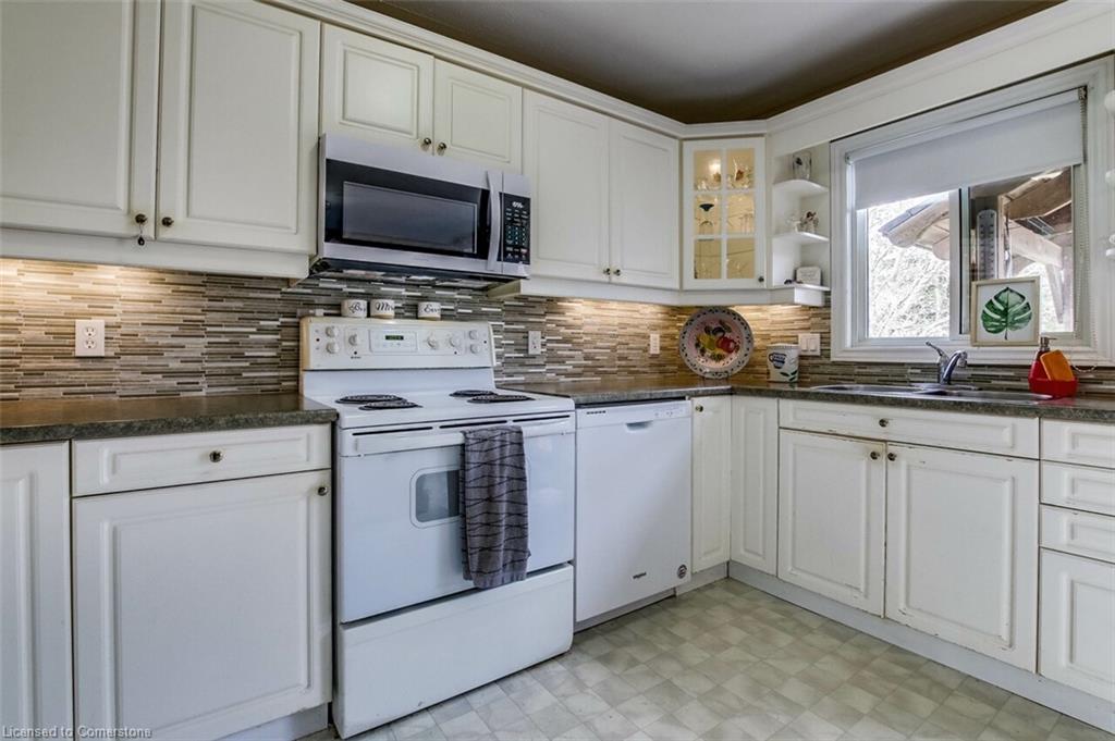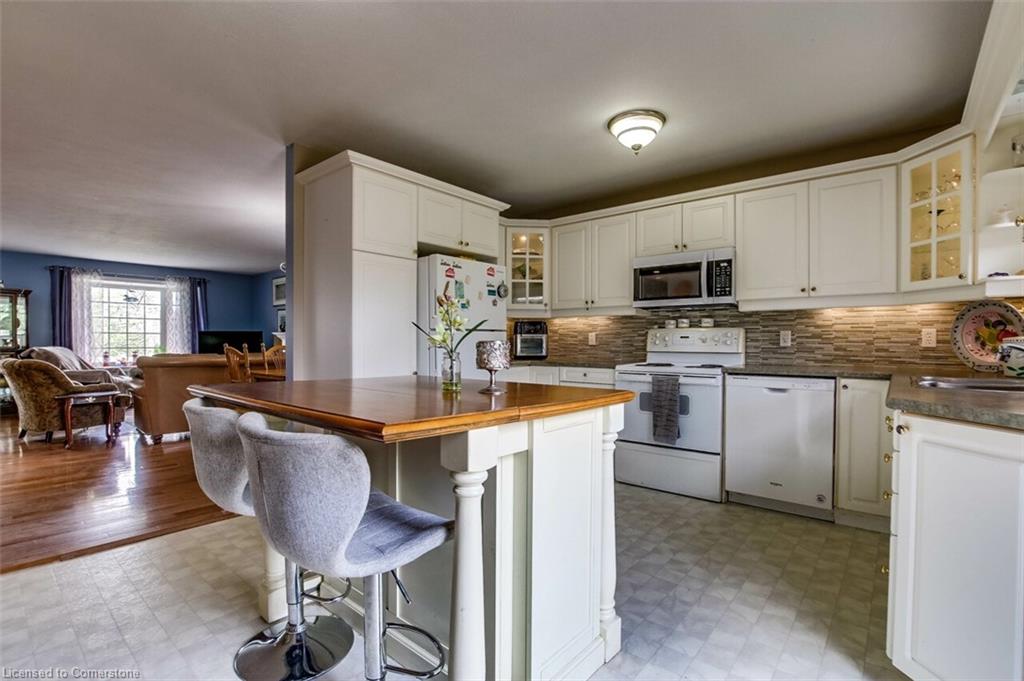 Welcome to this 2-bedroom bungalow, built in 2001 by local builder and ideally situated in a quiet Port Dover neighbourhood. This home boasts an inviting open-concept floor plan, perfect for both everyday living and entertaining. The spacious living room features a cozy natural gas fireplace, while the large kitchen offers ample cabinetry and patio doors leading to a private deck. The oversized main floor bathroom includes ensuite privileges and convenient main-floor laundry, making single-level living effortless. Downstairs, the finished basement offers a generous rec room, a 3-piece bathroom, and two versatile bonus rooms—perfect for a home office, guest space, or hobby area. Outside, enjoy the fully fenced backyard, a double car garage, and the peaceful bonus of no neighbours across the street—just serene views of forest area. Situated central to all Port Dover has to offer, this home is just a quick walk to shopping, cafes, theatre, and the lake.