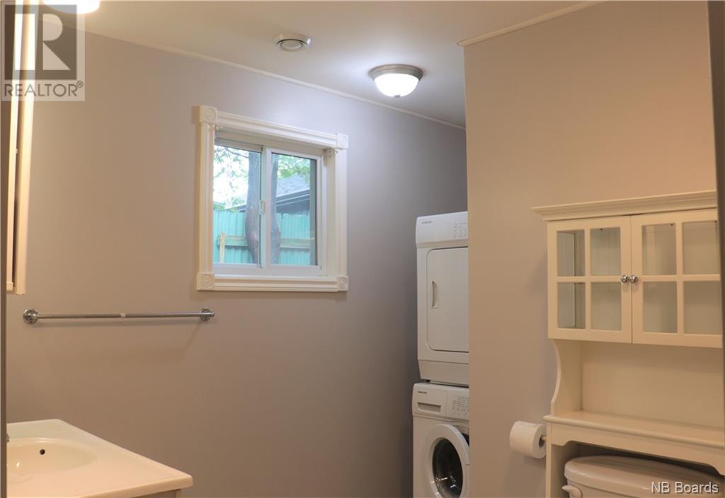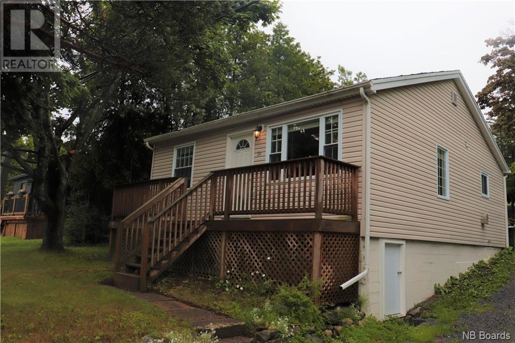 This low-maintenance, two bedroom bungalow is located just after the Vincent Road turn from Gondola Point Rd, what a beautiful drive if you commute to work in Saint John! The deep lot is lawned and shaded to the side by mature trees, ready for a play-set, vegetable gardens, or outdoor BBQ area. Up the steps at the front of the house, a charming deck spanning the full width is sized for a café set chairs and table. The front door leads into a spacious living room with hardwood floors and opens into the kitchen beyond. Toward the back of the house, a well-sized family kitchen features a central island for entertaining and views out to the back yard. Each bedroom has a built-in closet for storage, the large bathroom also accommodates the laundry, a stacked washer and dryer. Internal basement access near the back door leads down to more storage options. For easier access, the driveway wraps around to the back of the house, where a second deck allows for a casual entrance into the kitchen. Perfect for a first home, small family or someone looking to downsize to an independent property that is easy to manage. (id:22211)