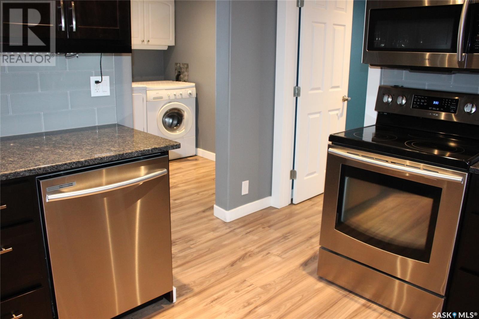 Welcome to a FABULOUS 2-bedroom, upgraded bungalow overflowing with natural light and upgrades! This 704 sq ft gem of a home offers everything a first-time homeowner would appreciate including a double detached garage, a gorgeous kitchen with granite counters, glass backsplash, solid cabinetry, and a stunning stainless steel appliance package. The open-concept dining & living room areas are bright with laminate floors, newer windows, neutral colors, & the space feels comfortable & functional. Two bedrooms on the main floor are both a good size. The full bath is certainly modern, spacious, & well-designed with double sinks, & plenty of storage! Completing the main floor is a mud room with washer/dryer included. Heading downstairs, the room could easily be used as a large bedroom (it does have a window & closet). A newer furnace, updated electrical & added spray foam insulation with work done in the basement makes this home truly move-in ready. The engineer's report is available. The home is situated on a sprawling 4309 sq ft double lot! A spectacular double garage with 220V and its own service panel is a great feature! Immediate possession is available. Other items worth noting: newer vinyl siding, nat. gas bbq line (BBQ can stay), and a friendly neighborhood surrounds this 1945-built bungalow. It is a must-see! Check it out! (id:22211)