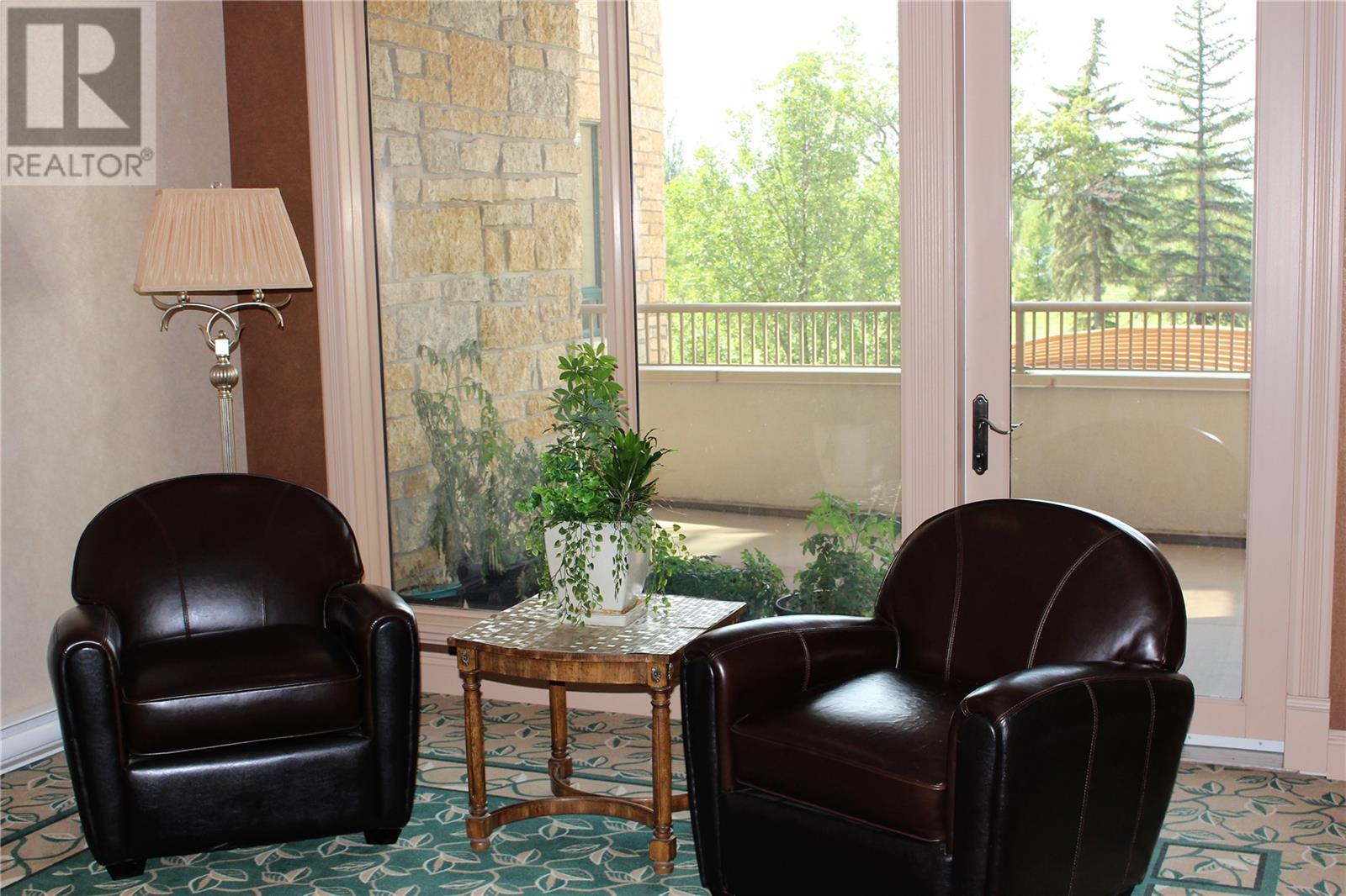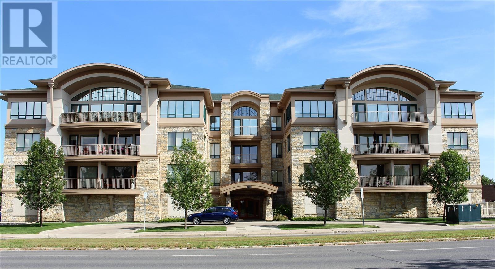 Welcome to this great 2nd floor west facing 1334 sq ft corner unit in Park Manor. This condo has recently been refreshed with new appliances, new paint & new light fixtures. It offers a nice open plan with 9 ft ceilings, crown mouldings & an abundance of beautiful natural light. Laminate floors flow throughout (except the bedrms which have carpet). The big welcoming entry area leads to a spacious living room with west & north facing windows (with a rough in gas line for a fireplace option). The dining area is perfect for entertaining with more west facing windows & access to the nice sized balcony (gas bbq hook up). The kitchen has plenty of counter space, a sit up breakfast bar & new stainless steel appliances (finger print resistant). There are 2 generous sized bedrooms. The master bedrm has 2 closets plus a 4pc ensuite. The 2nd bedroom has bright corner windows & a good sized closet. To complete this condo unit you will find a large laundry rm with storage space & a 2nd 4pc bath. This is not all though: 1 under ground heated parking spot with extra storage is included. This apartment style condo building is located in Hillsdale across from Wascana Park. There is an amenities room, elevator, exercise room, guest suite (available for rent) & visitor parking in the back. This is a wonderful opportunity to be a part of the prestigious Park Manor. Check it out today! (id:22211)