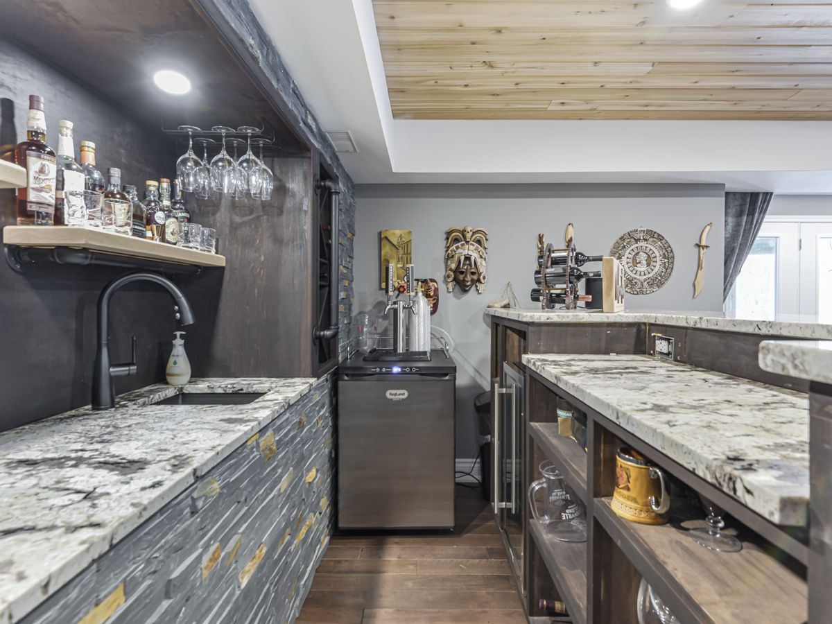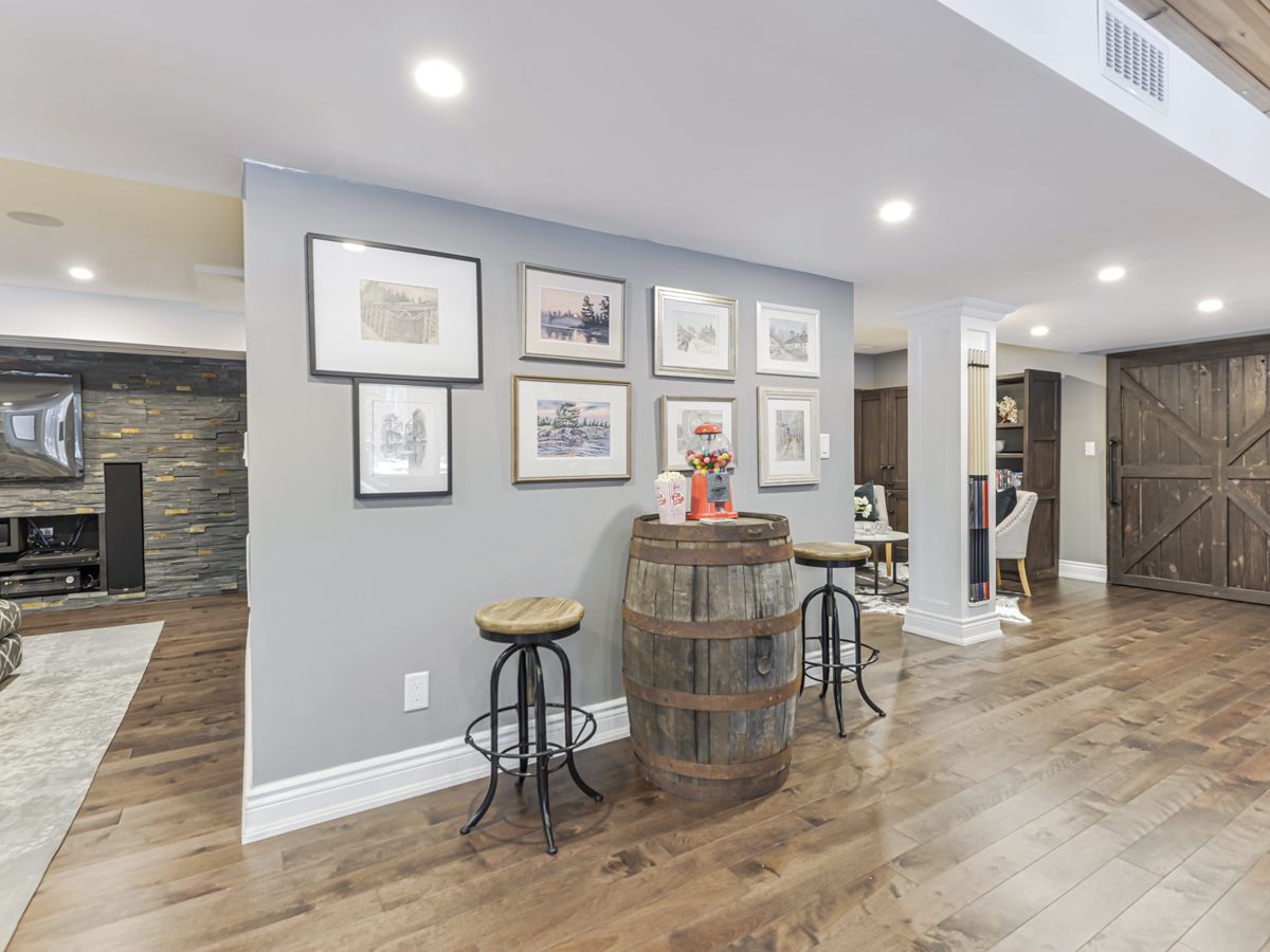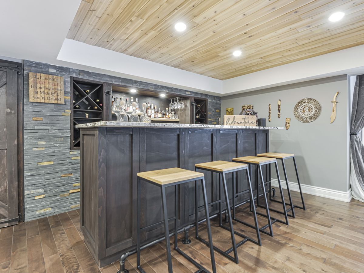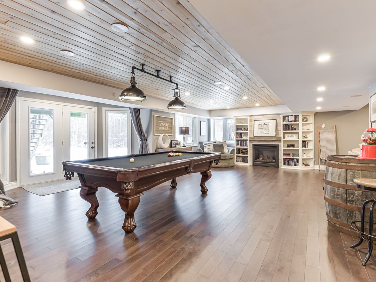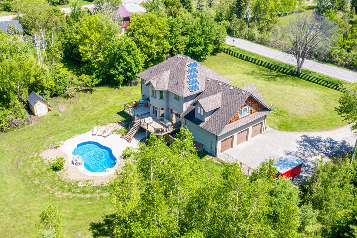 Iron Pickets, Hard Wired Internet, Chef's Dream Kitchen With Custom Cabinetry, Under-Mount Lighting, Built-In Bar Fridge, Quartz Counters And Hu Ge Island. Custom Coffered Ceiling In The Dining Room. Four Spacious Bedrooms With Massive Bonus Room Over Three Car Heated Garage. Beautiful And Bright Walkout Basement With Tongue And Groove Cedar Ceiling, Custom Wet Bar, Built In Shelving, Pre Wired Surround Sound, 106" Built- In Screen. St Ep Out To Your Own Private Backyard With In Ground Salt Water Pool With Waterfall, Built-In Gas Barbeque, Deck, Fire Pit And Tons Of Beautiful Mature Trees. Solar Panels are owned and provides income on average of $225 per month48 inch Bluestar, LG 4 Door Fridge, Bosch B/I Dishwasher, 2 Bar Fridge's,Maytag Washer& Dryer, 106 inch B/I Grandview Screen, 4 B/I Ceiling Speakers W/ Wall Subwoofer, Napoleon BBQ, Central Vac & Equipment ( AS IS), P35 Polaris Pool Cleaner
